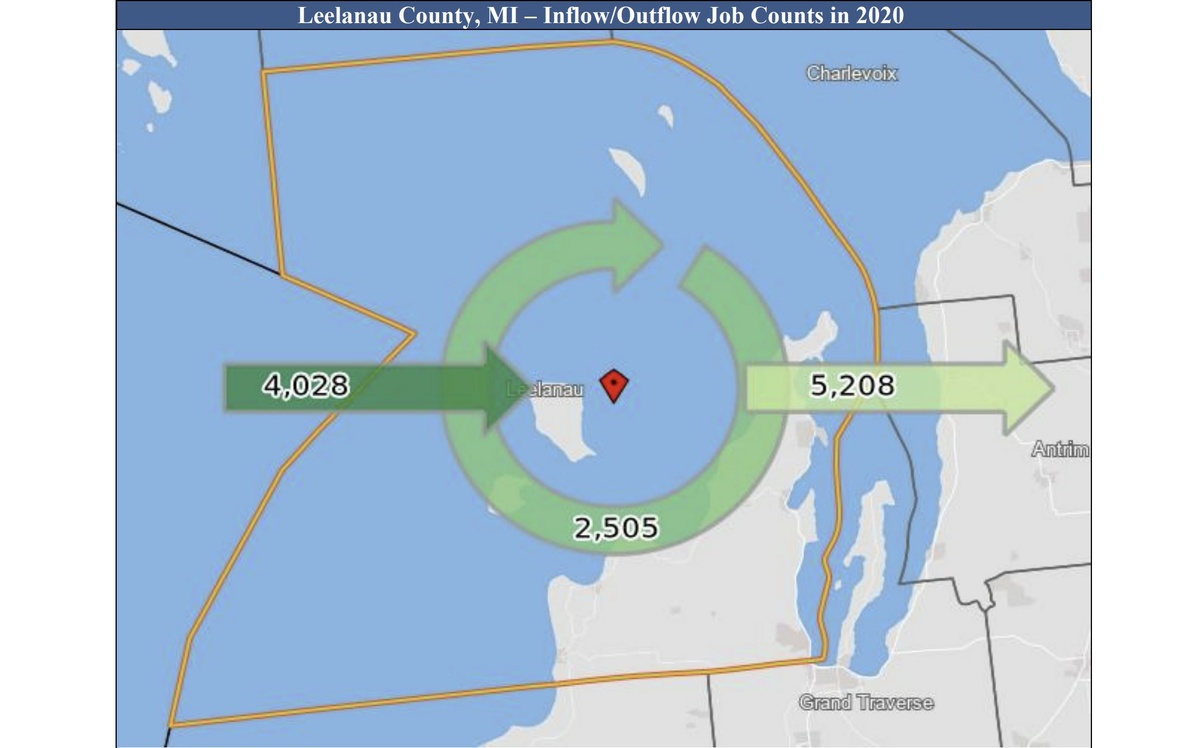 Per Bowen, there are currently 7,713 “employed residents” in Leelanau County. More than two-thirds of those residents (5,208) are employed outside of the county, leaving just 2,505 that both live and work here (graphic pictured). Meanwhile, there are 4,028 people who “commute into Leelanau County from surrounding areas for employment,” holding down 61.7 percent of the jobs that exist in the county. The Bowen report identifies these commuters as “a notable base of potential support for future residential development” for Leelanau, but notes that income levels and housing prices are a barrier for that kind of in-migration. Statistically, the people commuting into the county for work are younger and make less money than the people who live in Leelanau but commute elsewhere for their jobs. “A variety of housing product types could be developed to potentially attract these commuters to live in Leelanau County,” Bowen recommends.