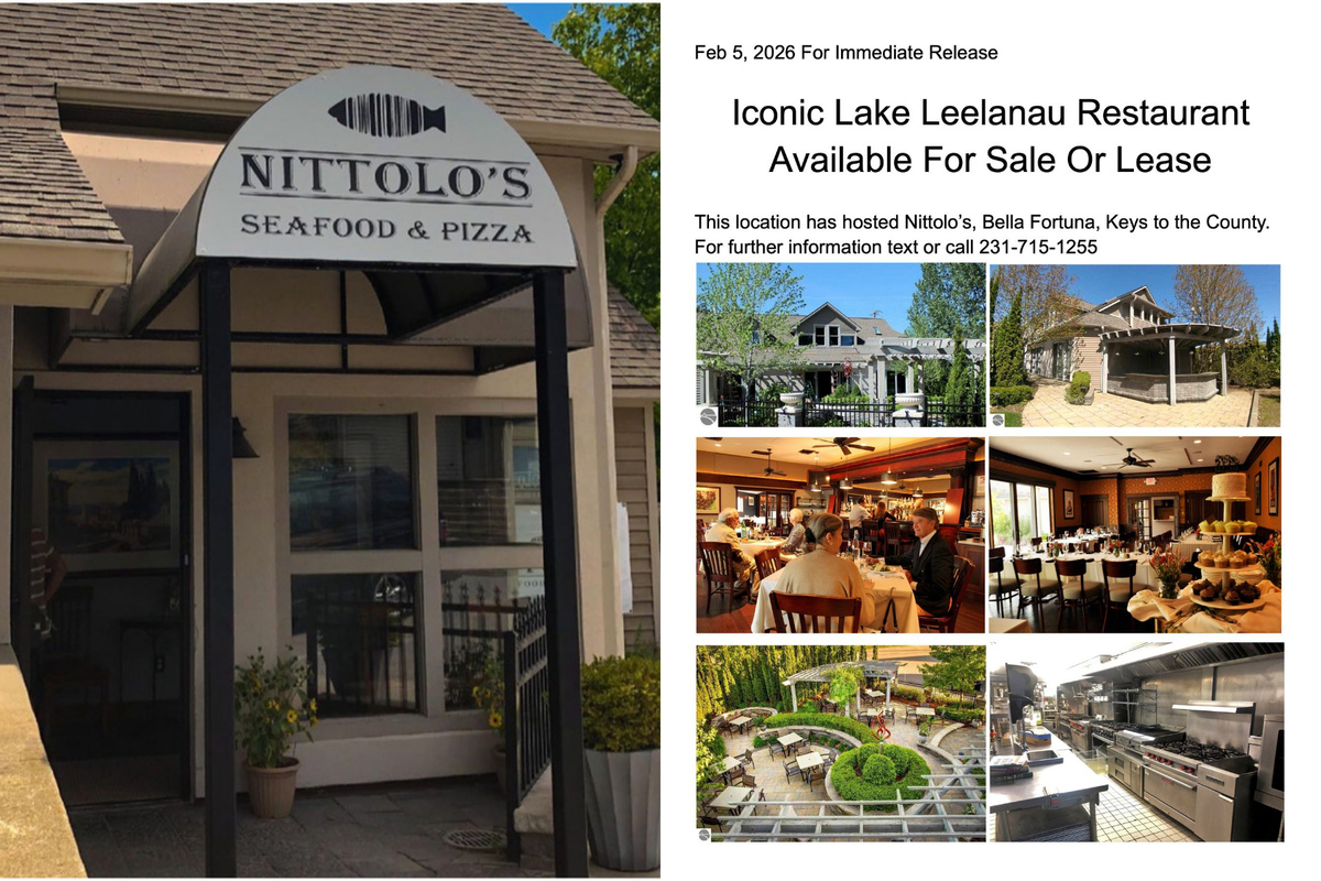 On Thursday, screencaps of a press release (pictured right) began circulating on social media, indicating that the Nittolo’s building was hitting the market. “Iconic Lake Leelanau Restaurant Available For Sale Or Lease,” the press release states, noting that the location – at 104 Main Street in Lake Leelanau – “has hosted Nittolo’s, Bella Fortuna, [and] Keys to the County” in the past.