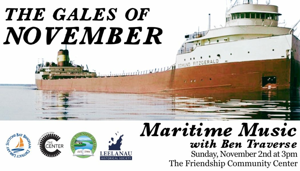 Next month marks the 50th anniversary of the sinking of the Edmund Fitzgerald, the largest shipwreck ever to occur on the Great Lakes. To mark the milestone of that famous tragedy, the Friendship Community Center in Suttons Bay is teaming up with the Suttons Bay Bingham District Library, the Leelanau Historical Society, and the Leland Township Public Library for a music-themed event scheduled for this Sunday, November 2.