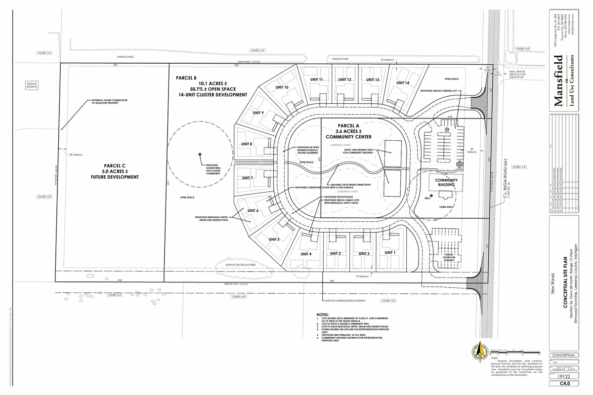 The roots for the New Waves Community development go back two decades, to when the Michigan Conference of the United Church of Christ (UCC) purchased 20 acres in Leelanau County with plans of starting a new church. Per the New Waves Housing website, as the local UCC congregation got started and grew, “there was hardly a week when the need for affordable housing was not mentioned by local media in the Grand Traverse Region.” In 2017, New Waves “began to investigate” what it would need to do to help address the problem. UCC ultimately donated 11 acres to the cause, and the New Waves Community project was born.
