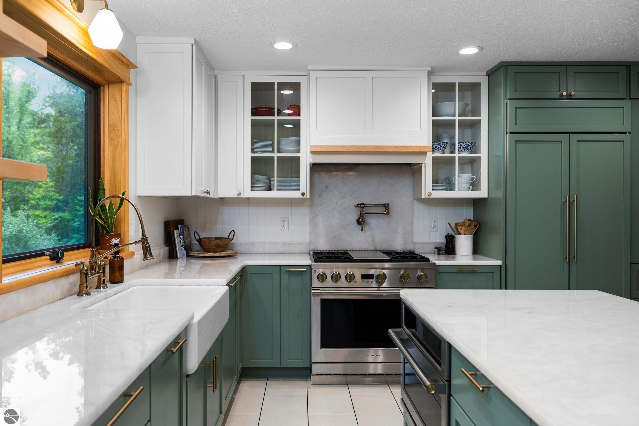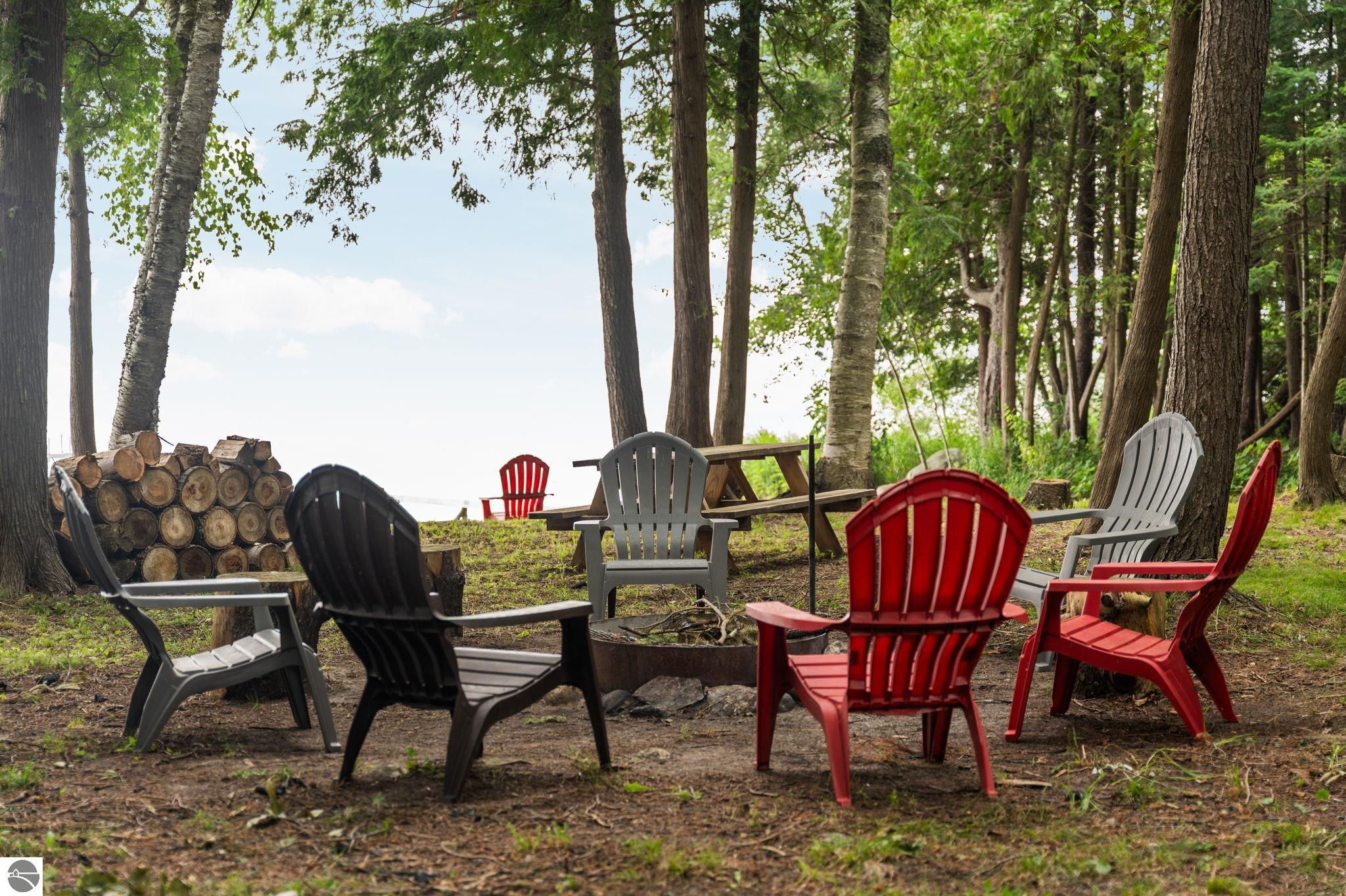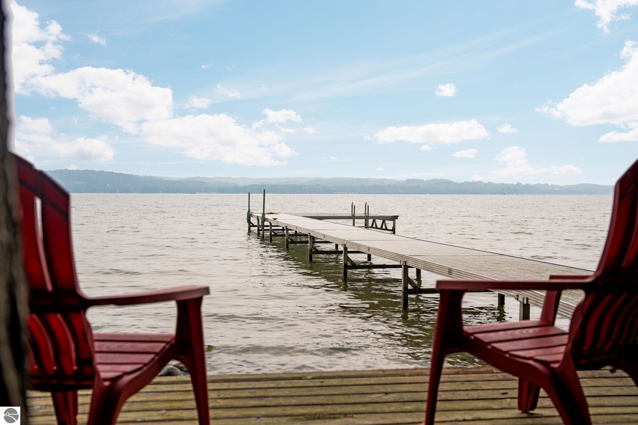 Experience the best of Leelanau living with this extraordinary 107-acre property featuring 500 feet of private frontage on the crystal-clear waters of Lake Leelanau. Rolling hills, ridge-line lake views, open meadows, hardwoods, evergreens, and farmland make this a truly one-of-a-kind offering - just a 15-minute drive from downtown Traverse City. The 4-bed, 2.5-bath main residence beautifully blends classic up north charm with modern updates, featuring vaulted wood ceilings, inlaid wood floors, and a stone fireplace. Both the home and property were thoughtfully renovated in 2022, offering a fresh, move-in-ready experience. A Generac generator provides added peace of mind for year-round living. Evenings here are especially magical, with stunning sunsets that paint the sky over the lake - easily enjoyed from multiple vantage points on the property. For additional living space, a separate 1-bed, 1-bath chalet offers updated interiors and a four-car garage underneath - ideal for guests, a private retreat, or potential rental use. Additional structures include a 30x50 pole building for storage and two waterfront cabins, perfect as bunkhouses or lakeside gear storage. With 3,700 feet of frontage along East Birch Point Road, a private dock, and a firepit for lakeside gatherings, this property offers a rare combination of beauty, space, and versatility in the heart of Leelanau County.