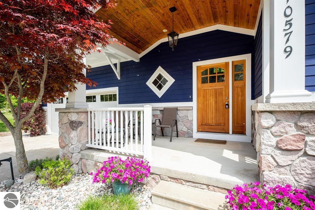 - Exterior: Bay View, Sprinkler System, Patio, Sidewalk, Covered Porch, Seasonal View, Landscaped