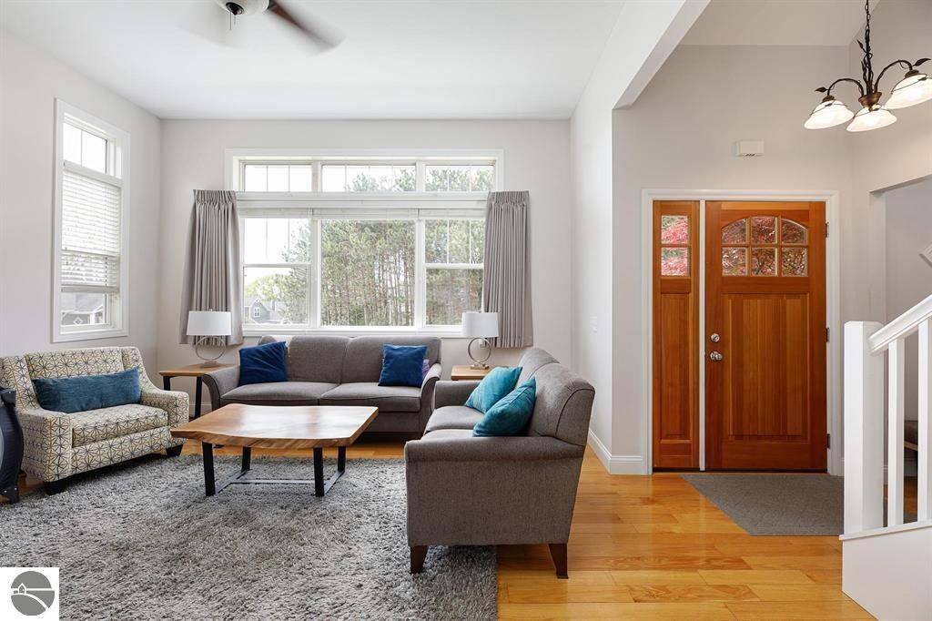Step into luxury living in the heart of Traverse City, nestled within the prestigious Morgan Farms community. This updated and well-appointed residence offers seasonal views of West Grand Traverse Bay, blending Northern Michigan charm with modern sophistication. Spanning generously across a spacious layout, this three bedroom, three-and-a half bath home features a stunning master suite with ensuite. Entertain in style in the beautifully finished lower level, perfectly designed for game nights or family visitors. Surrounded by beautiful nature, well maintained walking trails and yet just moments from downtown, the TART trail, wineries, and the sparkling shores of West Bay. Home is located in the sub community of Morgan Farms called The Cottages and has no thru traffic whatsoever. This home offers a sense of tranquility and convenience. HOA is responsible for snow removal including driveway and walkway to front door, grass maintenance, weeding and shrub trimming. Your dream home is waiting, outside of town, bucolic, but just moments away from the Travere downtown vibrancy. Come experience Traverse City at it's finest.