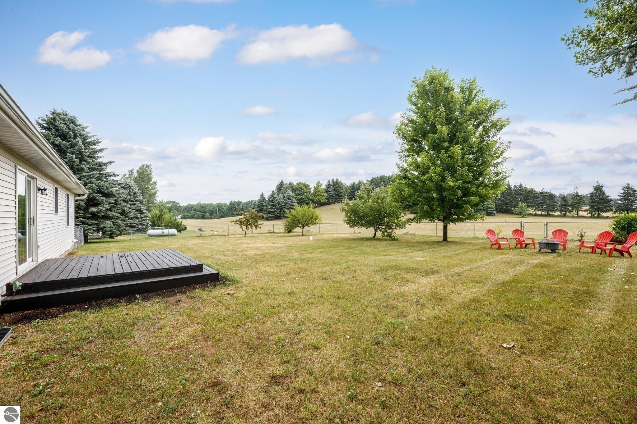 - Exterior: Deck, Sidewalk, Fenced Yard, Countryside View, Porch