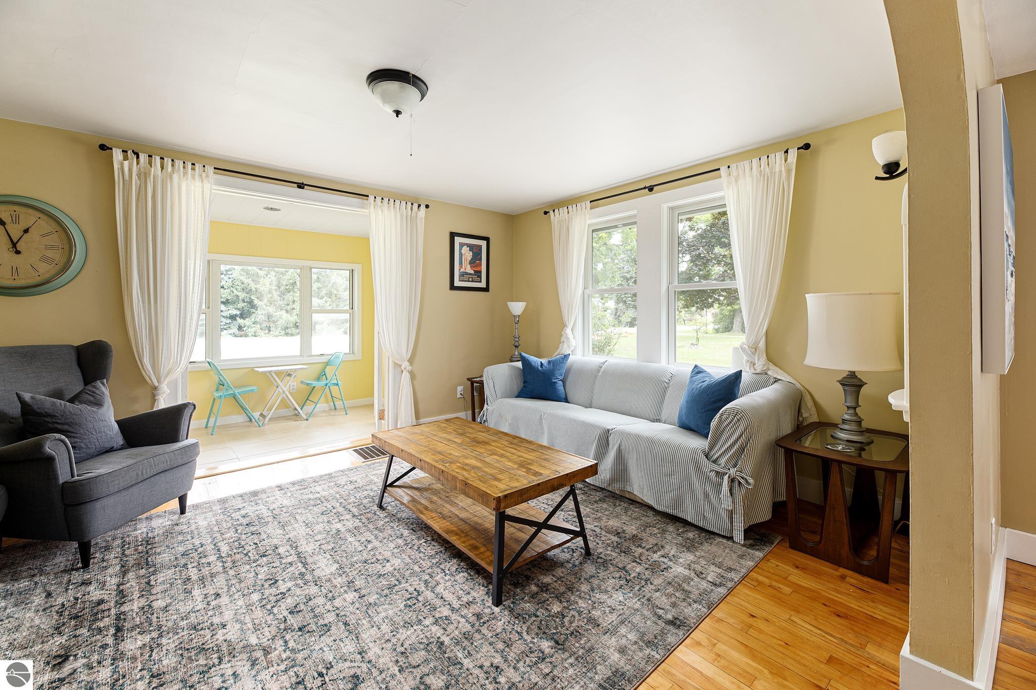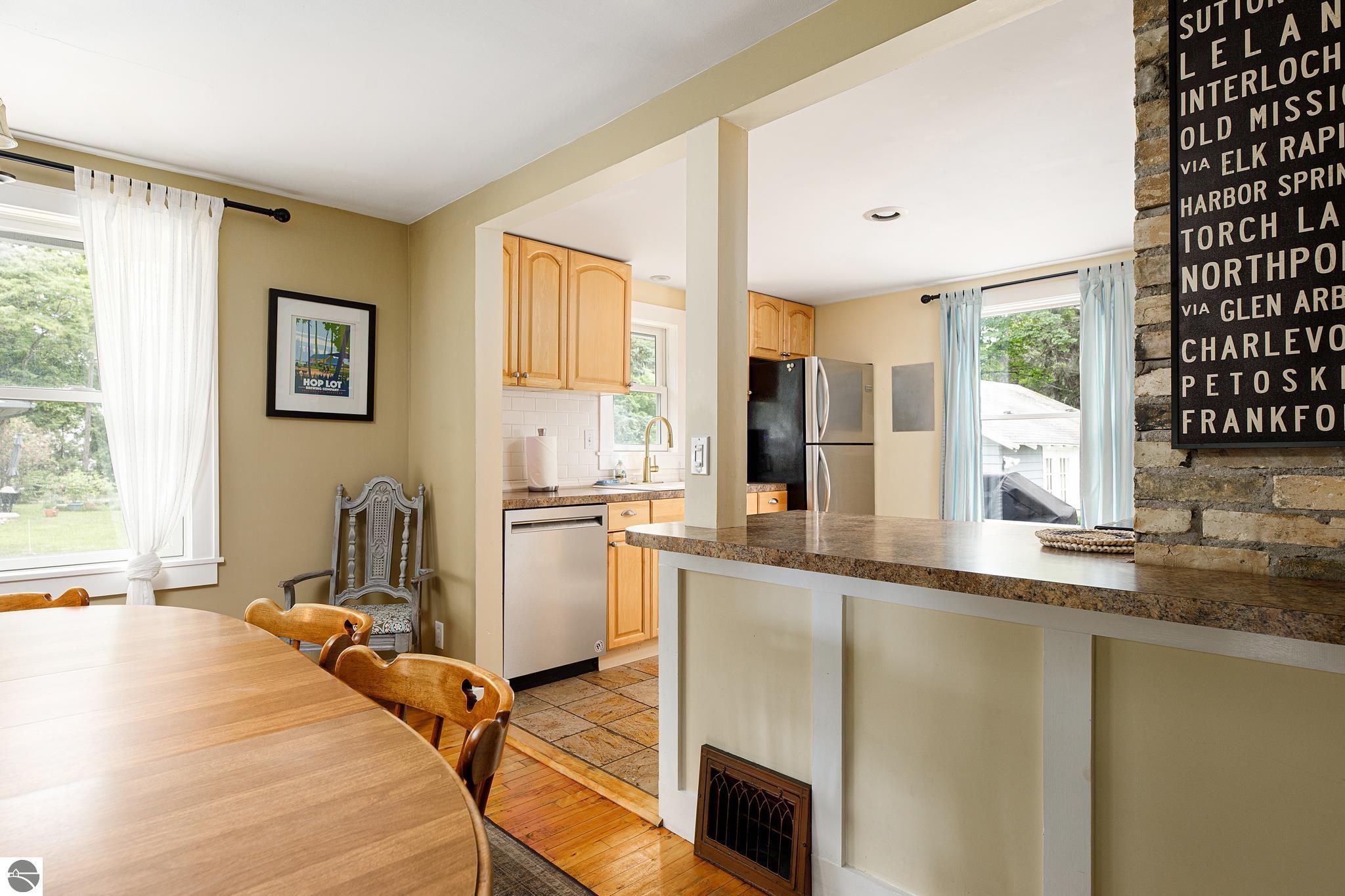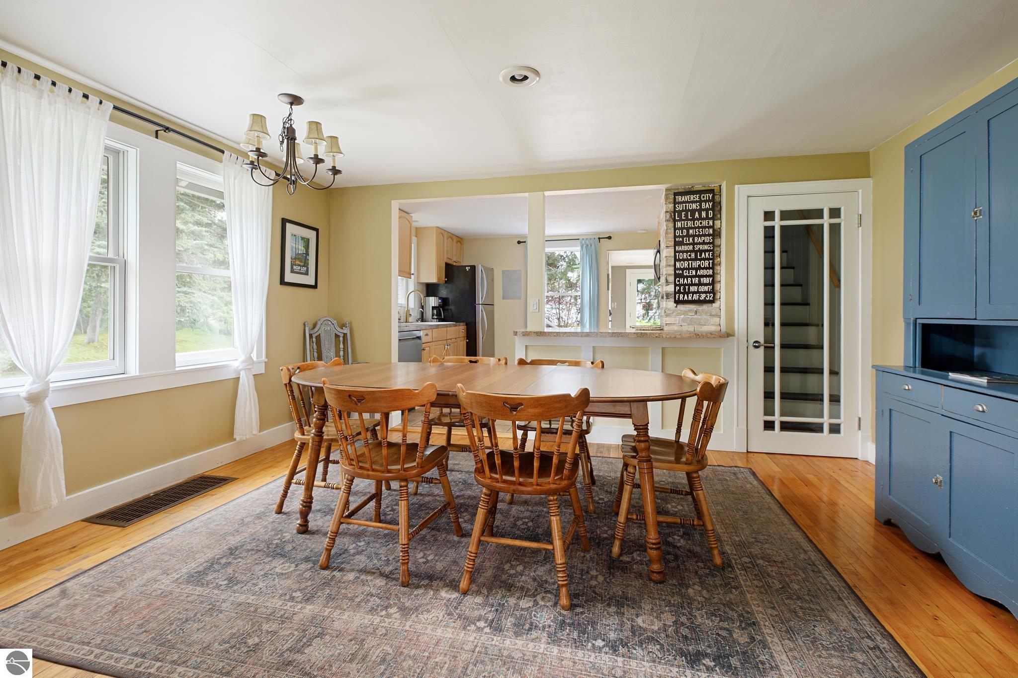 Are you hooked on the good life? Do you want a place where location matters? Do you get that feeling there is a special place for you? Well, this bungalow is a golden unicorn. From the moment you walk in, you get the feeling adventure awaits in the best way! Maybe you love to hop on your bike and hit the TART trail into downtown TC, or a longer adventure into Leelanau County? Or maybe you fancy a SUP, paddle right across the street on Cedar Lake to start your day? Or perhaps you’re a sea bird, up before the sun to harvest the catch of the day on West Bay? When you are ready to relax, come home to this great place, where the original 1940’s architectural details are featured and blended with modern upgrades. Be charmed by the easy, functional layout, original hardwood floors, travertine tile, main floor bedrooms, built in storage, fully finished lower level featuring a newer 2nd bath with a spacious walk-in shower, and the GLORIOUS laundry room, three season sun porches, the park like setting, multiple bonus spaces including the garage, the party deck and more! Come see! Better yet, come FEEL! This place is about being with your people, being a stone’s throw from all of the fun, enjoying your time, and relaxing indoors or out!
