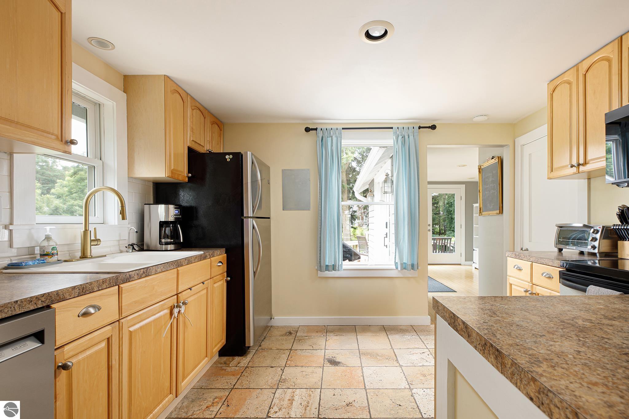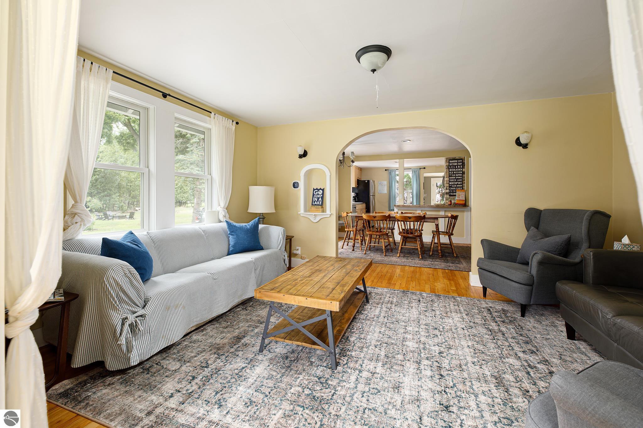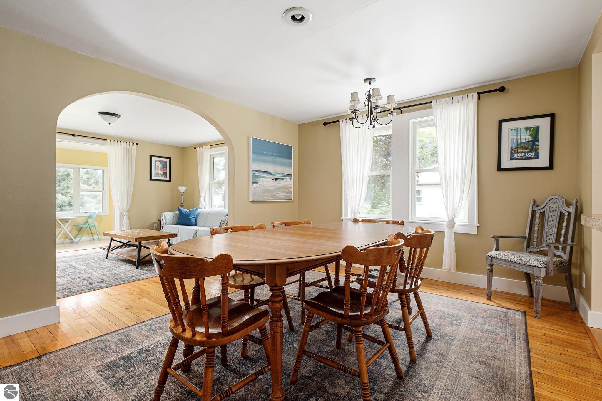 Are you hooked on the good life? Do you want a place where location matters? Do you get that feeling there is a special place for you? Well, this bungalow is a golden unicorn. From the moment you walk in, you get the feeling adventure awaits in the best way! Maybe you love to hop on your bike and hit the TART trail into downtown TC, or a longer adventure into Leelanau County? Or maybe you fancy a SUP, paddle right across the street on Cedar Lake to start your day? Or perhaps you’re a sea bird, up before the sun to harvest the catch of the day on West Bay? When you are ready to relax, come home to this great place, where the original 1940’s architectural details are featured and blended with modern upgrades. Be charmed by the easy, functional layout, original hardwood floors, travertine tile, main floor bedrooms, built in storage, fully finished lower level featuring a newer 2nd bath with a spacious walk-in shower, and the GLORIOUS laundry room, three season sun porches, the park like setting, multiple bonus spaces including the garage, the party deck and more! Come see! Better yet, come FEEL! This place is about being with your people, being a stone’s throw from all of the fun, enjoying your time, and relaxing indoors or out!
