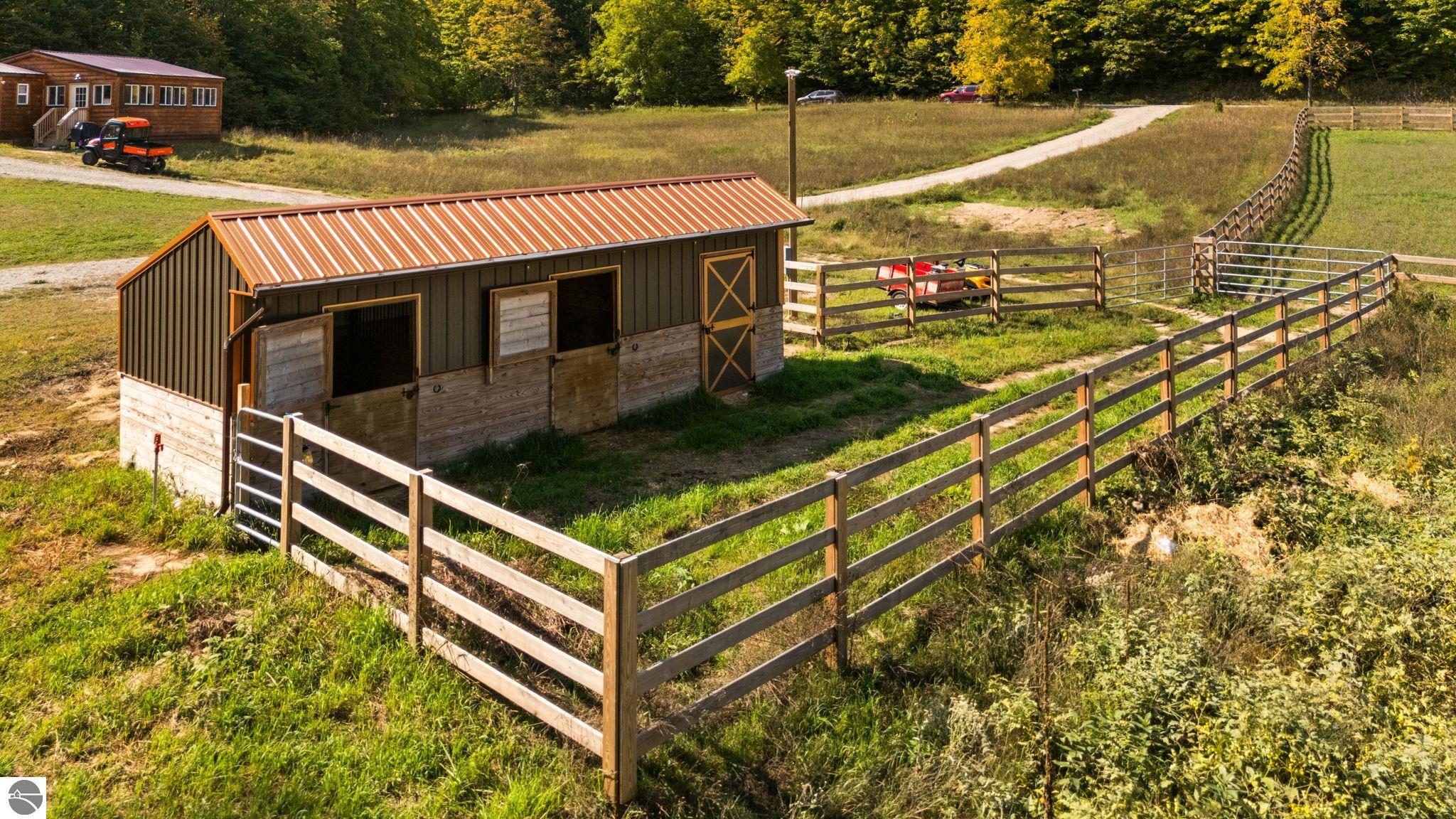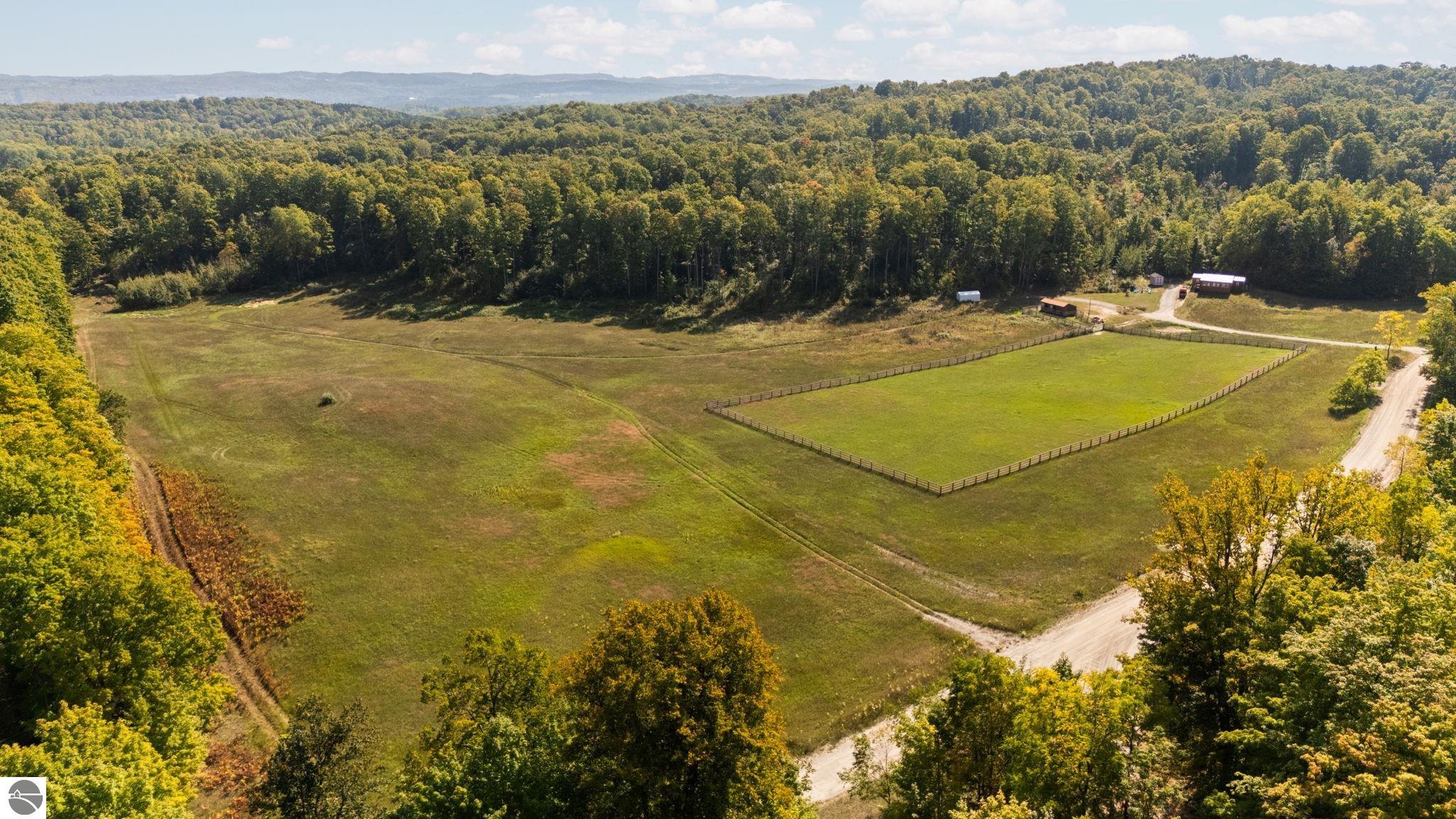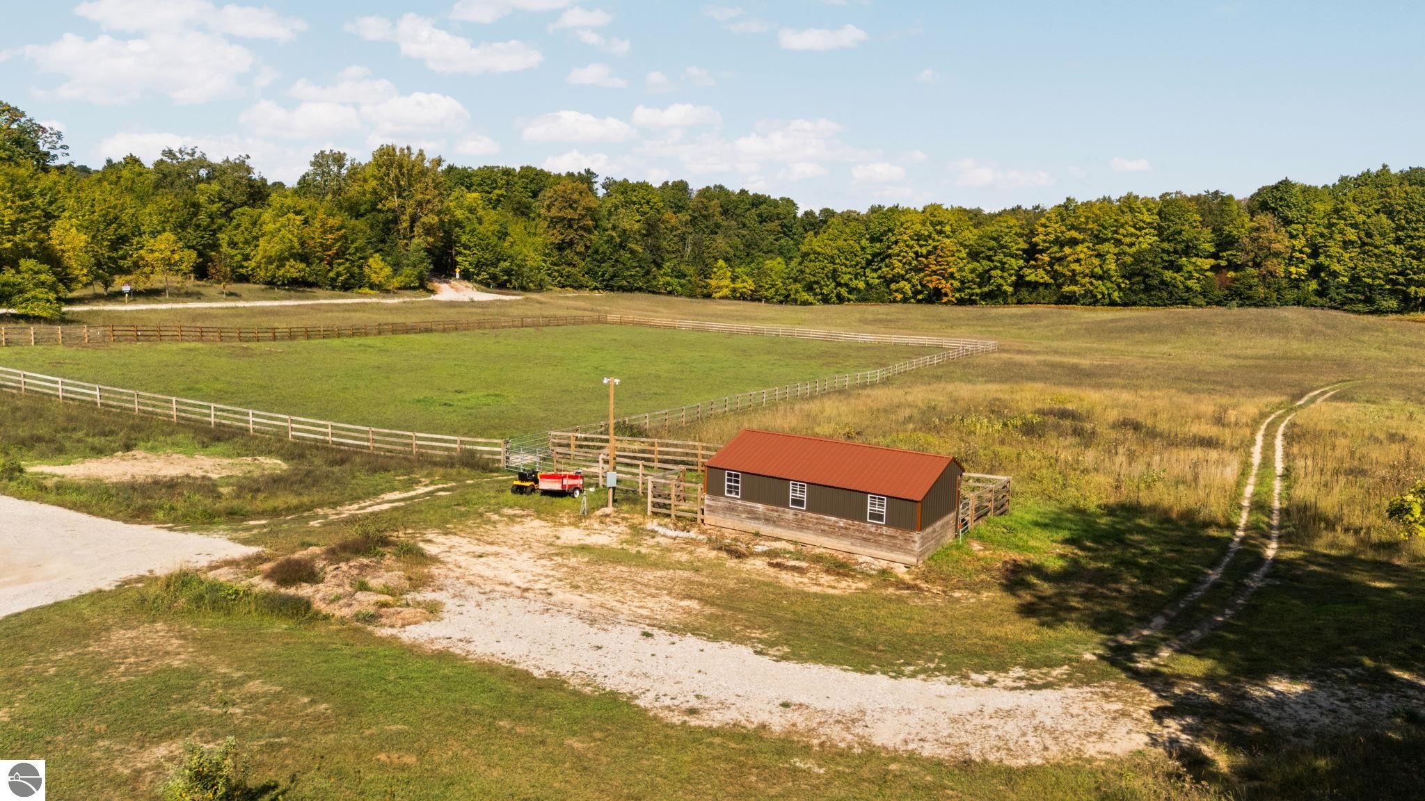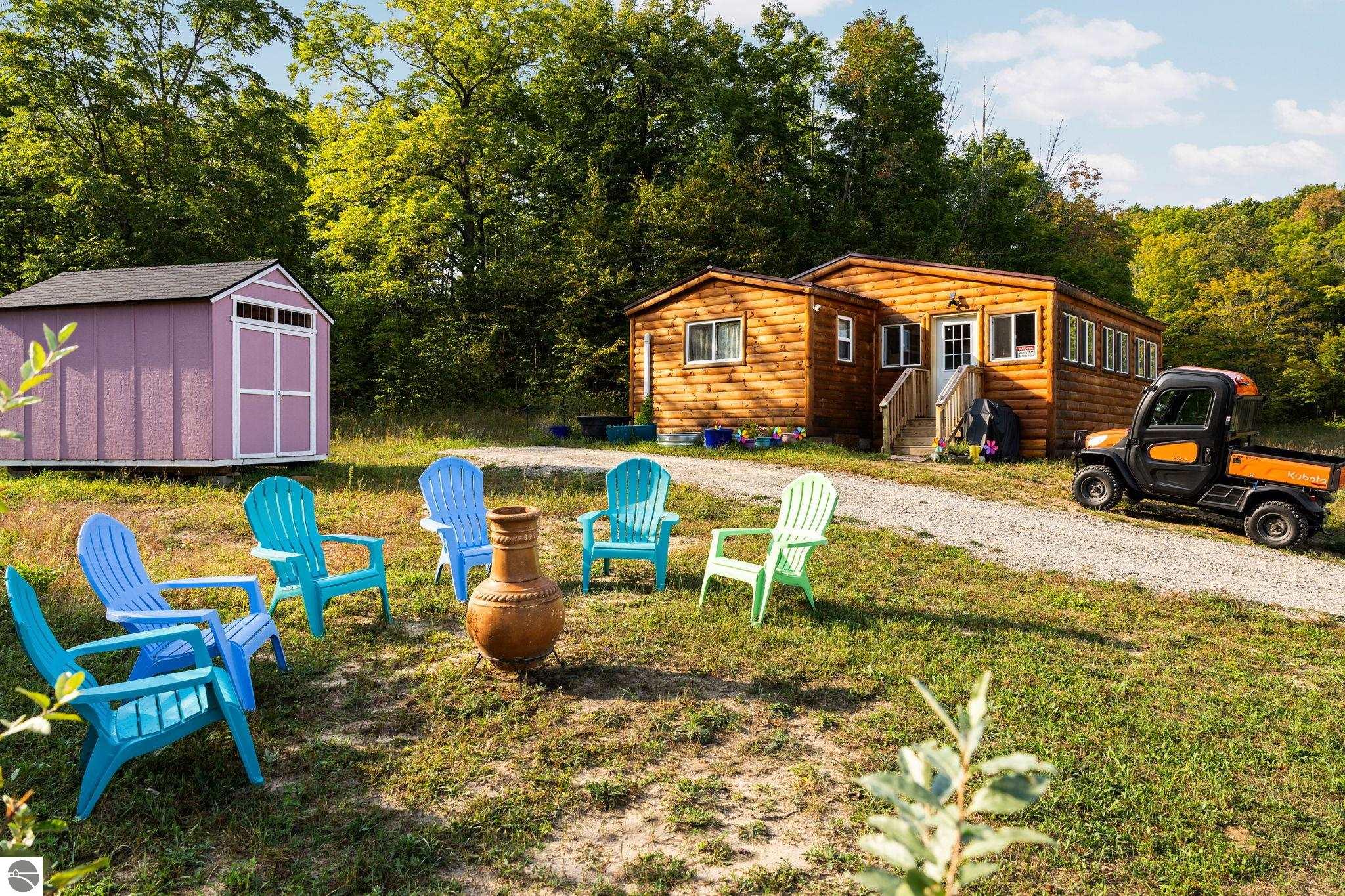 Nestled in the heart of Leelanau County, this 30+ acre property offers a picturesque blend of open fields and rolling hills. At its center sits a turnkey split-log home, featuring two bedrooms, one bath with tiled shower, and inviting wood finishes throughout. The spacious kitchen and bright living room create a warm and welcoming retreat filled with natural light. Outdoors, the land is perfectly suited for equestrian or hobby farm pursuits. A well-kept horse stable with water, electric and an adjoining pasture provides ready space for animals, while the surrounding acreage invites endless opportunities to explore and enjoy. One approved land split will pass to the new owners. Privately set yet just minutes from downtown Traverse City, this property offers the best of both worlds: peaceful seclusion with easy access to town. Whether you envision a full-time residence, weekend escape, investment, or working homestead, this is a rare chance to embrace the Northern Michigan lifestyle.