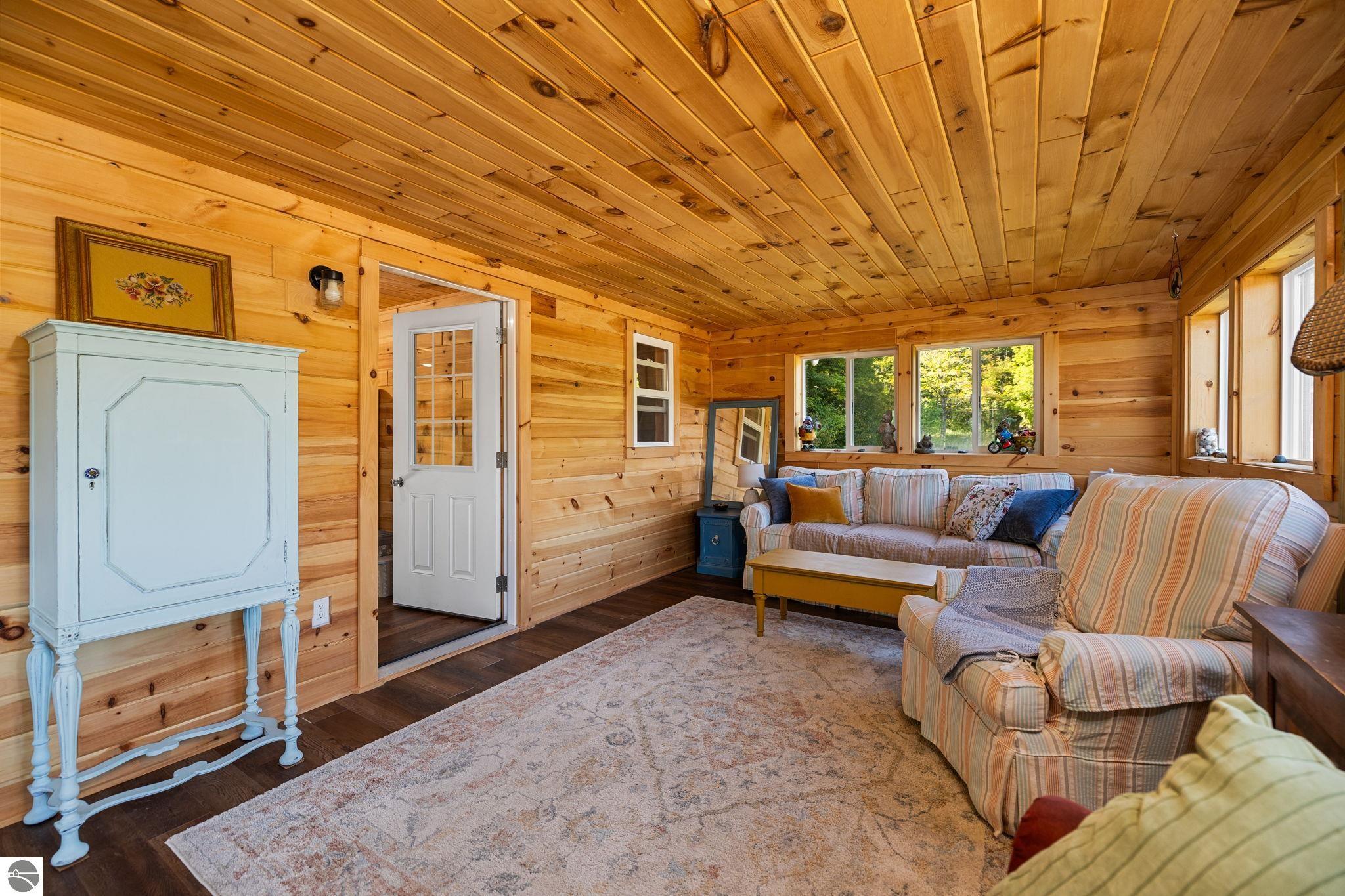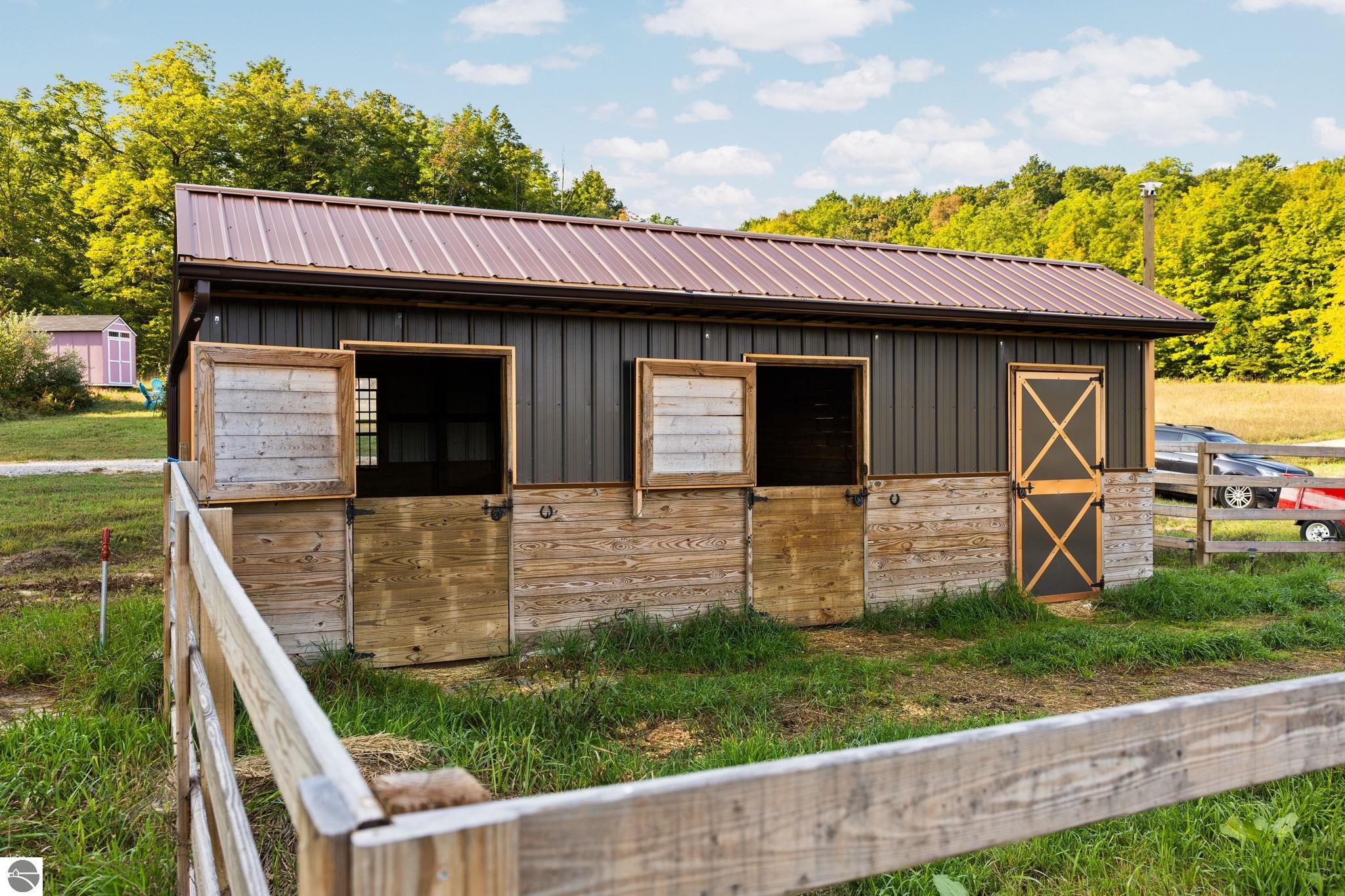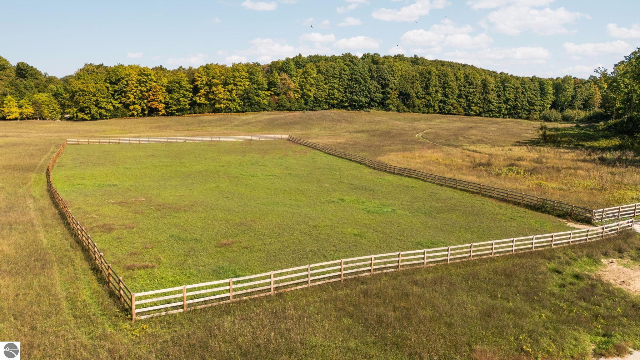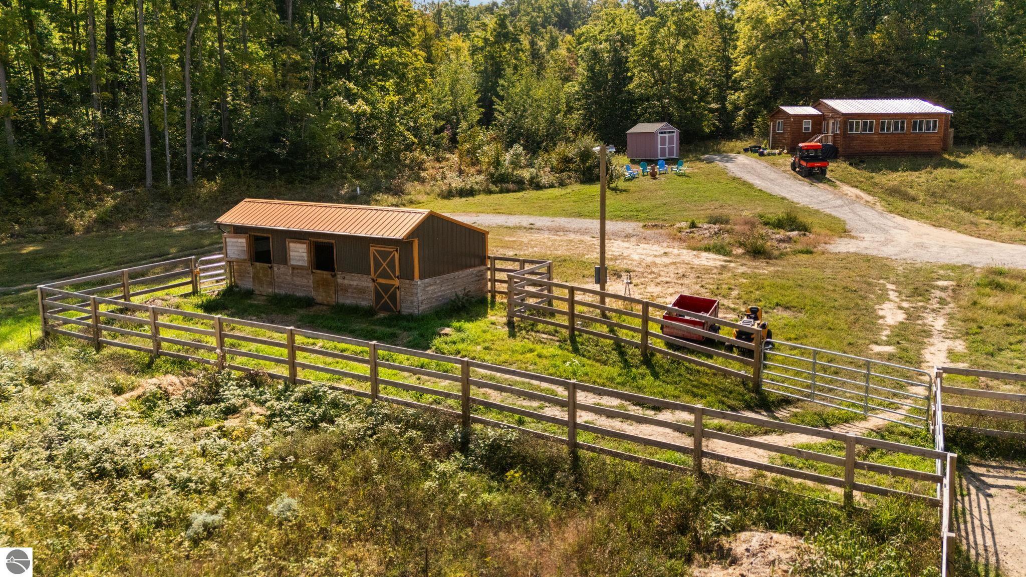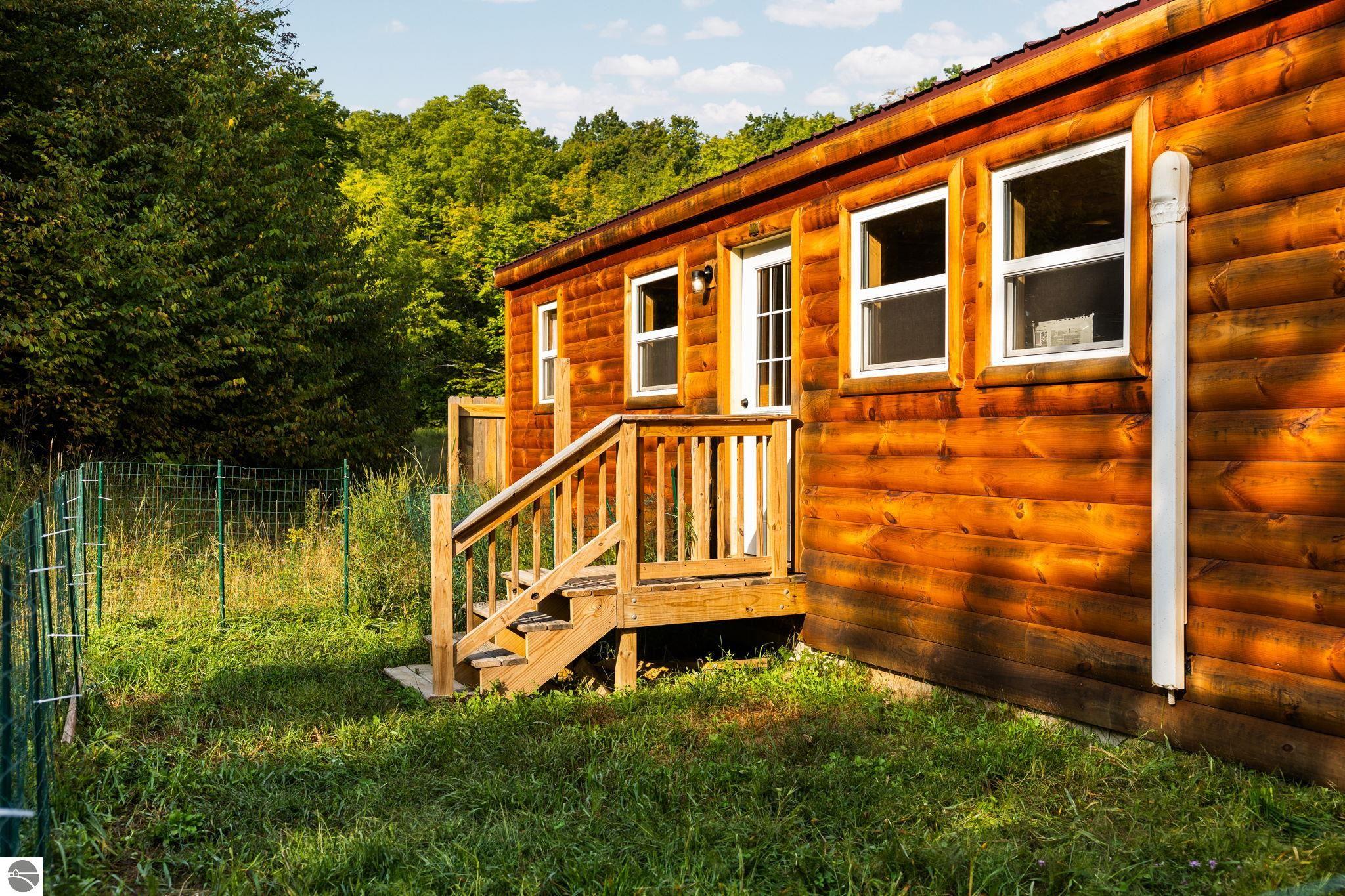 Nestled in the heart of Leelanau County, this 30+ acre property offers a picturesque blend of open fields and rolling hills. At its center sits a turnkey split-log home, featuring two bedrooms, one bath with tiled shower, and inviting wood finishes throughout. The spacious kitchen and bright living room create a warm and welcoming retreat filled with natural light. Outdoors, the land is perfectly suited for equestrian or hobby farm pursuits. A well-kept horse stable with water, electric and an adjoining pasture provides ready space for animals, while the surrounding acreage invites endless opportunities to explore and enjoy. One approved land split will pass to the new owners. Privately set yet just minutes from downtown Traverse City, this property offers the best of both worlds: peaceful seclusion with easy access to town. Whether you envision a full-time residence, weekend escape, investment, or working homestead, this is a rare chance to embrace the Northern Michigan lifestyle.