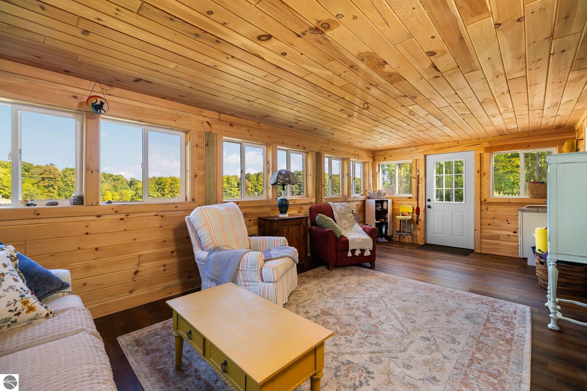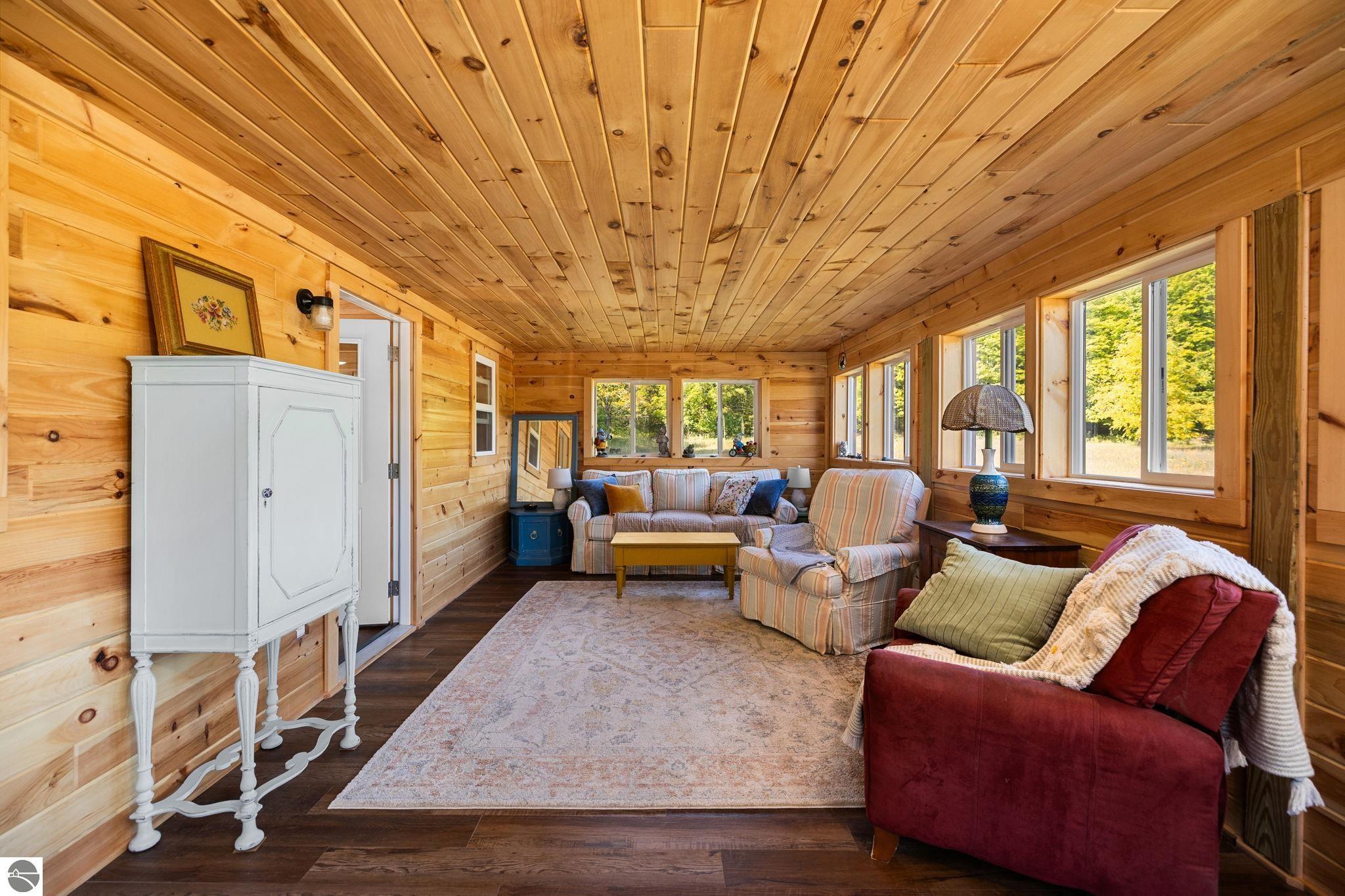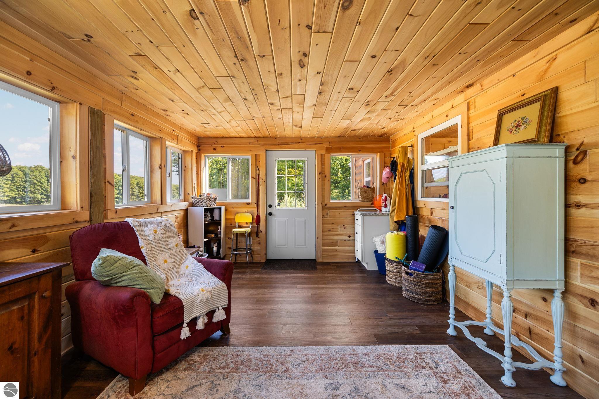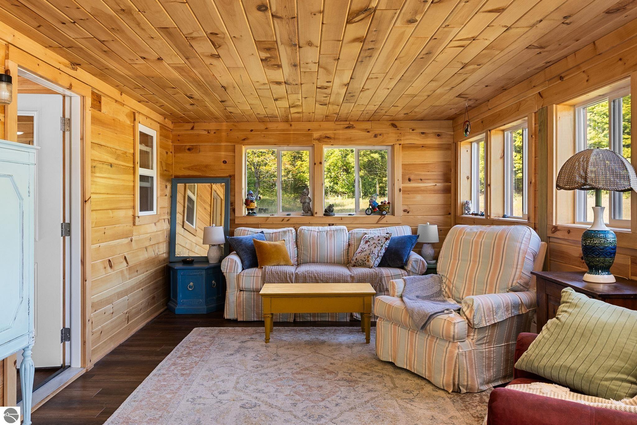 Nestled in the heart of Leelanau County, this 30+ acre property offers a picturesque blend of open fields and rolling hills. At its center sits a turnkey split-log home, featuring two bedrooms, one bath with tiled shower, and inviting wood finishes throughout. The spacious kitchen and bright living room create a warm and welcoming retreat filled with natural light. Outdoors, the land is perfectly suited for equestrian or hobby farm pursuits. A well-kept horse stable with water, electric and an adjoining pasture provides ready space for animals, while the surrounding acreage invites endless opportunities to explore and enjoy. One approved land split will pass to the new owners. Privately set yet just minutes from downtown Traverse City, this property offers the best of both worlds: peaceful seclusion with easy access to town. Whether you envision a full-time residence, weekend escape, investment, or working homestead, this is a rare chance to embrace the Northern Michigan lifestyle.