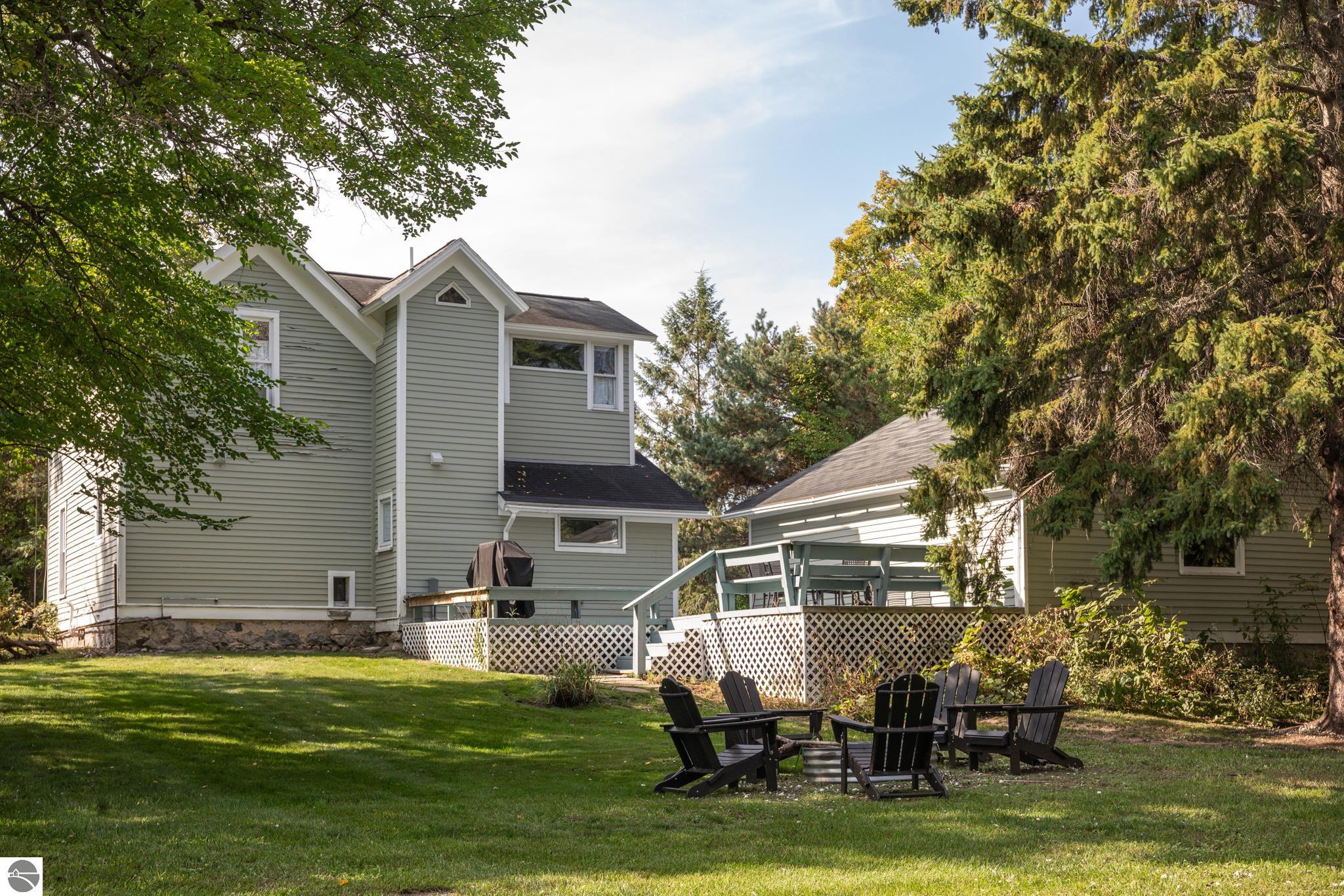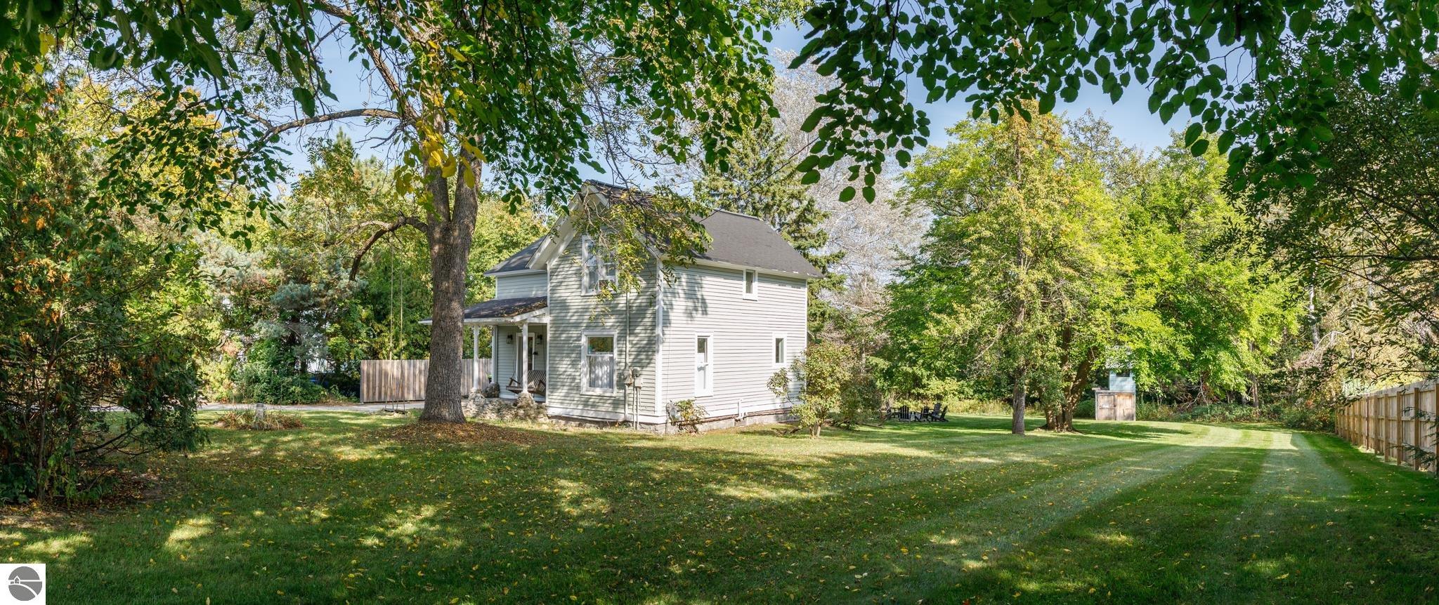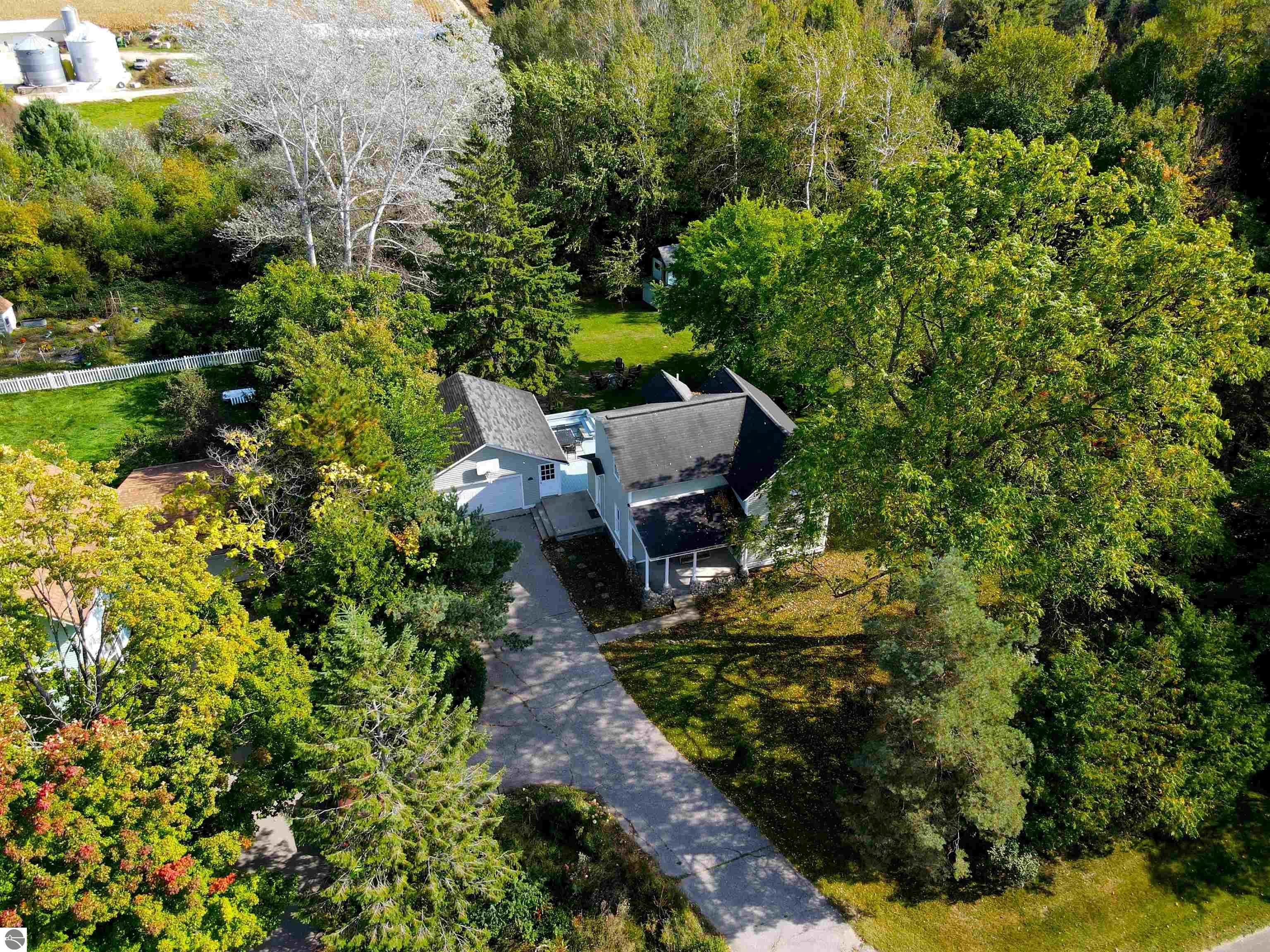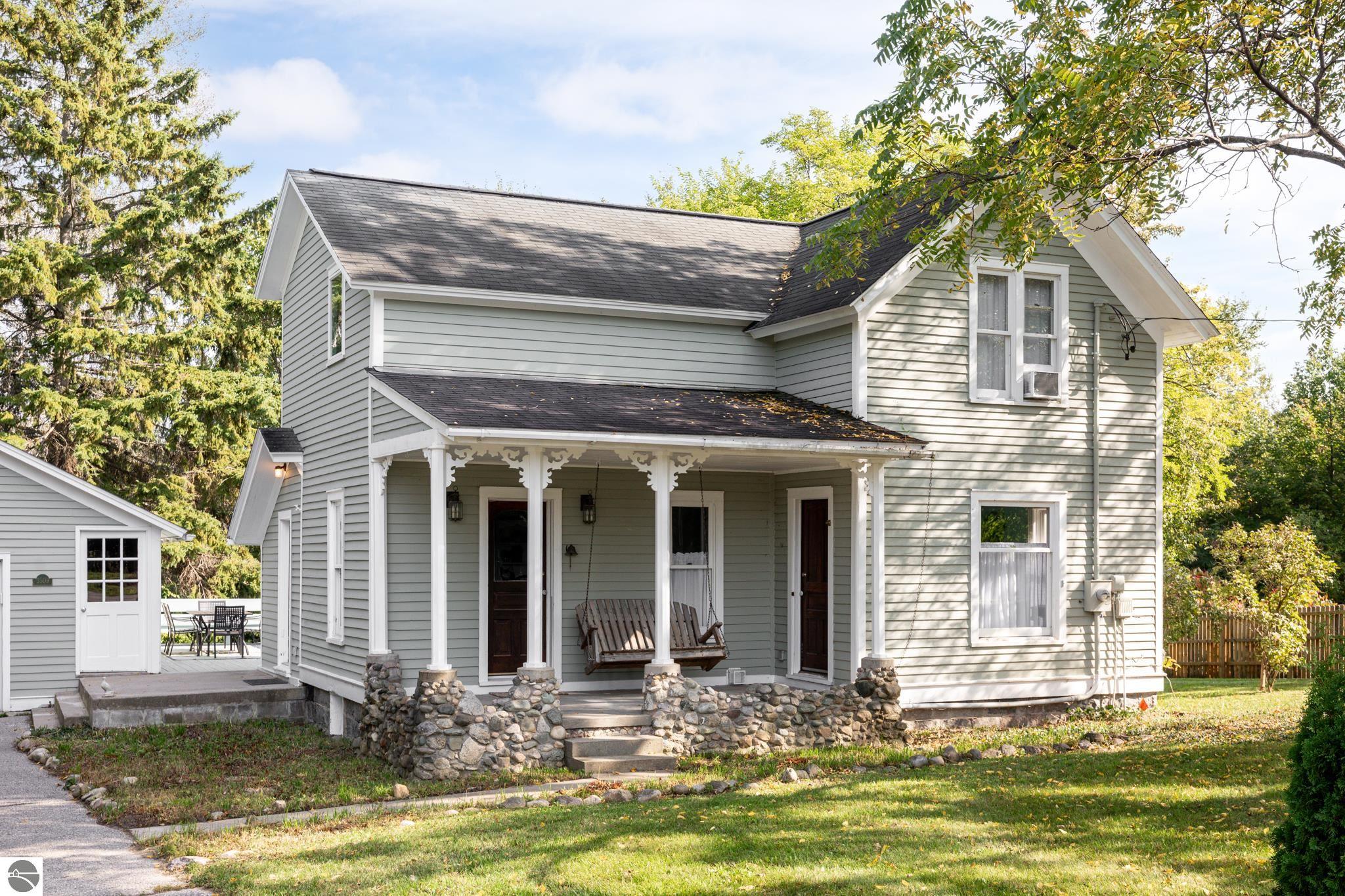 Idyllic farmhouse in Suttons Bay with direct access to the TART trail! This inviting 2-bed, 2-bath farmhouse sits on a full acre of open, park-like grounds with direct access to the Leelanau Trail via a private wooden deck path. Inside, you'll find roughly 1,300 sq ft of character and comfort—beautiful hardwood floors, a bright kitchen with modern updates, and cozy living spaces filled with natural light. Outside, enjoy a two-car detached garage, fire-pit area, and mature shade trees offering privacy and space to relax. Perfectly located just 5 minutes from downtown Suttons Bay and only a half-mile from Bahle Farms Golf Course, this property combines countryside charm with convenience to Leelanau’s best recreation, wineries, and waterfront. A rare opportunity to own a piece of Leelanau with trail access right out your back door. Listing data, supplemental documents have all been obtained from third-party sources and/or the seller. Information is deemed reliable but cannot be guaranteed for its accuracy. Buyer and/or its agent should verify before closing.