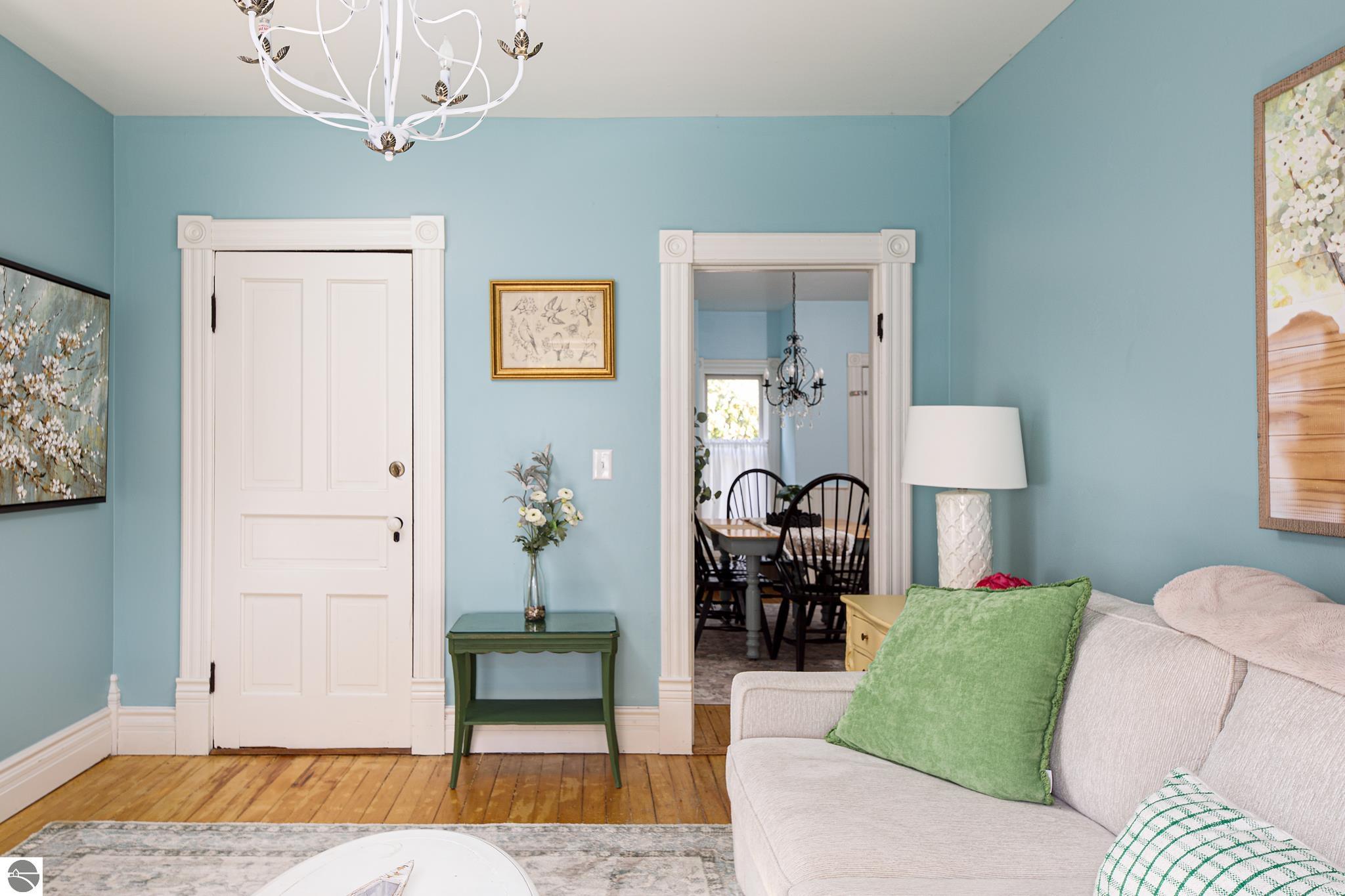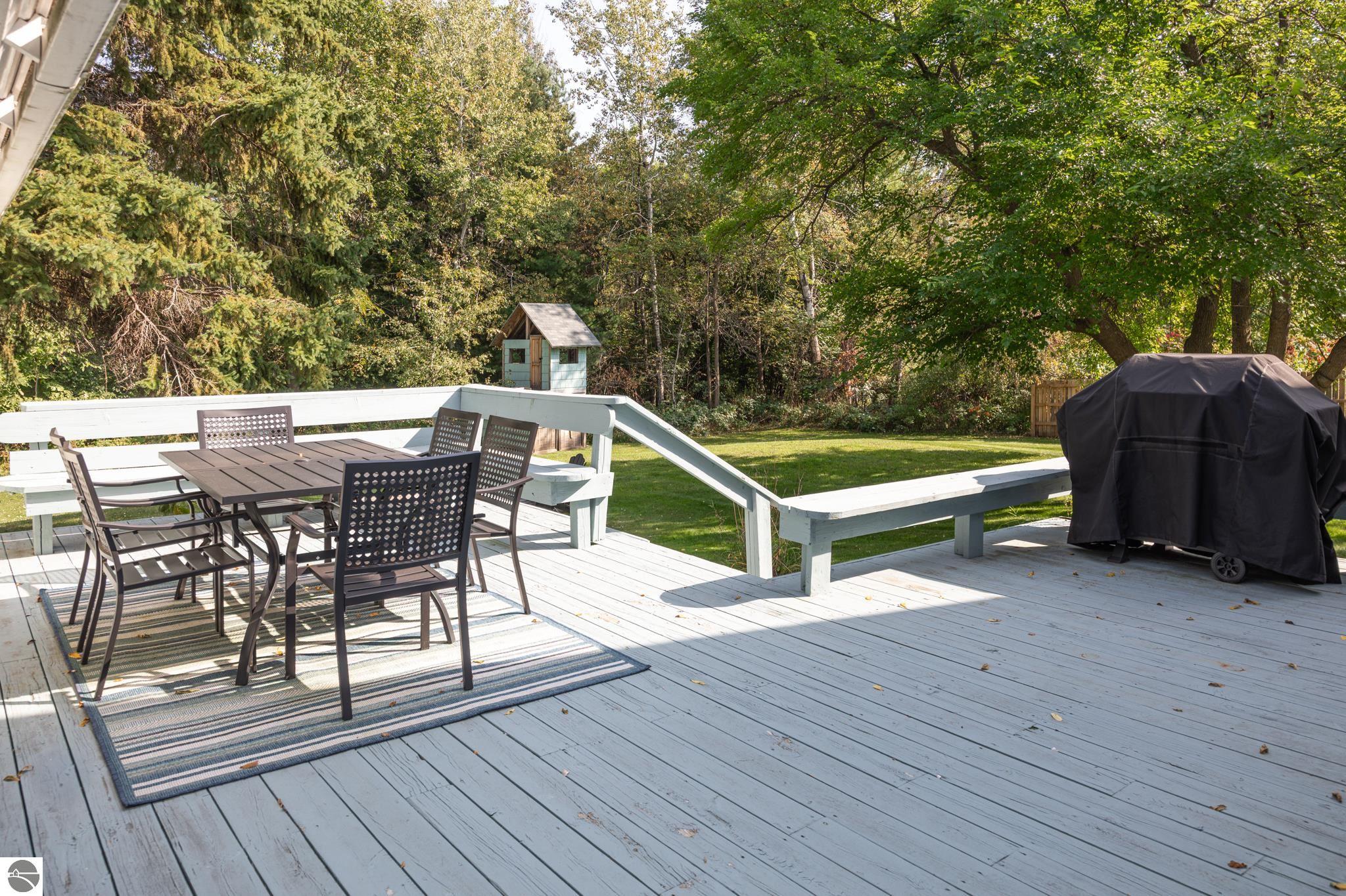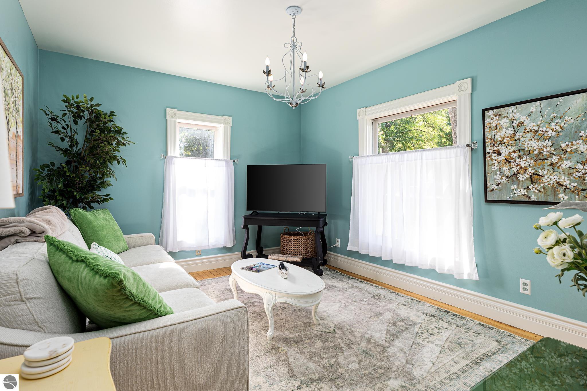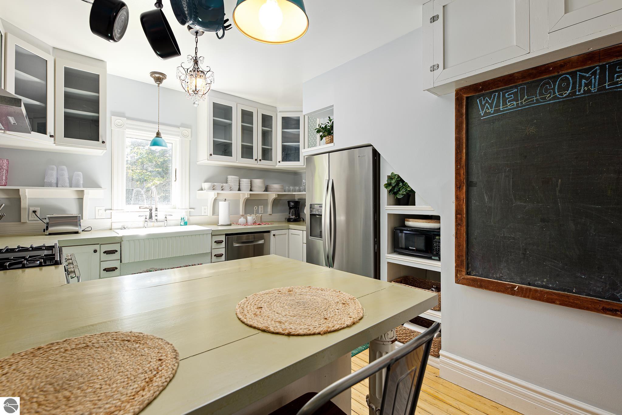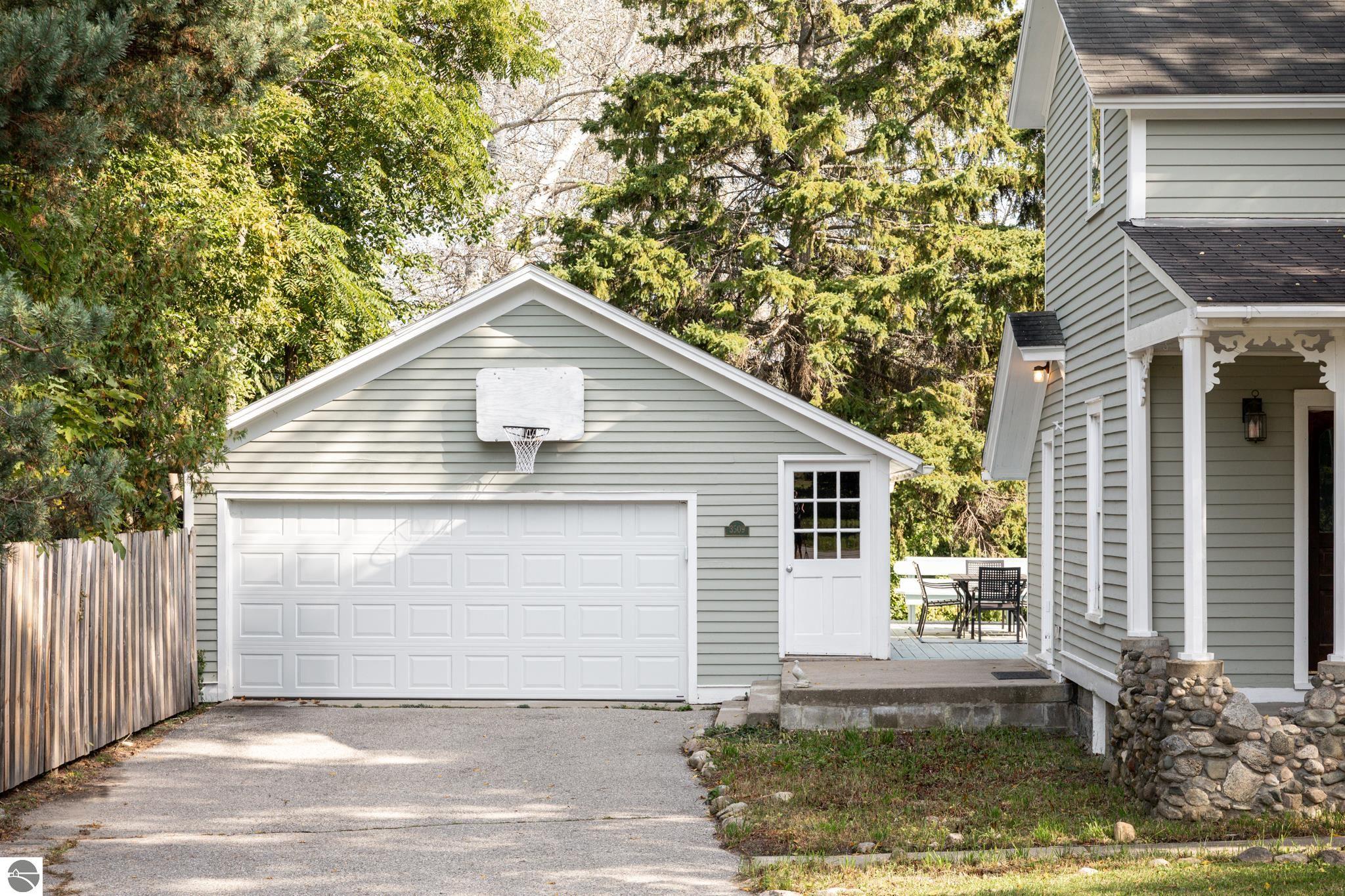 Idyllic farmhouse in Suttons Bay with direct access to the TART trail! This inviting 2-bed, 2-bath farmhouse sits on a full acre of open, park-like grounds with direct access to the Leelanau Trail via a private wooden deck path. Inside, you'll find roughly 1,300 sq ft of character and comfort—beautiful hardwood floors, a bright kitchen with modern updates, and cozy living spaces filled with natural light. Outside, enjoy a two-car detached garage, fire-pit area, and mature shade trees offering privacy and space to relax. Perfectly located just 5 minutes from downtown Suttons Bay and only a half-mile from Bahle Farms Golf Course, this property combines countryside charm with convenience to Leelanau’s best recreation, wineries, and waterfront. A rare opportunity to own a piece of Leelanau with trail access right out your back door. Listing data, supplemental documents have all been obtained from third-party sources and/or the seller. Information is deemed reliable but cannot be guaranteed for its accuracy. Buyer and/or its agent should verify before closing.
