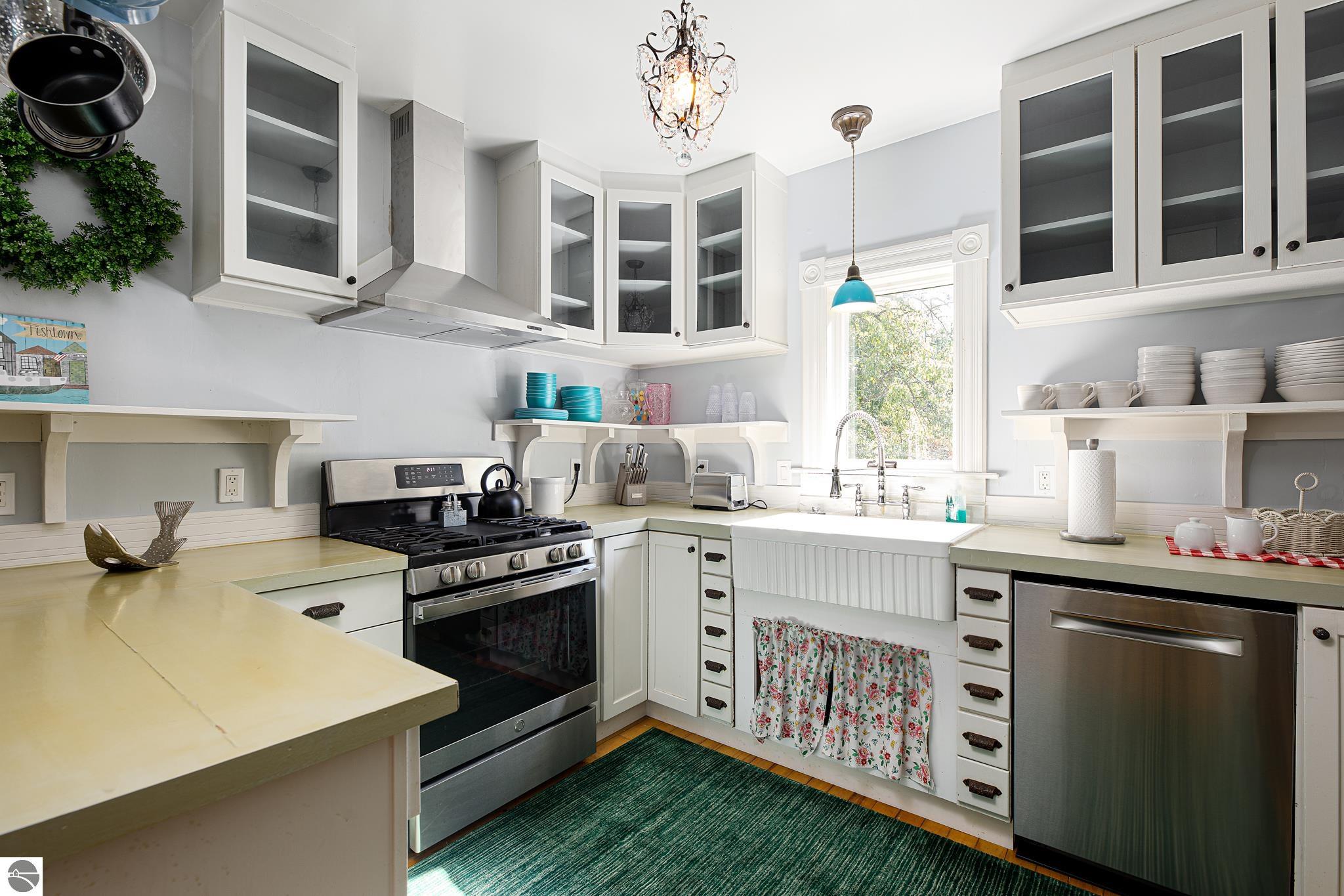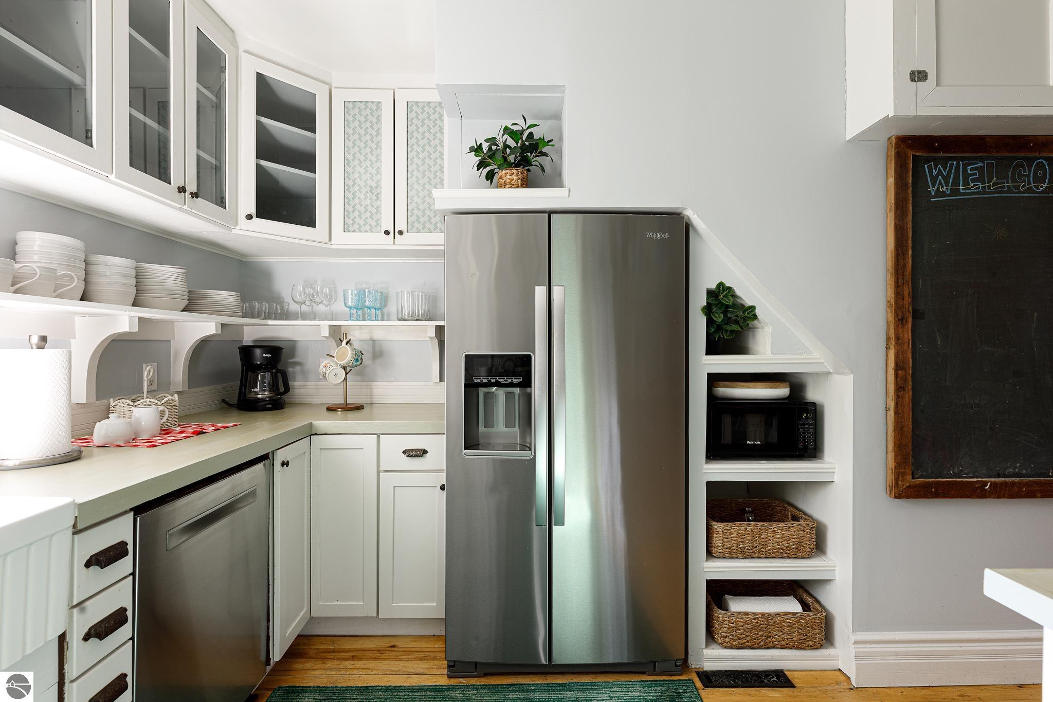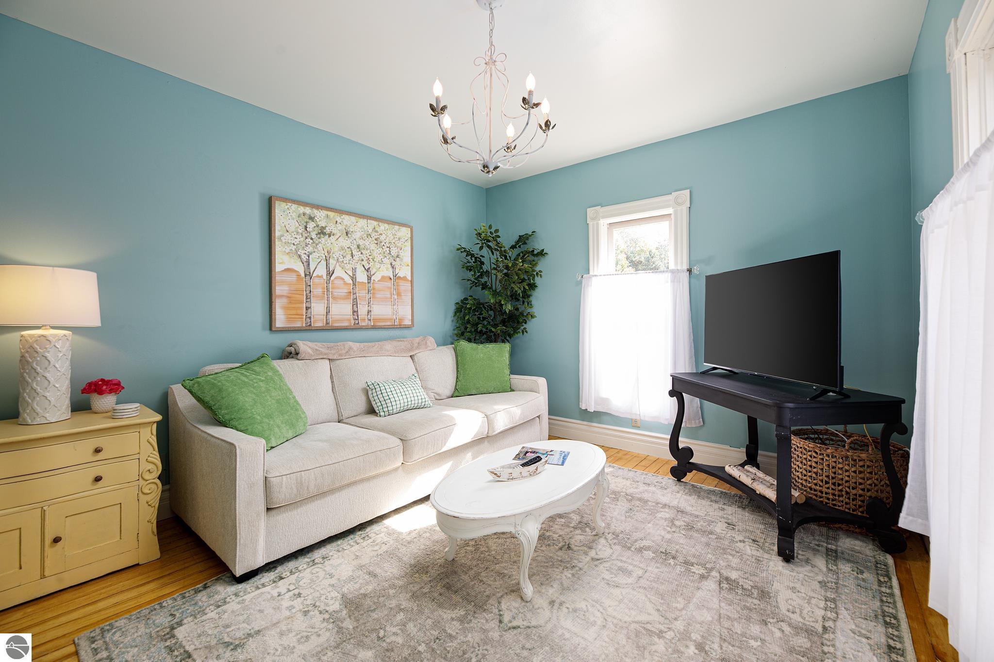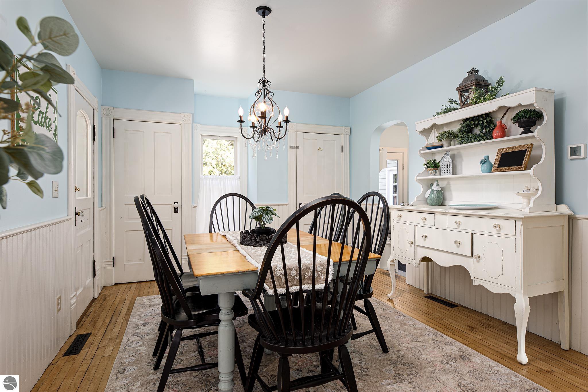 Idyllic farmhouse in Suttons Bay with direct access to the TART trail! This inviting 2-bed, 2-bath farmhouse sits on a full acre of open, park-like grounds with direct access to the Leelanau Trail via a private wooden deck path. Inside, you'll find roughly 1,300 sq ft of character and comfort—beautiful hardwood floors, a bright kitchen with modern updates, and cozy living spaces filled with natural light. Outside, enjoy a two-car detached garage, fire-pit area, and mature shade trees offering privacy and space to relax. Perfectly located just 5 minutes from downtown Suttons Bay and only a half-mile from Bahle Farms Golf Course, this property combines countryside charm with convenience to Leelanau’s best recreation, wineries, and waterfront. A rare opportunity to own a piece of Leelanau with trail access right out your back door. Listing data, supplemental documents have all been obtained from third-party sources and/or the seller. Information is deemed reliable but cannot be guaranteed for its accuracy. Buyer and/or its agent should verify before closing.
