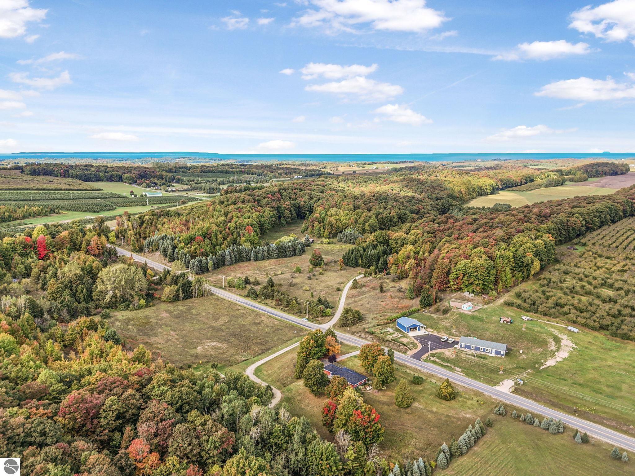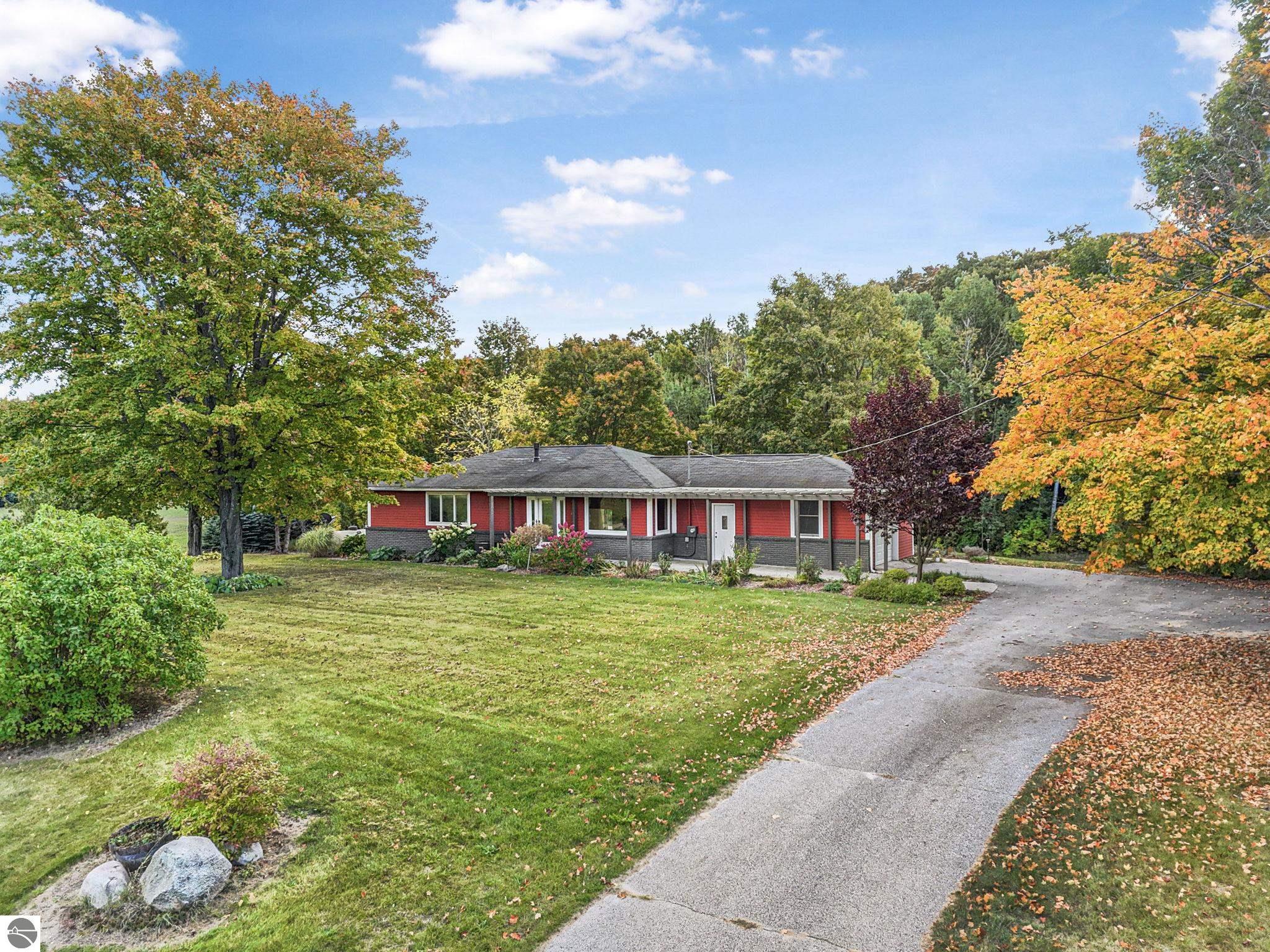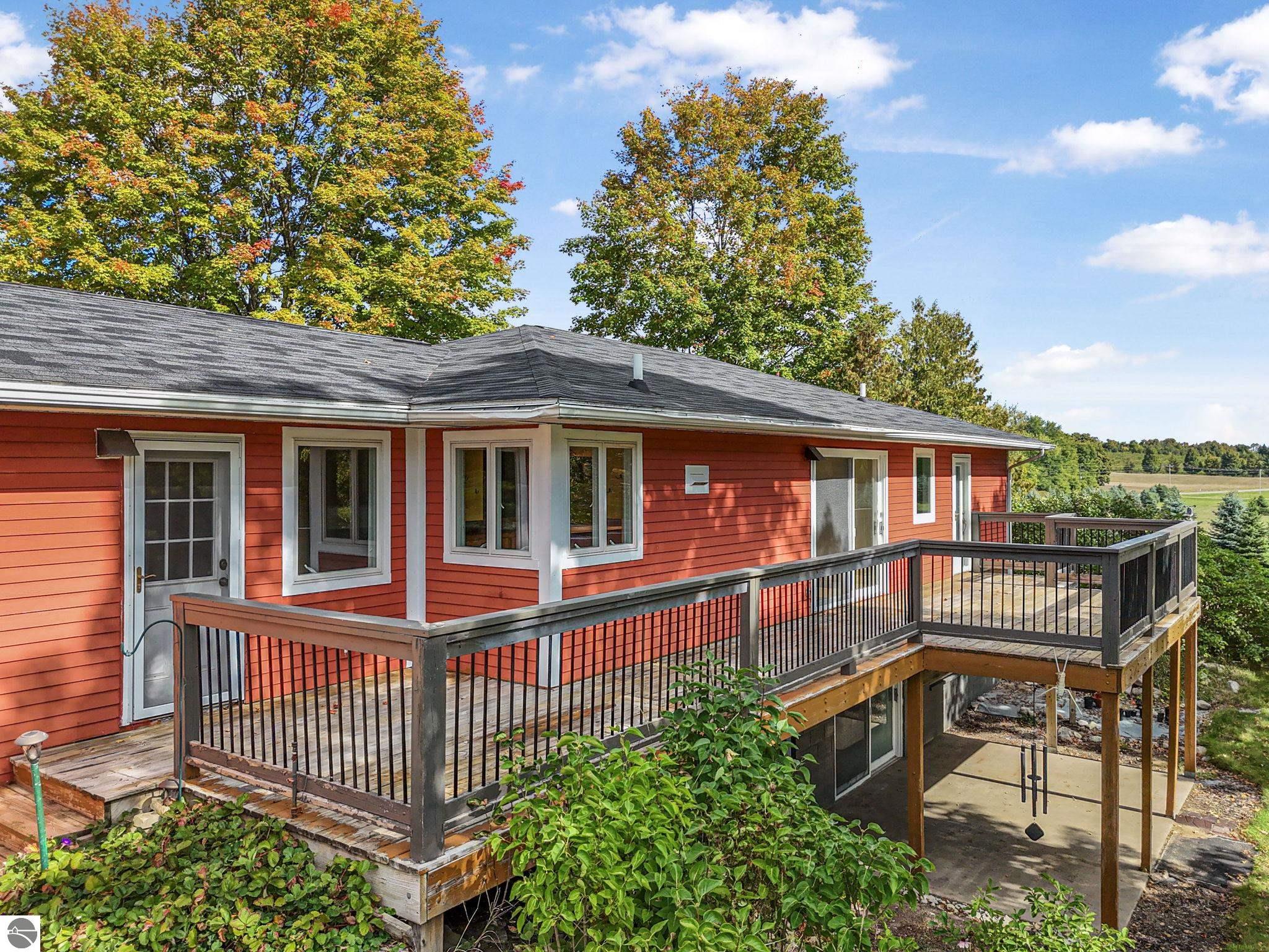 Take in all that Pure Leelanau County has to offer in this country oasis. Beautiful 1 story home situated on 6.8 acres. Point of sale on file. Home has 2 bathrooms and in addition to the two baths in home, out building has a bathroom. Home takes advantage of the natural surroundings, featuring a bright semi open concept floor plan. Spacious front patio with pergola & large rear deck. Hardwood flooring flows through main floor living areas. Dining area with large slider lets in nice country side views. Main floor primary with walk in closet and 2 way fireplace. Full walk-out lower level with finished family room. Additional second garage features 29'x29' garage bay and additional finished space. Enjoy all the peacefulness & tranquility found in this great setting yet only short drive to downtown Sutton’s Bay and all the beauty of Leelanau County.