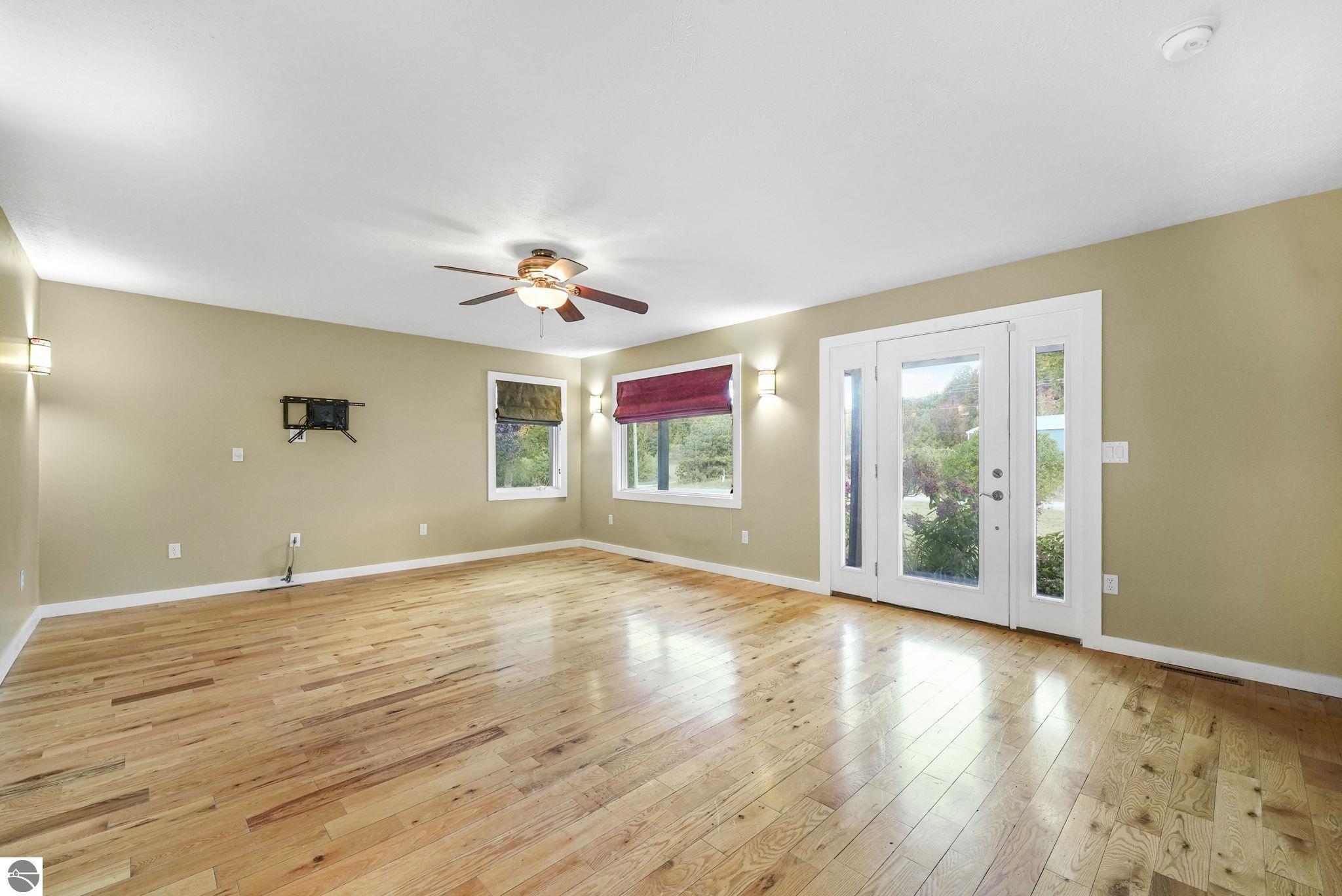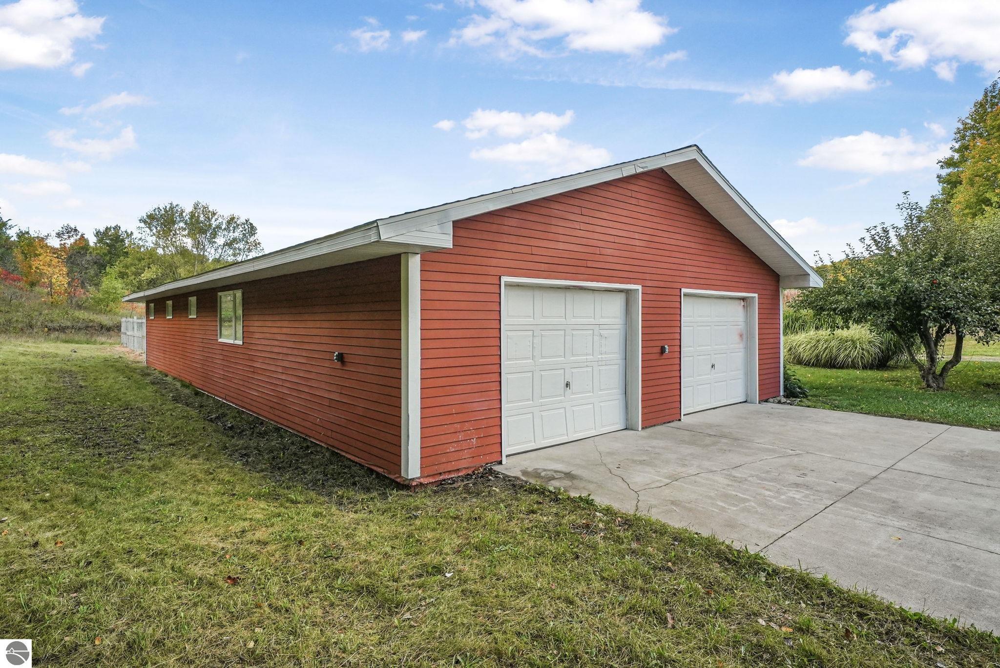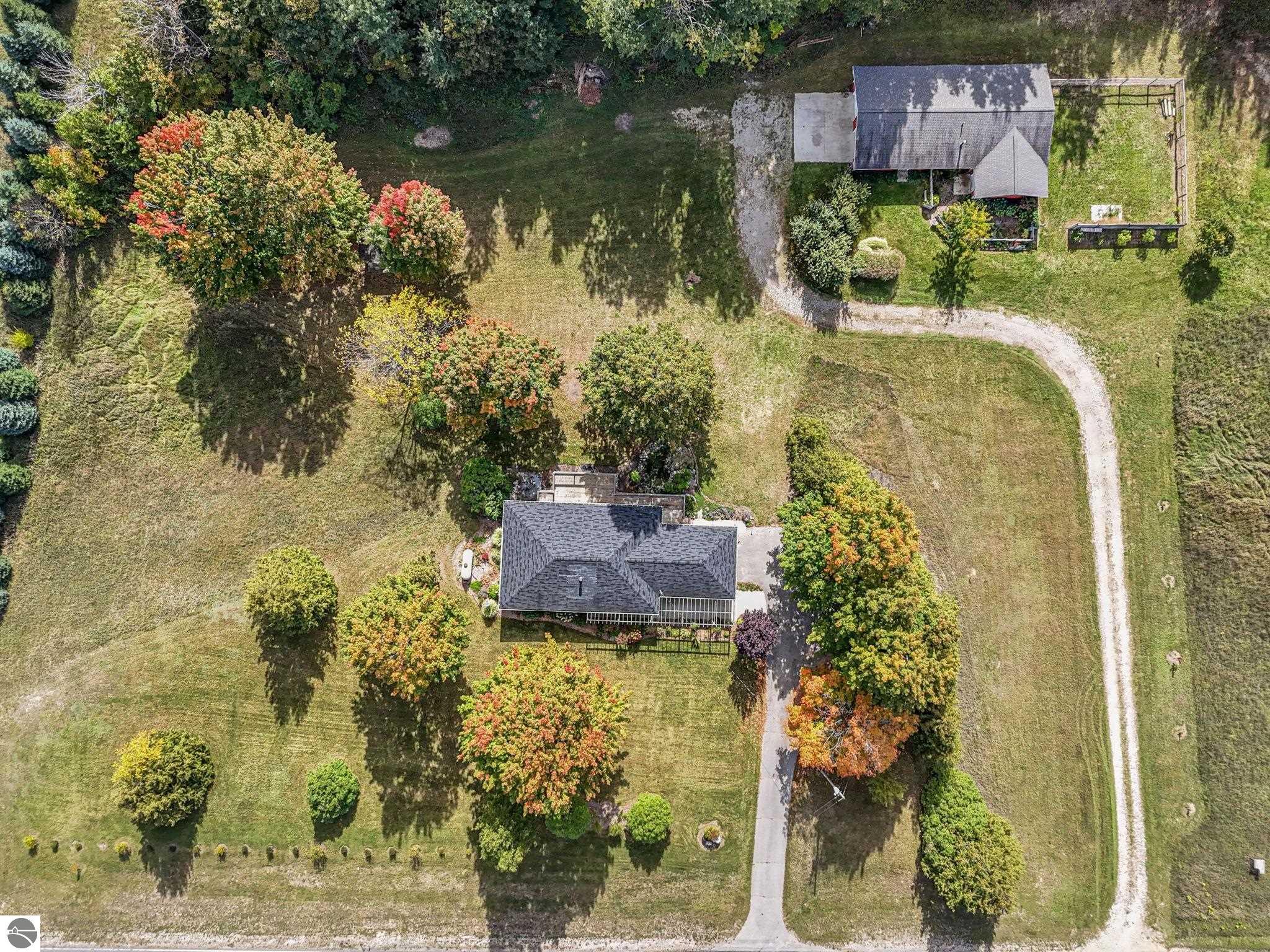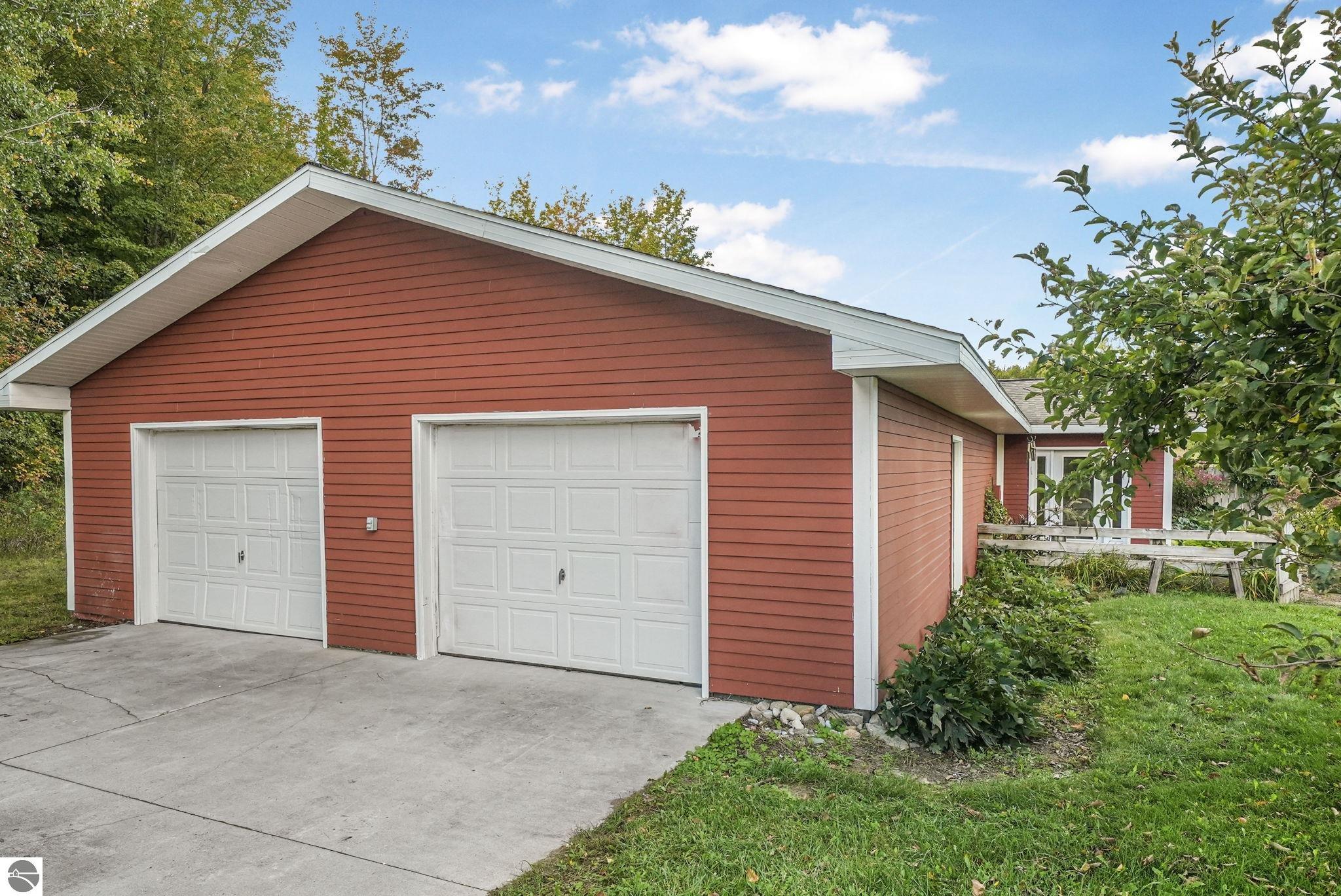Take in all that Pure Leelanau County has to offer in this country oasis. Beautiful 1 story home situated on 6.8 acres. Point of sale on file. Home has 2 bathrooms and in addition to the two baths in home, out building has a bathroom. Home takes advantage of the natural surroundings, featuring a bright semi open concept floor plan. Spacious front patio with pergola & large rear deck. Hardwood flooring flows through main floor living areas. Dining area with large slider lets in nice country side views. Main floor primary with walk in closet and 2 way fireplace. Full walk-out lower level with finished family room. Additional second garage features 29'x29' garage bay and additional finished space. Enjoy all the peacefulness & tranquility found in this great setting yet only short drive to downtown Sutton’s Bay and all the beauty of Leelanau County.