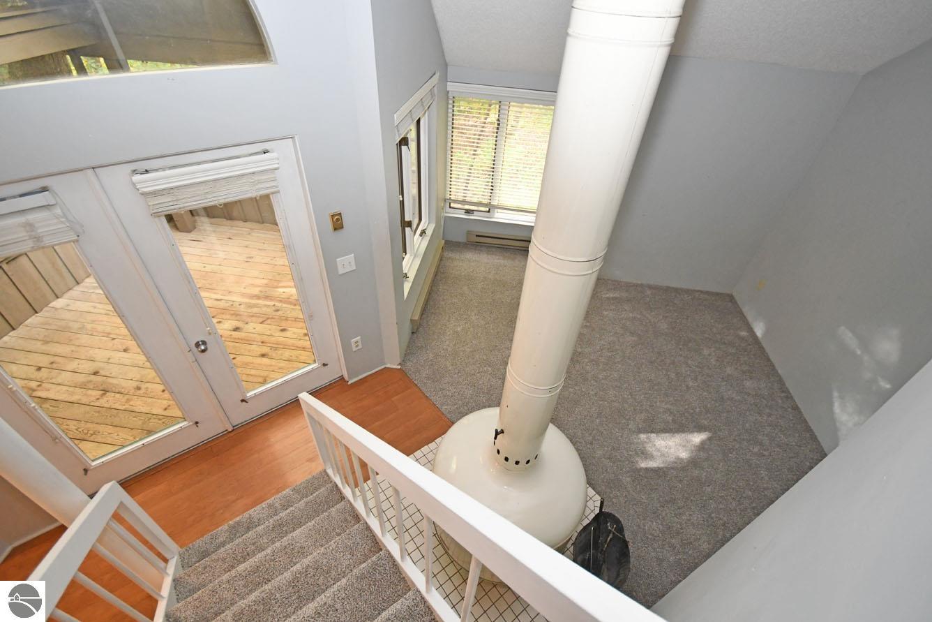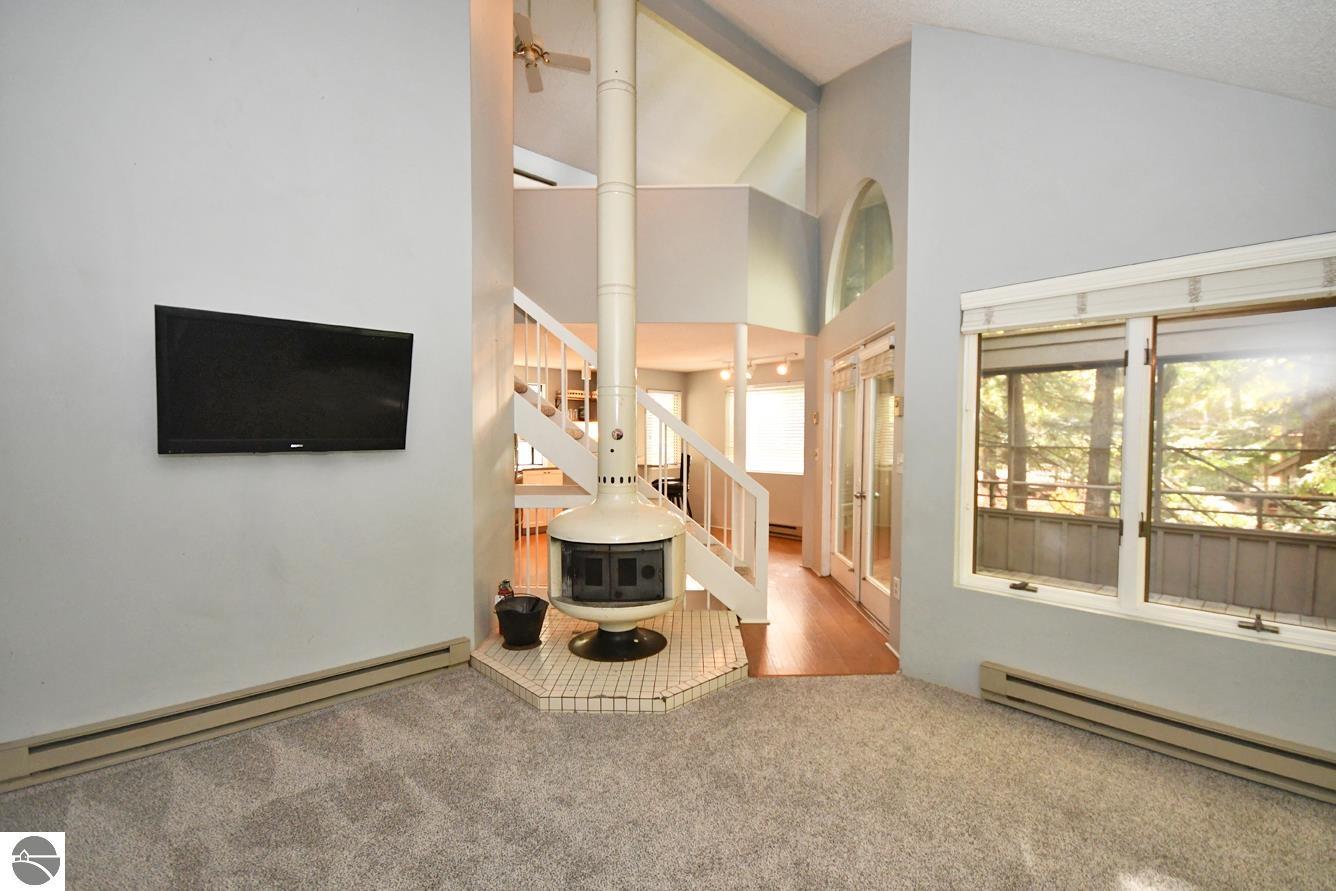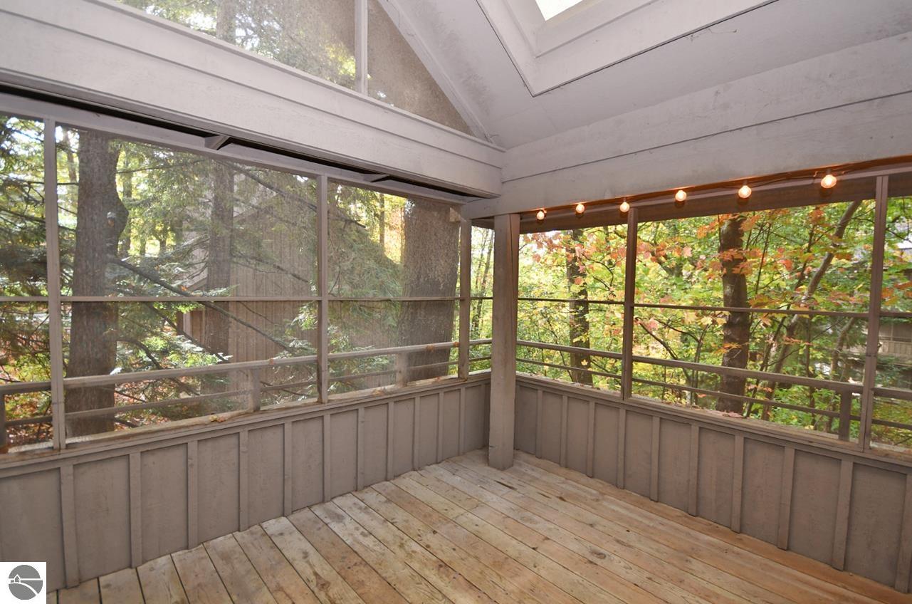 Perched in the hills of The Homestead, near downtown Glen Arbor, just steps to the ski hills (making this ski-in, ski-out), Hawks Nest 34 is a three bedroom, two and one half bathroom condo, with a soaring, two story ceiling, wood stove fireplace, and an incredible screened in porch that acts as a second living space with a peaceful treehouse like feel! The condo just had brand new carpet installed, is plumbed for a washer and dryer, has an updated kitchen and bathroom vanities/fixtures, and is a great, blank slate to make your own! On the main floor, there's a light and bright kitchen, dining space, living room, the large, screened in porch, and half bathroom. Upstairs, there's a lofted bedroom and bathroom with walk in shower, and in the lower level, there are two more bedrooms with a full Jack n' Jill bath with dual sinks, as well as an outdoor deck space. This is a fully livable condo if you're looking for a year-round residence, and would also make a great vacation rental if you're looking to use it only part time. Look no further than this ski-in, ski-out unit!