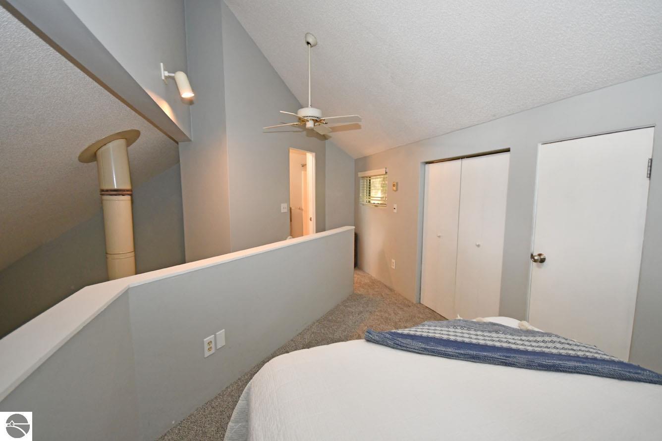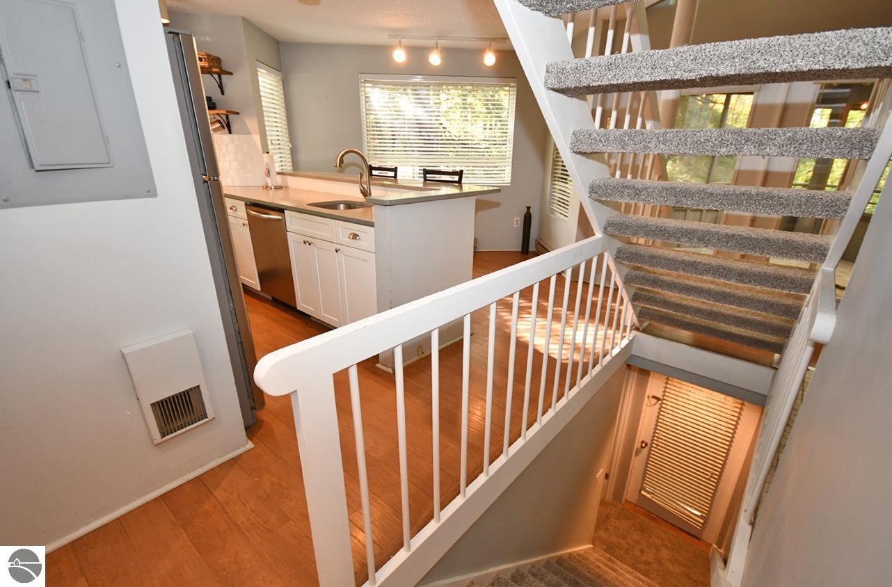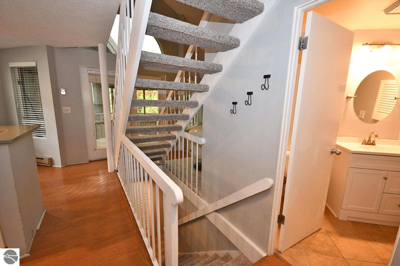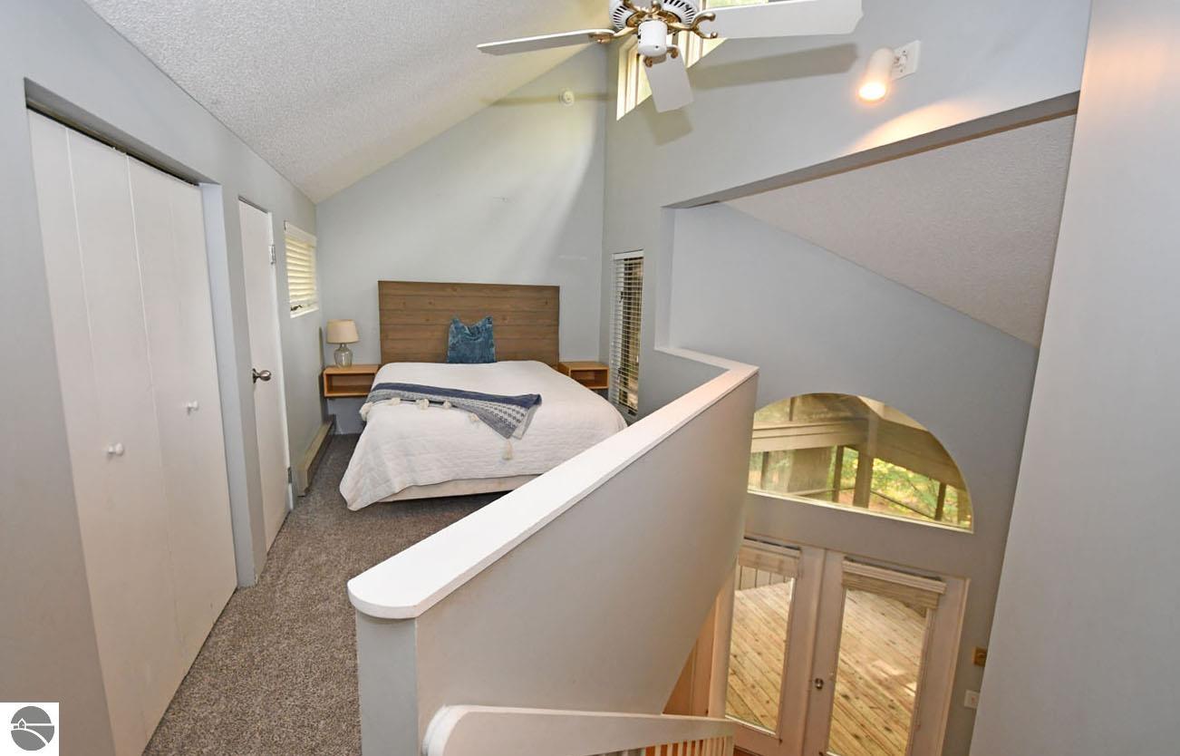 Perched in the hills of The Homestead, near downtown Glen Arbor, just steps to the ski hills (making this ski-in, ski-out), Hawks Nest 34 is a three bedroom, two and one half bathroom condo, with a soaring, two story ceiling, wood stove fireplace, and an incredible screened in porch that acts as a second living space with a peaceful treehouse like feel! The condo just had brand new carpet installed, is plumbed for a washer and dryer, has an updated kitchen and bathroom vanities/fixtures, and is a great, blank slate to make your own! On the main floor, there's a light and bright kitchen, dining space, living room, the large, screened in porch, and half bathroom. Upstairs, there's a lofted bedroom and bathroom with walk in shower, and in the lower level, there are two more bedrooms with a full Jack n' Jill bath with dual sinks, as well as an outdoor deck space. This is a fully livable condo if you're looking for a year-round residence, and would also make a great vacation rental if you're looking to use it only part time. Look no further than this ski-in, ski-out unit!