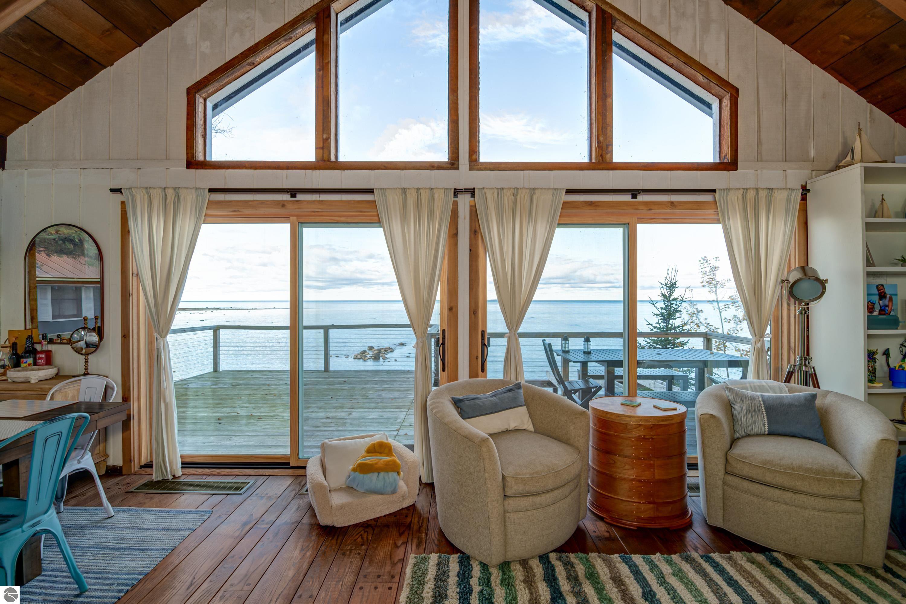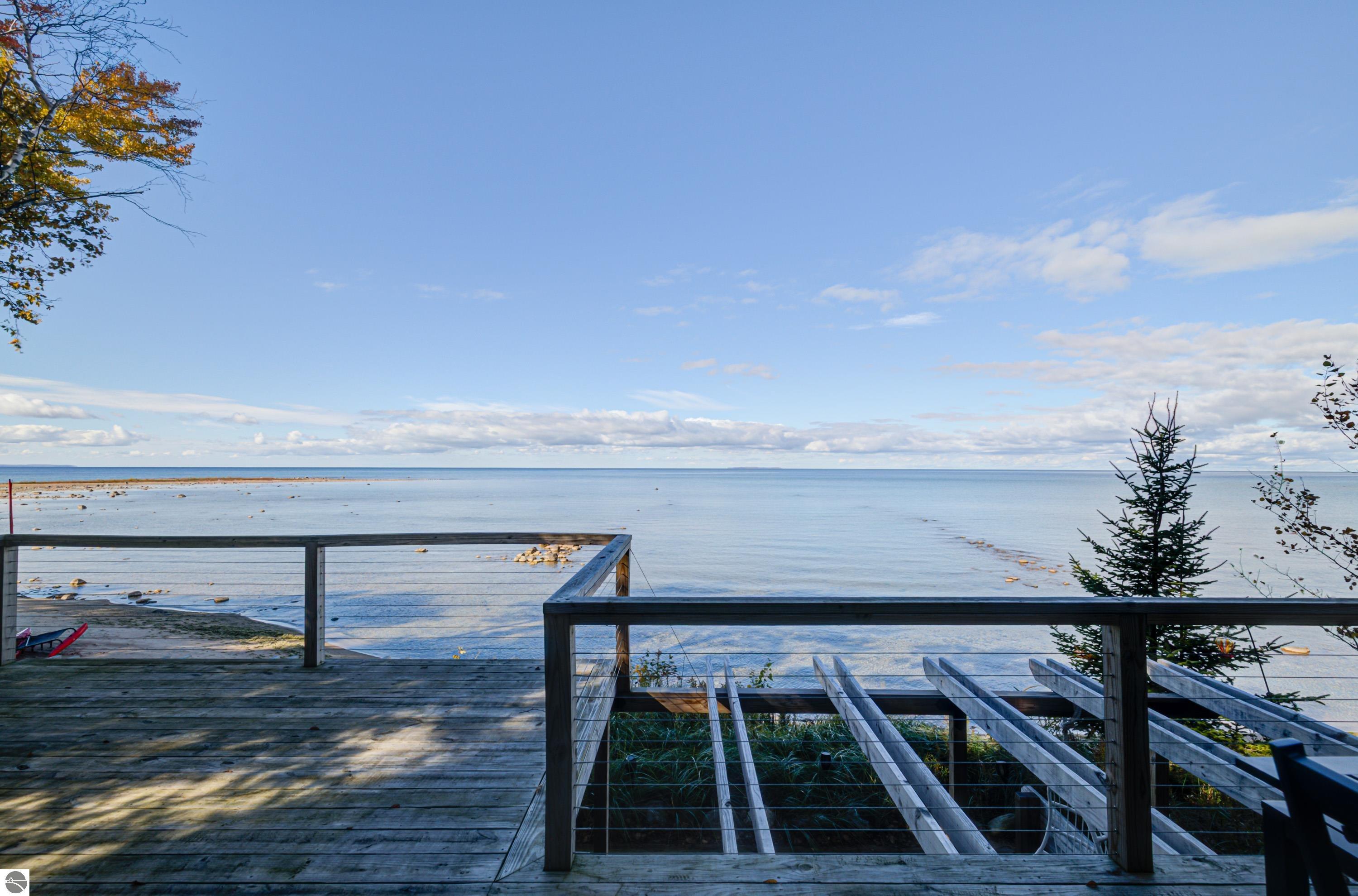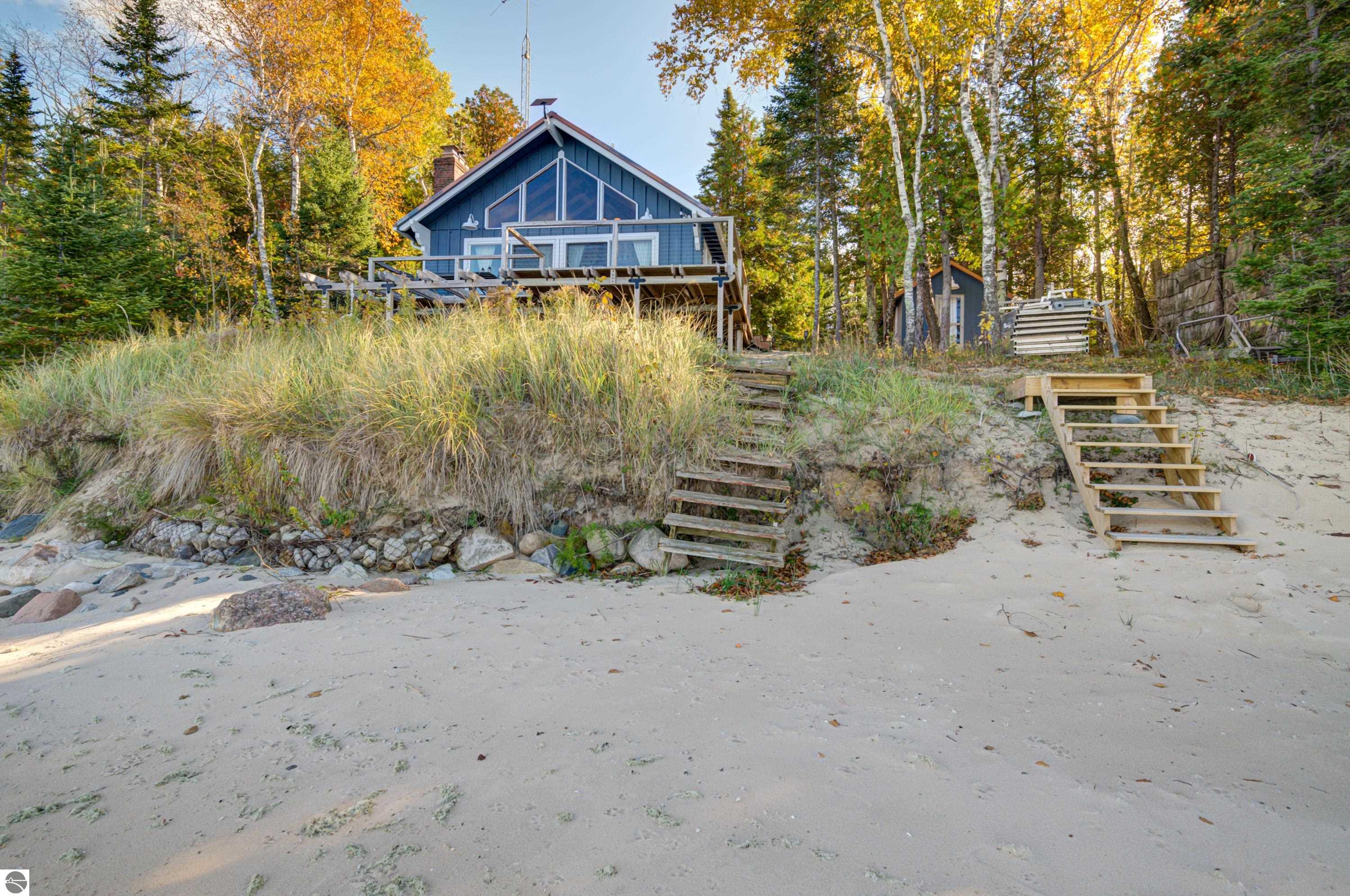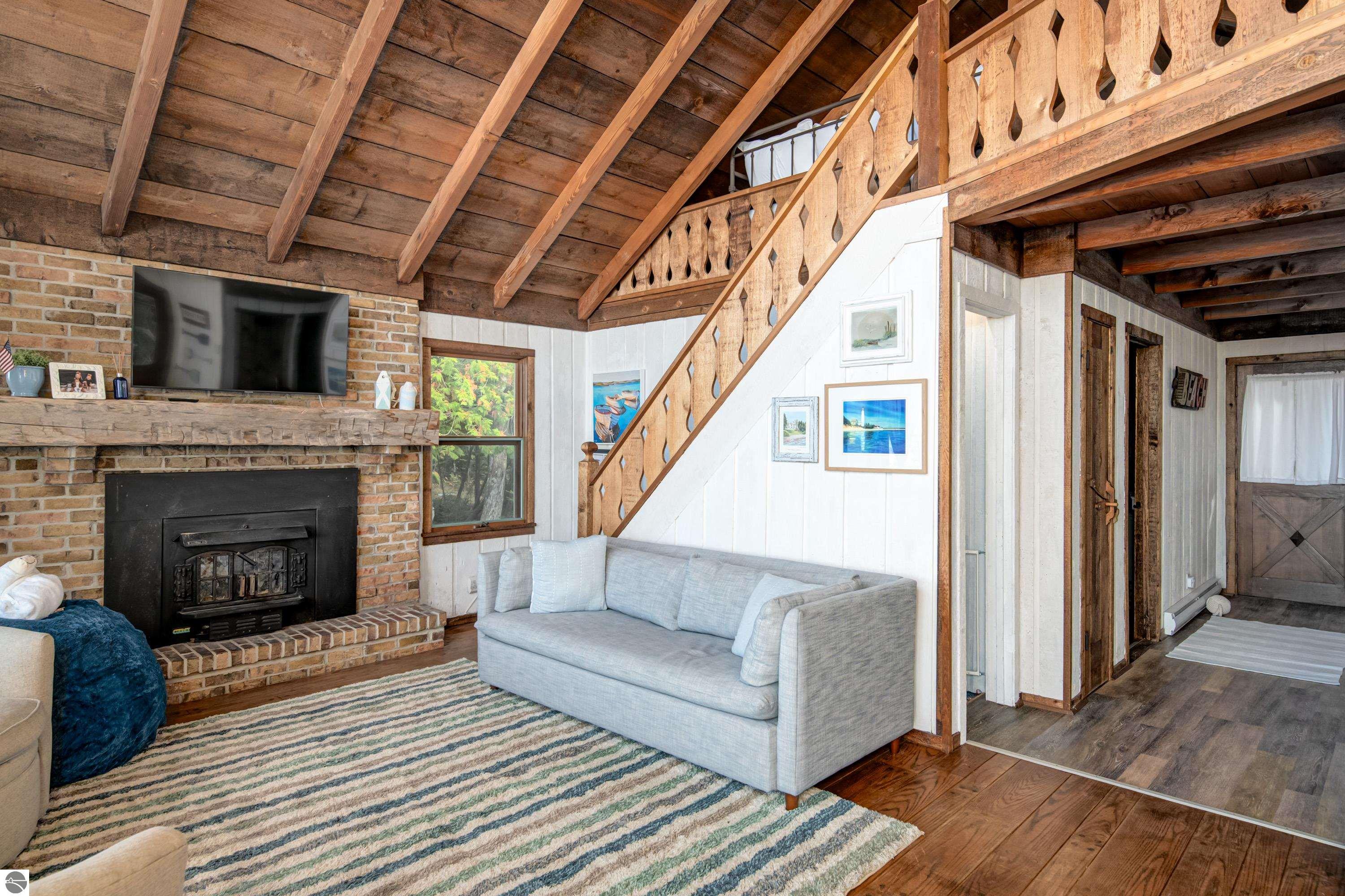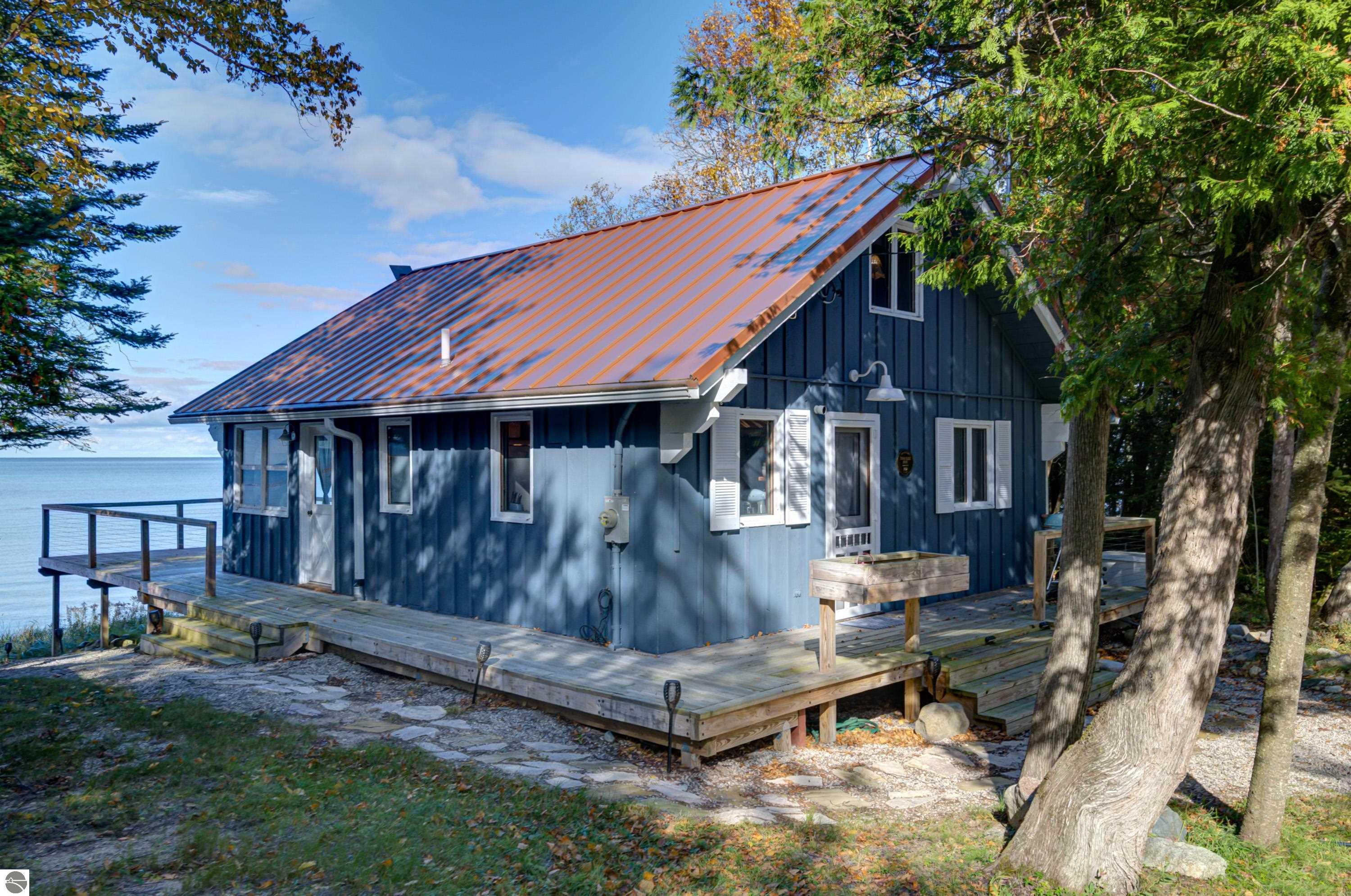 Unbelievable wooded setting on protected Lighthouse Cove with 100 ft of sandy Lake Michigan frontage. Traditional Leelanau chalet-style cottage with wall of windows and multi-level decking offering views of Cathead Point and the Fox Islands. Features include roughhewn cedar interior, beamed ceilings, peg wood floors, and two wood-burning fireplaces. Walkout lower level with family room, bedroom, bath, laundry, and hot tub. 4BR/2BA (4th bedroom is the bunk house), 1,667 sq ft on 0.5 acres. Over $90K invested over last 3 years. See disclosures for list of improvements made. Three bedrooms non-conforming since they don't have closets. Minutes from the Village of Northport. This is a MUST SEE.