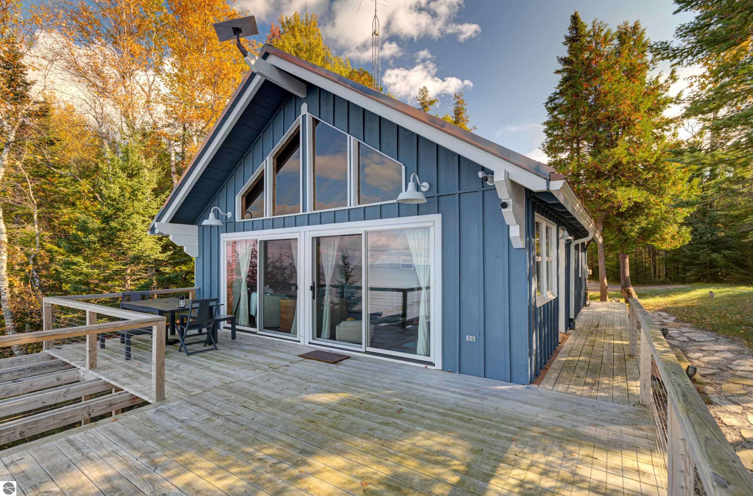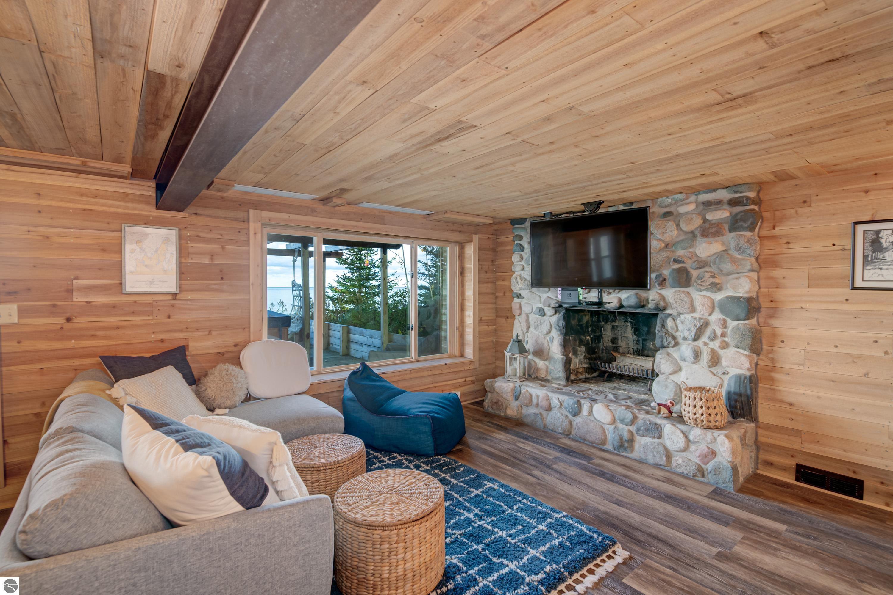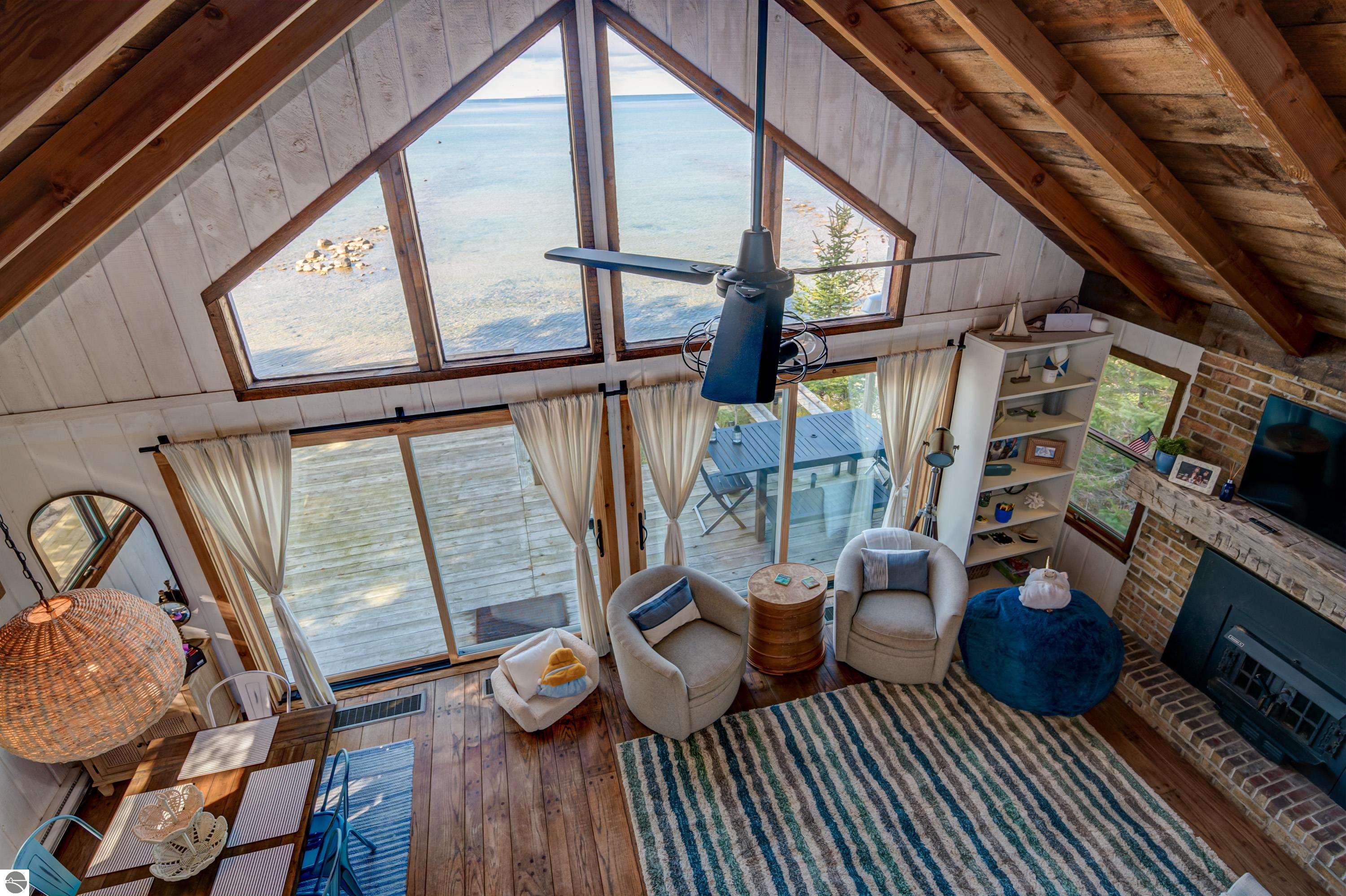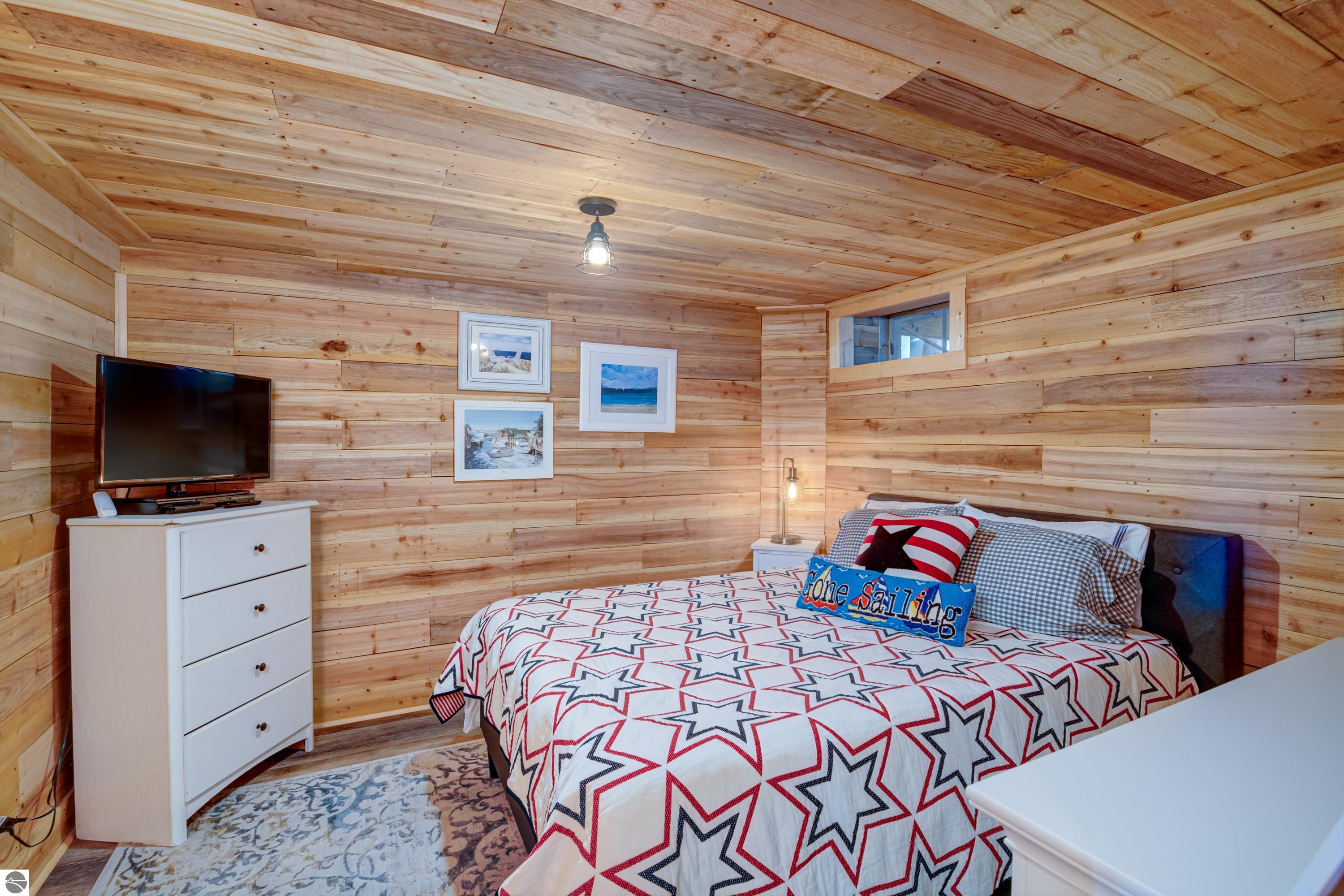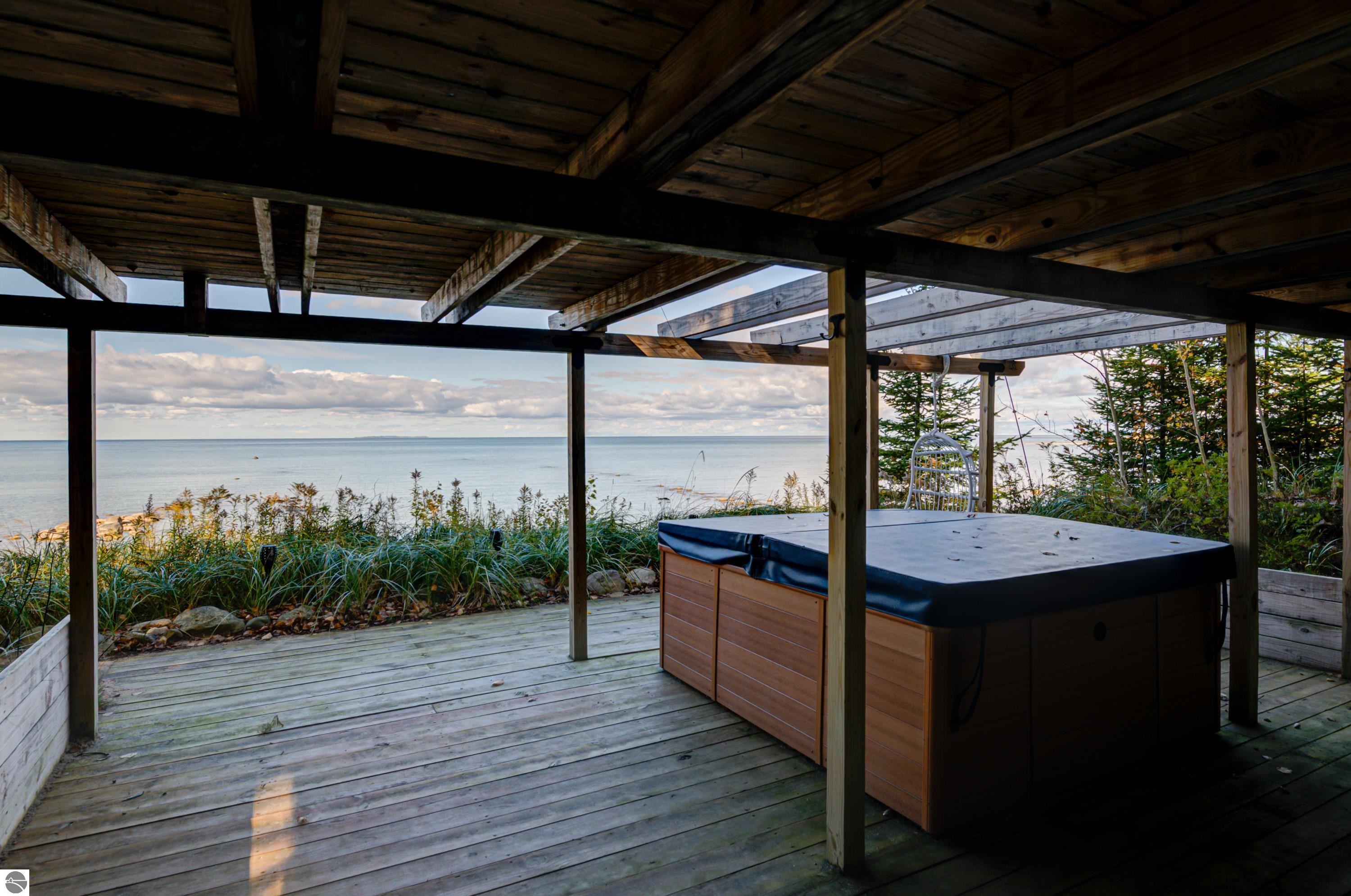 Unbelievable wooded setting on protected Lighthouse Cove with 100 ft of sandy Lake Michigan frontage. Traditional Leelanau chalet-style cottage with wall of windows and multi-level decking offering views of Cathead Point and the Fox Islands. Features include roughhewn cedar interior, beamed ceilings, peg wood floors, and two wood-burning fireplaces. Walkout lower level with family room, bedroom, bath, laundry, and hot tub. 4BR/2BA (4th bedroom is the bunk house), 1,667 sq ft on 0.5 acres. Over $90K invested over last 3 years. See disclosures for list of improvements made. Three bedrooms non-conforming since they don't have closets. Minutes from the Village of Northport. This is a MUST SEE.