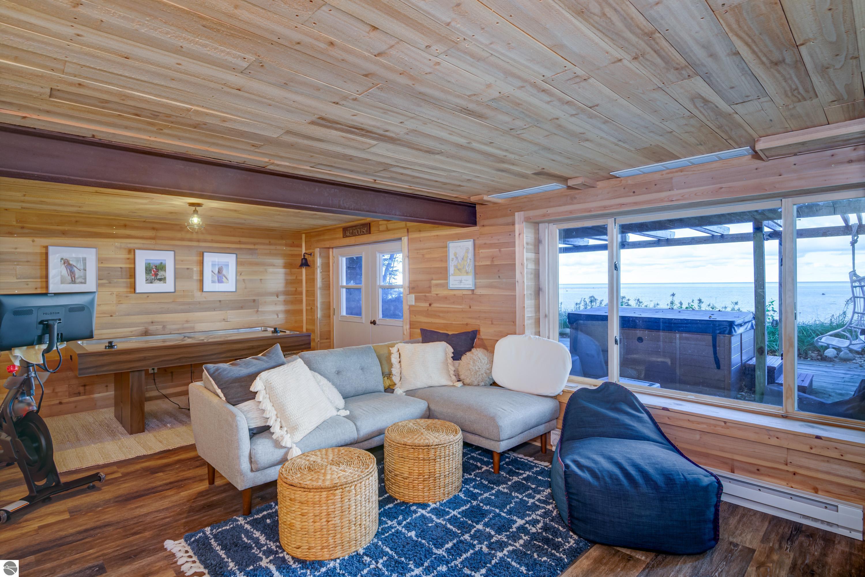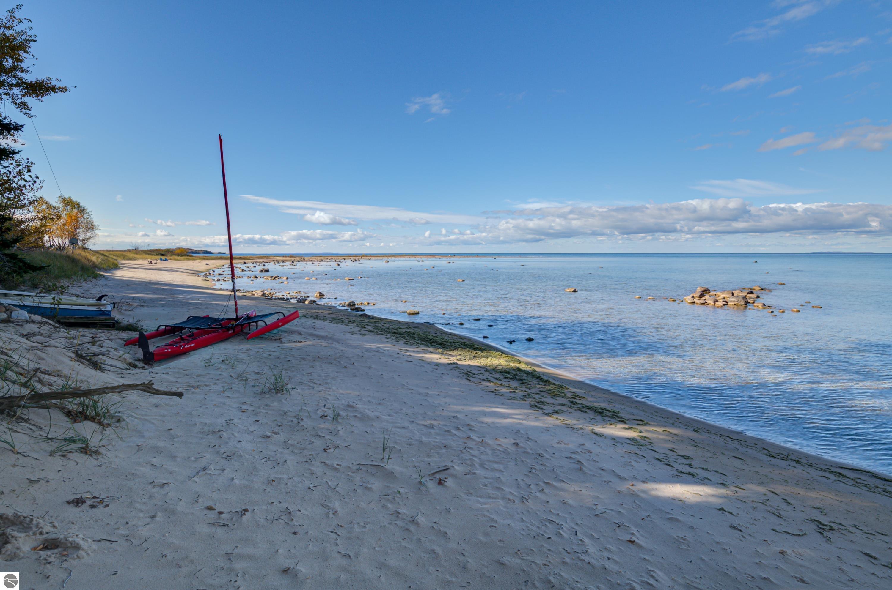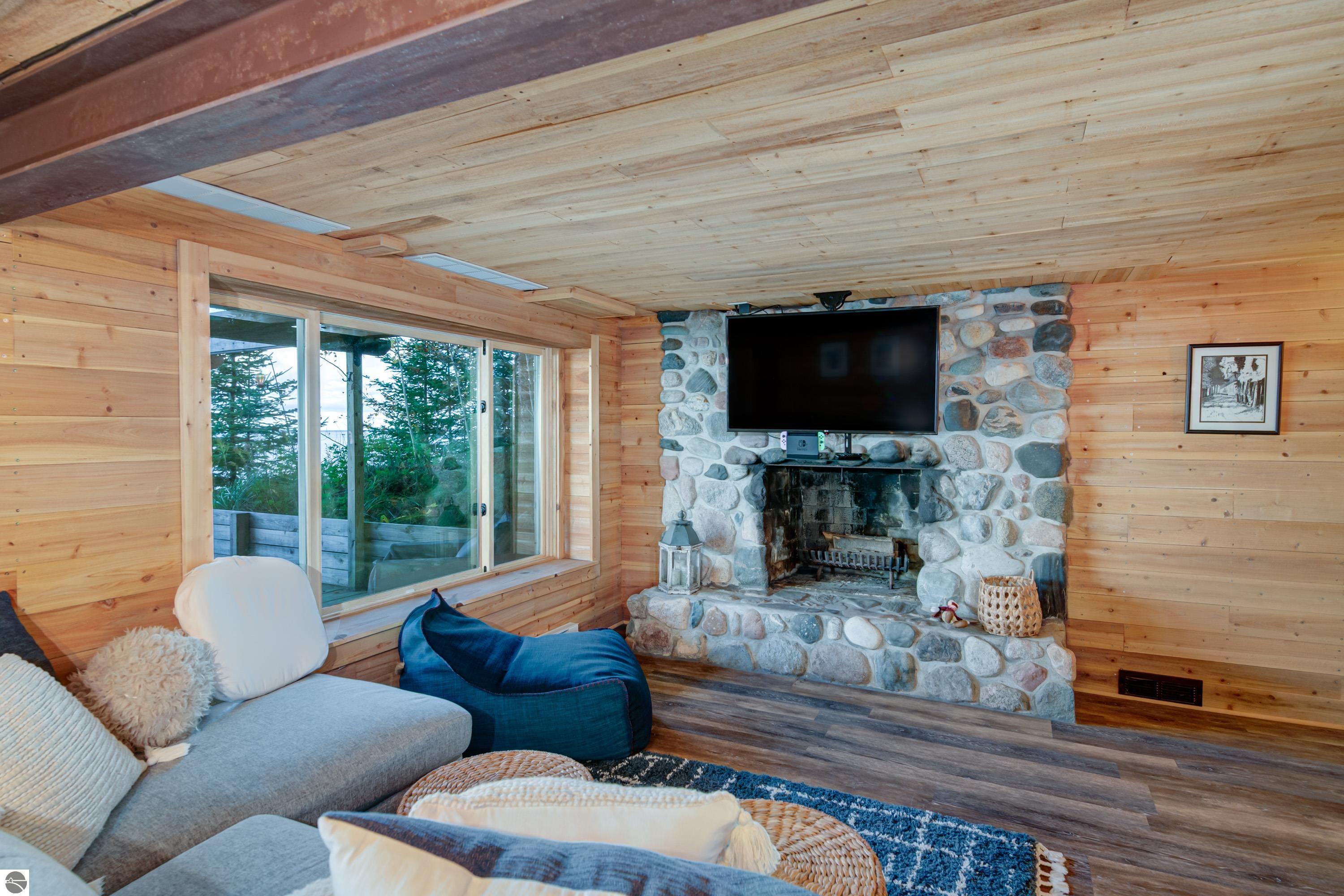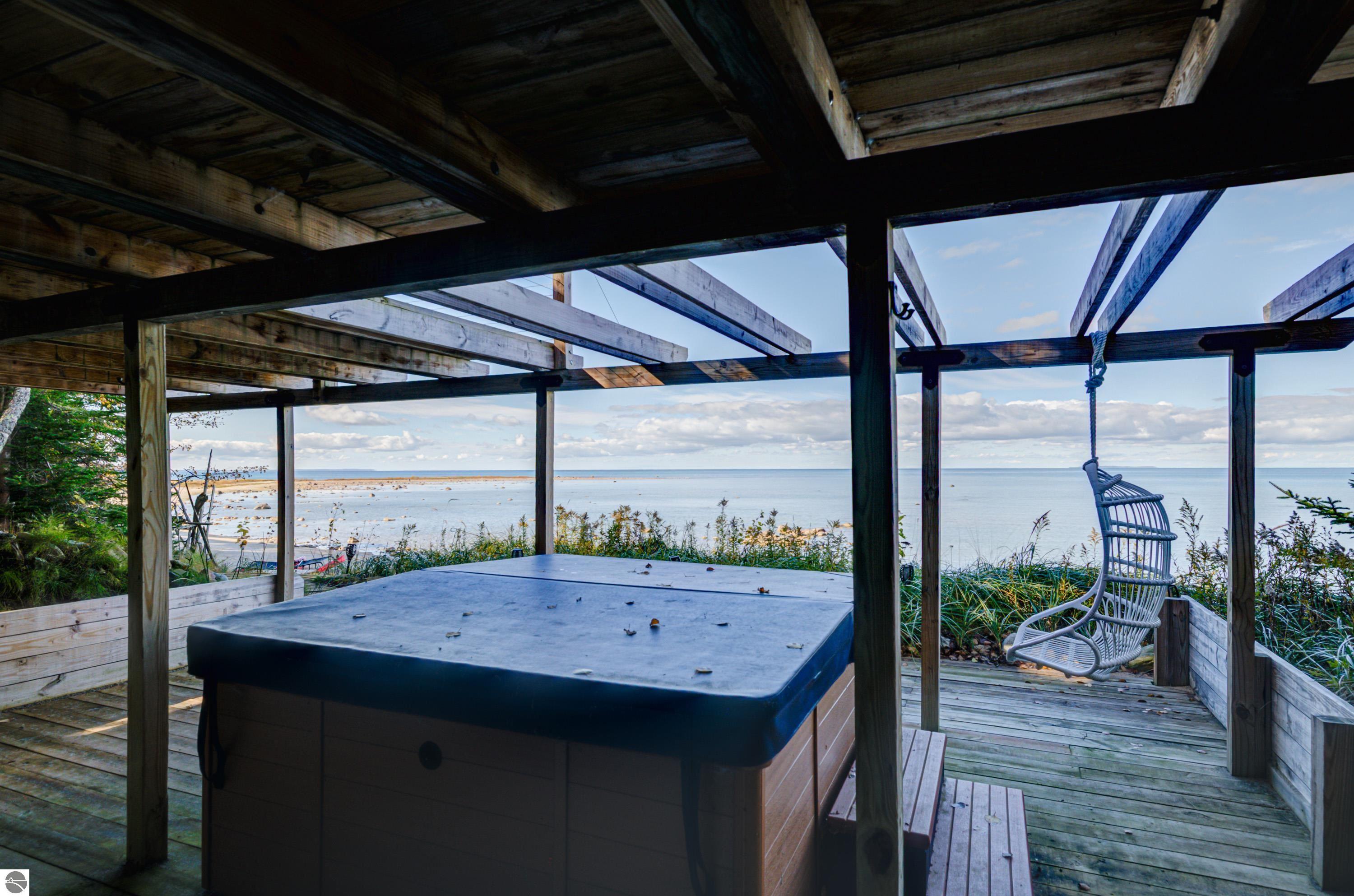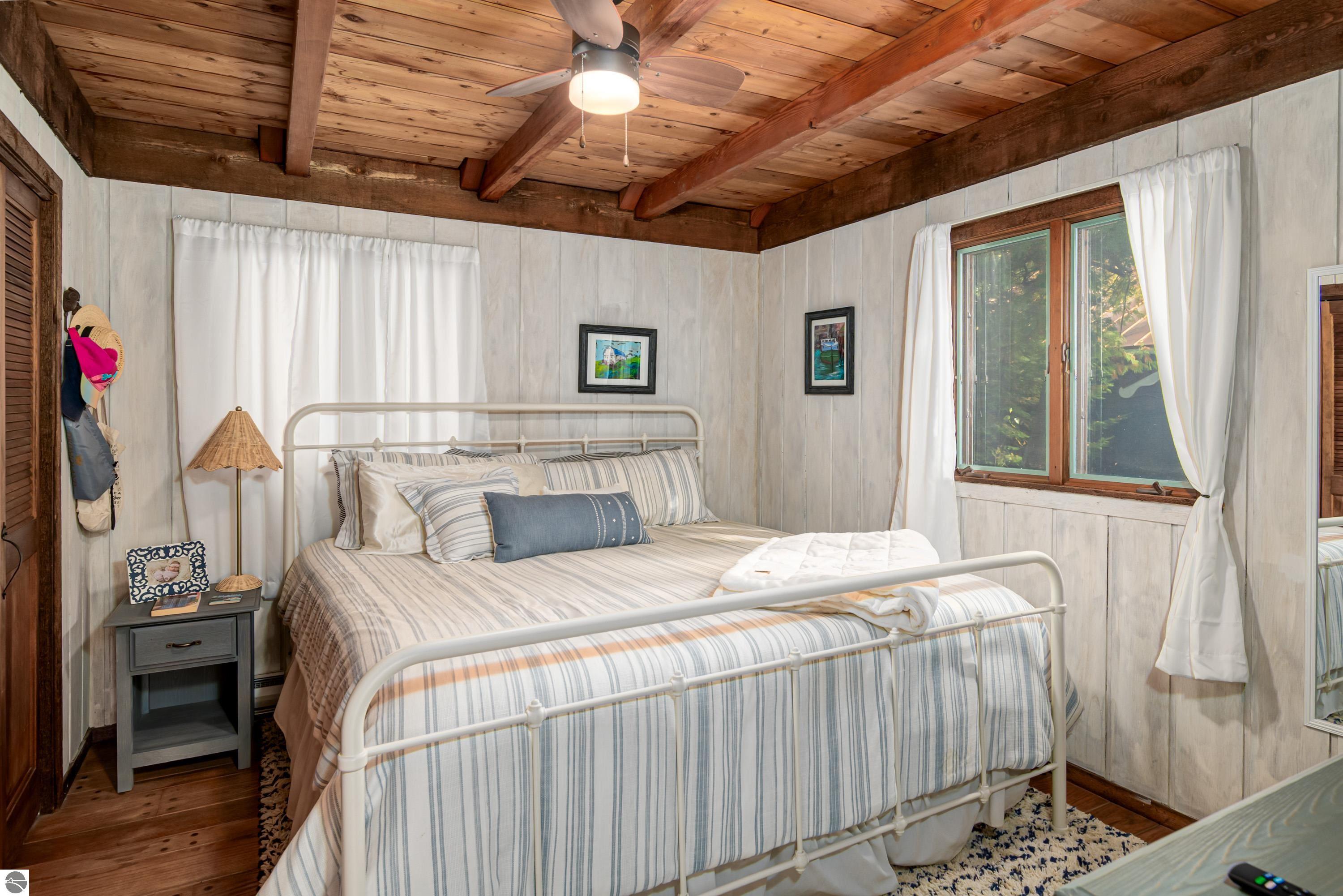 Unbelievable wooded setting on protected Lighthouse Cove with 100 ft of sandy Lake Michigan frontage. Traditional Leelanau chalet-style cottage with wall of windows and multi-level decking offering views of Cathead Point and the Fox Islands. Features include roughhewn cedar interior, beamed ceilings, peg wood floors, and two wood-burning fireplaces. Walkout lower level with family room, bedroom, bath, laundry, and hot tub. 4BR/2BA (4th bedroom is the bunk house), 1,667 sq ft on 0.5 acres. Over $90K invested over last 3 years. See disclosures for list of improvements made. Three bedrooms non-conforming since they don't have closets. Minutes from the Village of Northport. This is a MUST SEE.