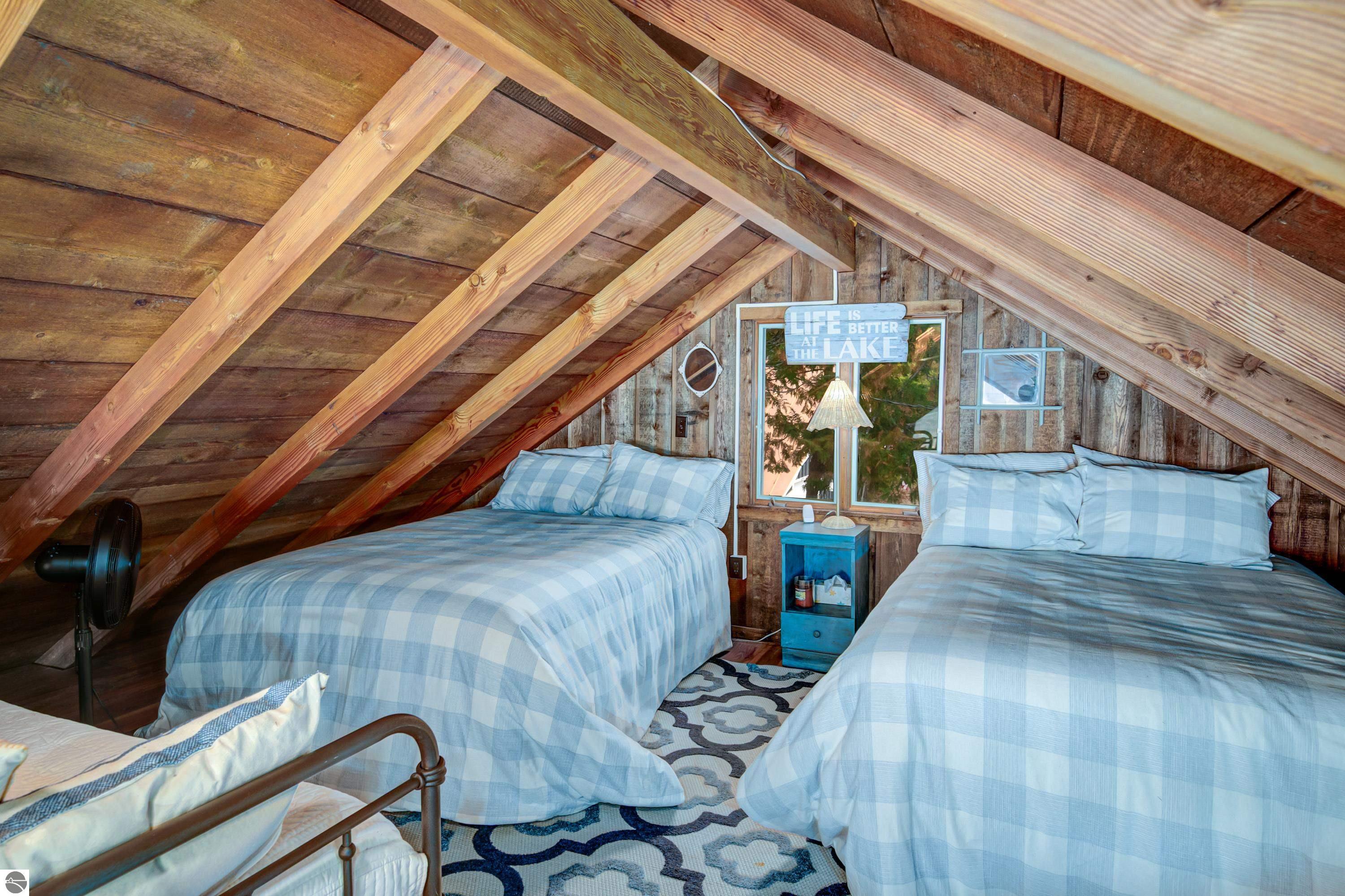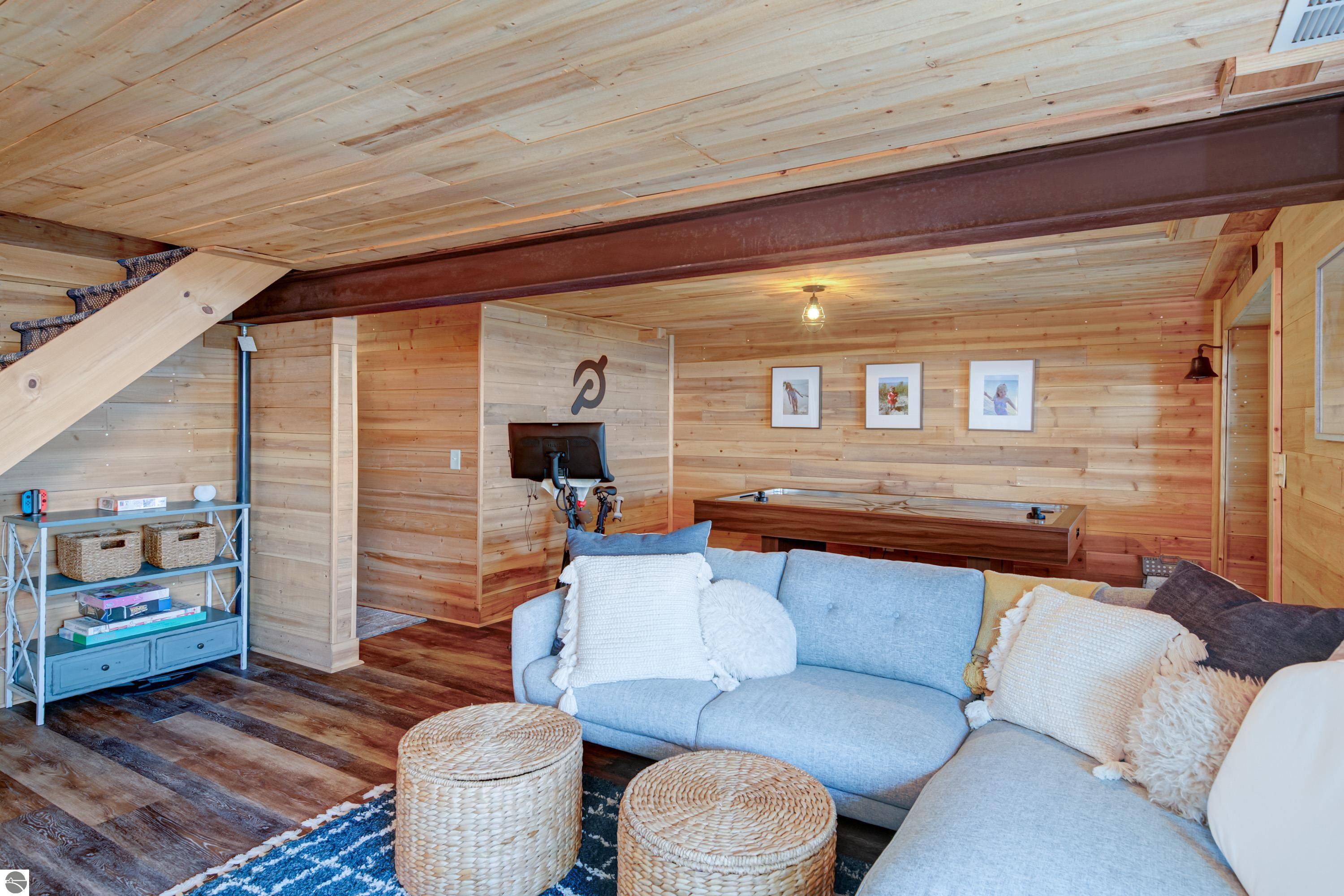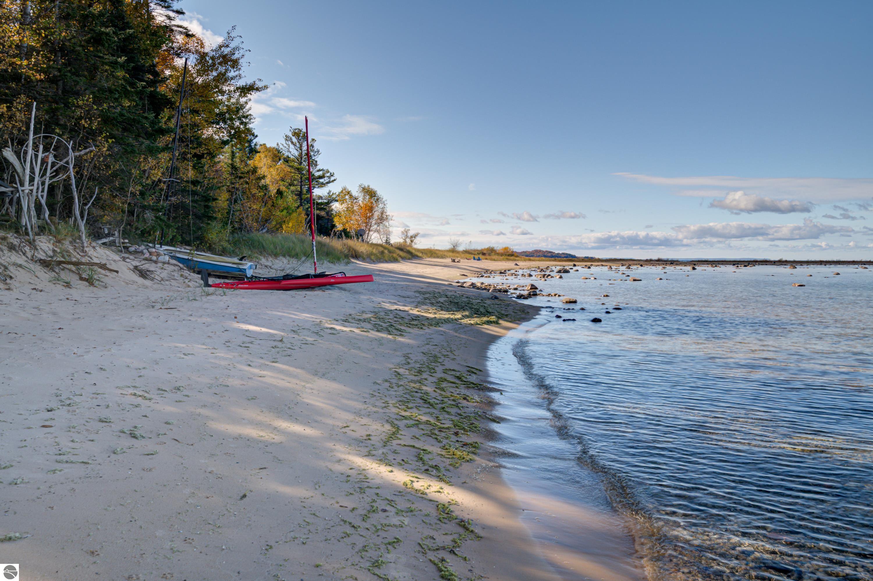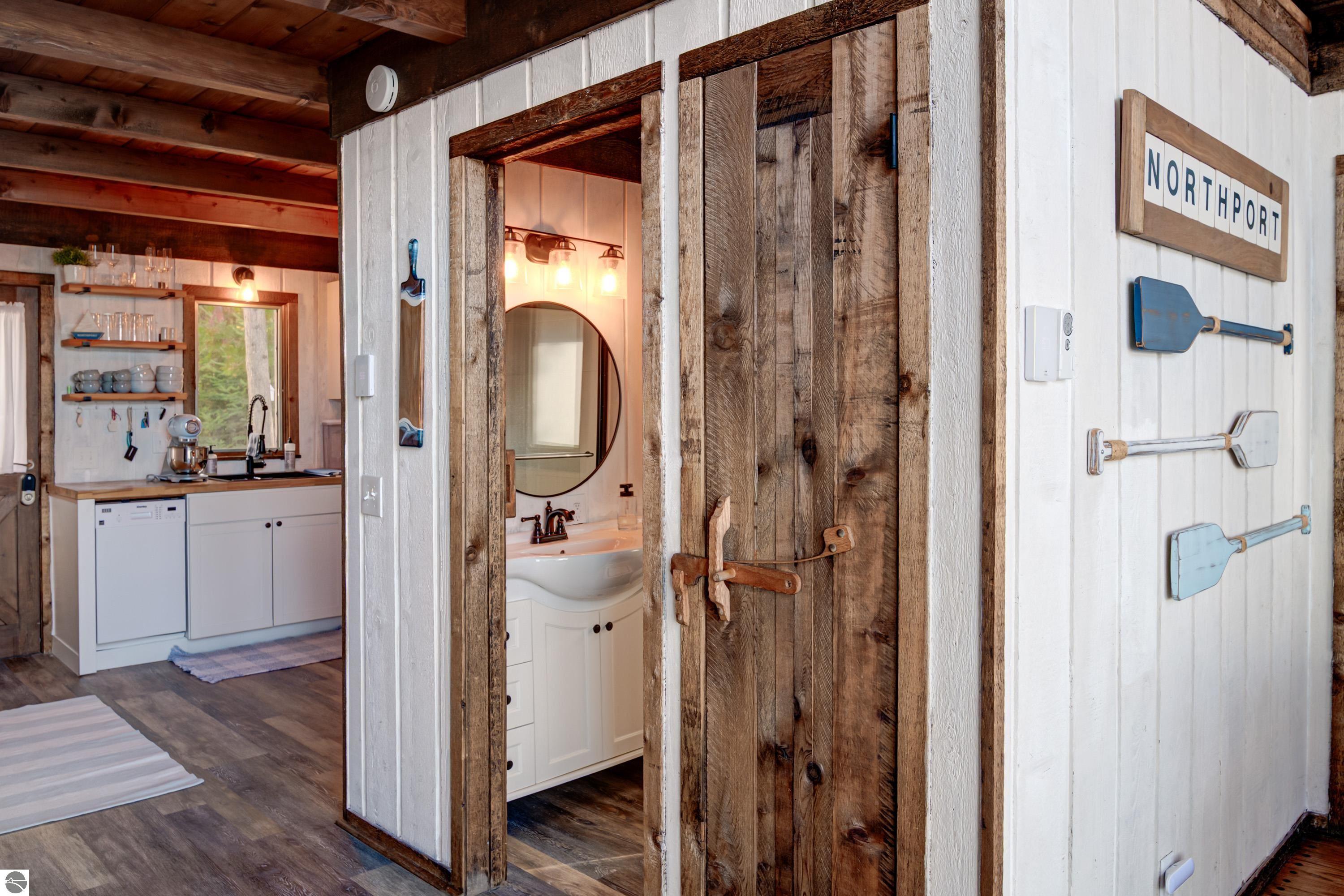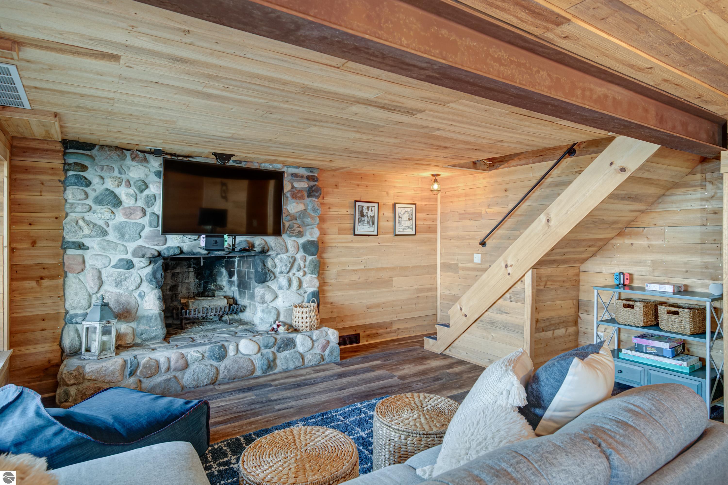 Unbelievable wooded setting on protected Lighthouse Cove with 100 ft of sandy Lake Michigan frontage. Traditional Leelanau chalet-style cottage with wall of windows and multi-level decking offering views of Cathead Point and the Fox Islands. Features include roughhewn cedar interior, beamed ceilings, peg wood floors, and two wood-burning fireplaces. Walkout lower level with family room, bedroom, bath, laundry, and hot tub. 4BR/2BA (4th bedroom is the bunk house), 1,667 sq ft on 0.5 acres. Over $90K invested over last 3 years. See disclosures for list of improvements made. Three bedrooms non-conforming since they don't have closets. Minutes from the Village of Northport. This is a MUST SEE.