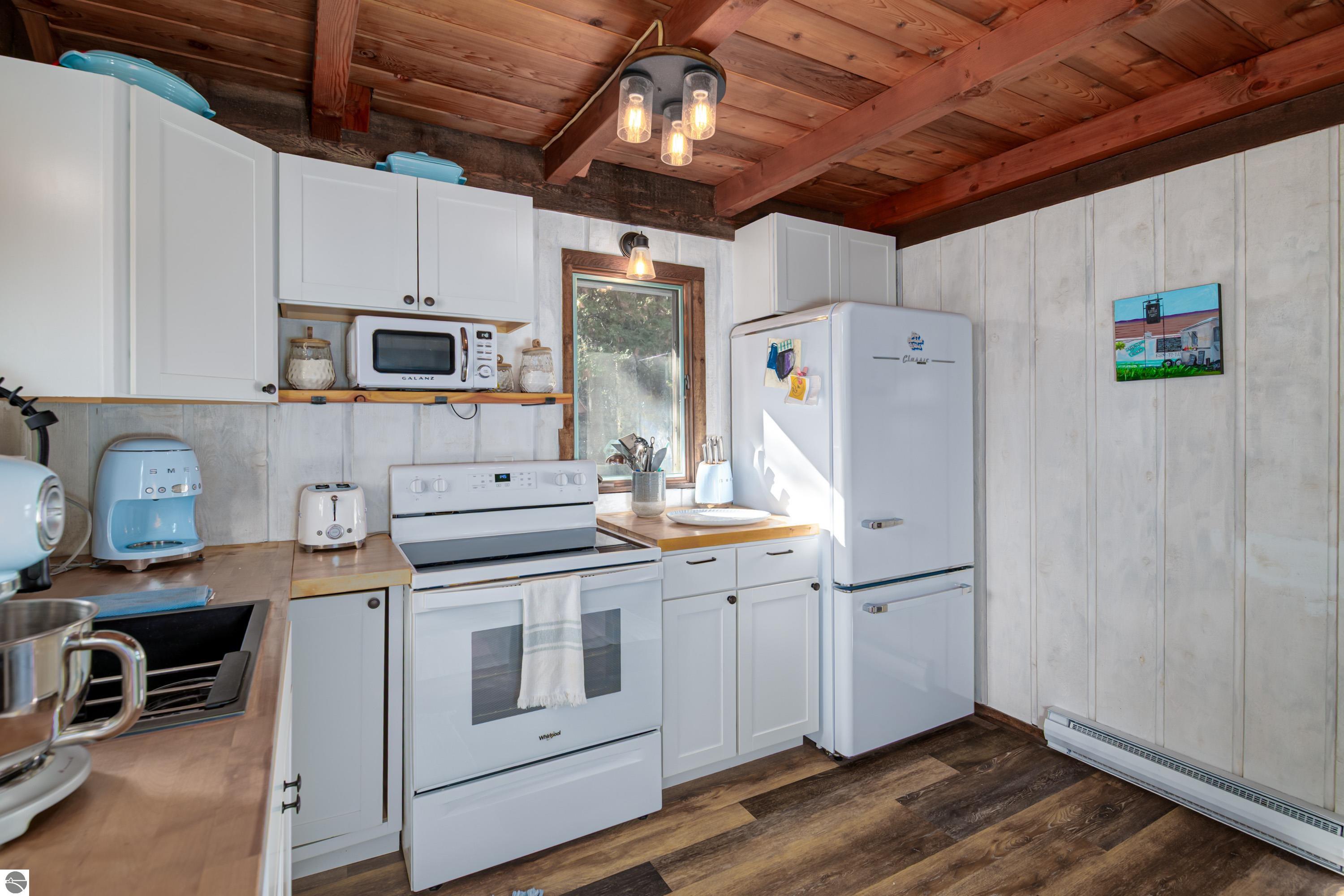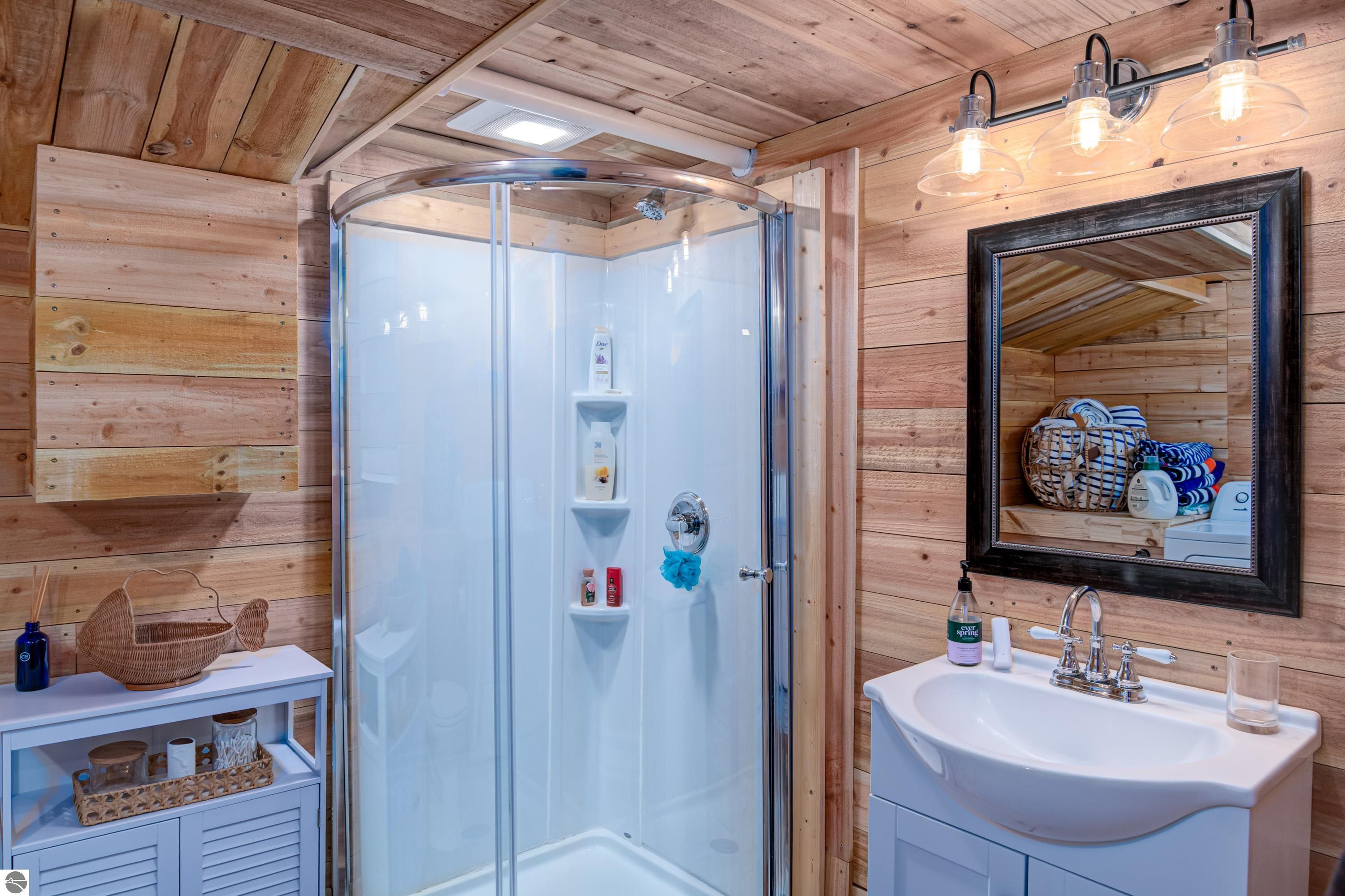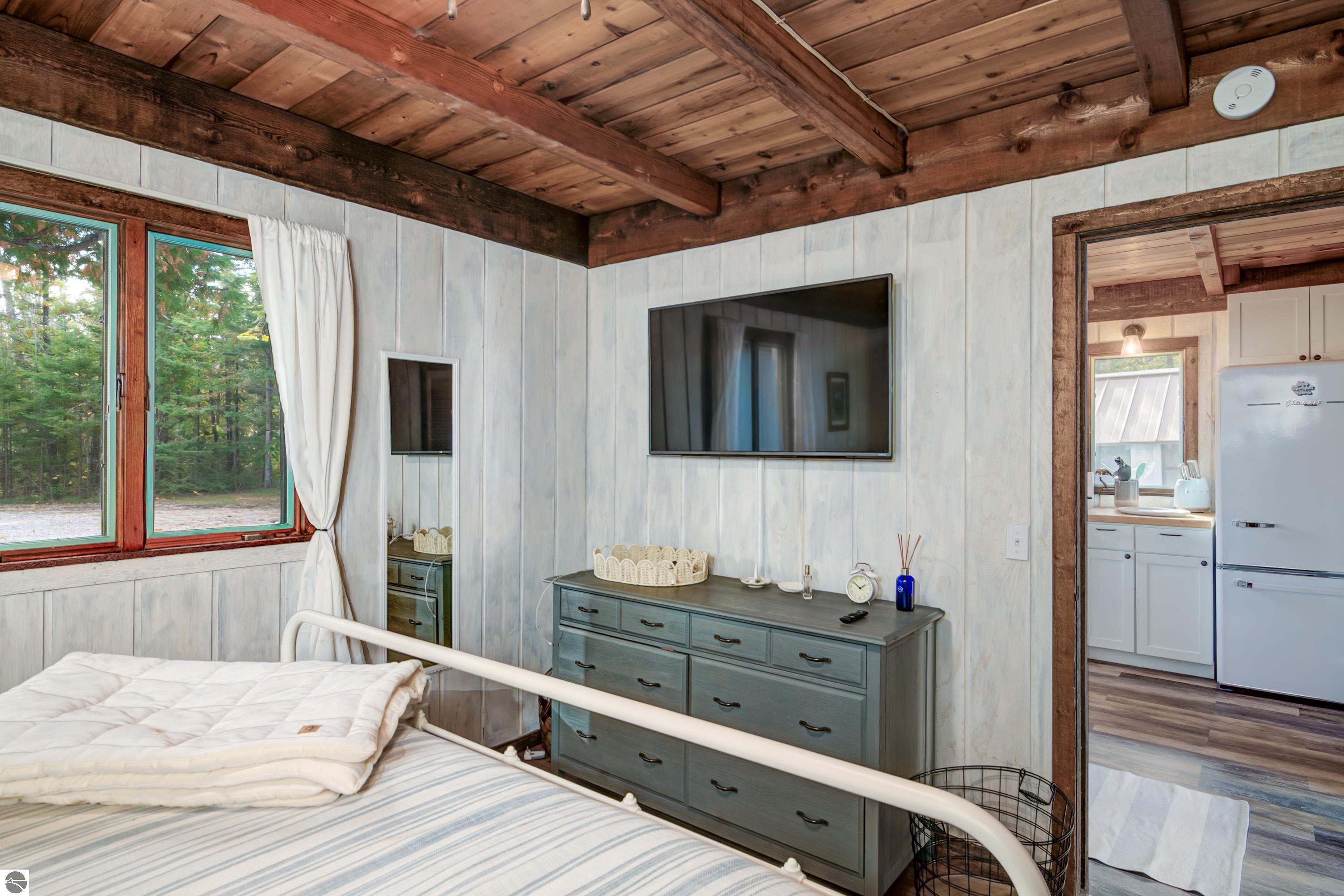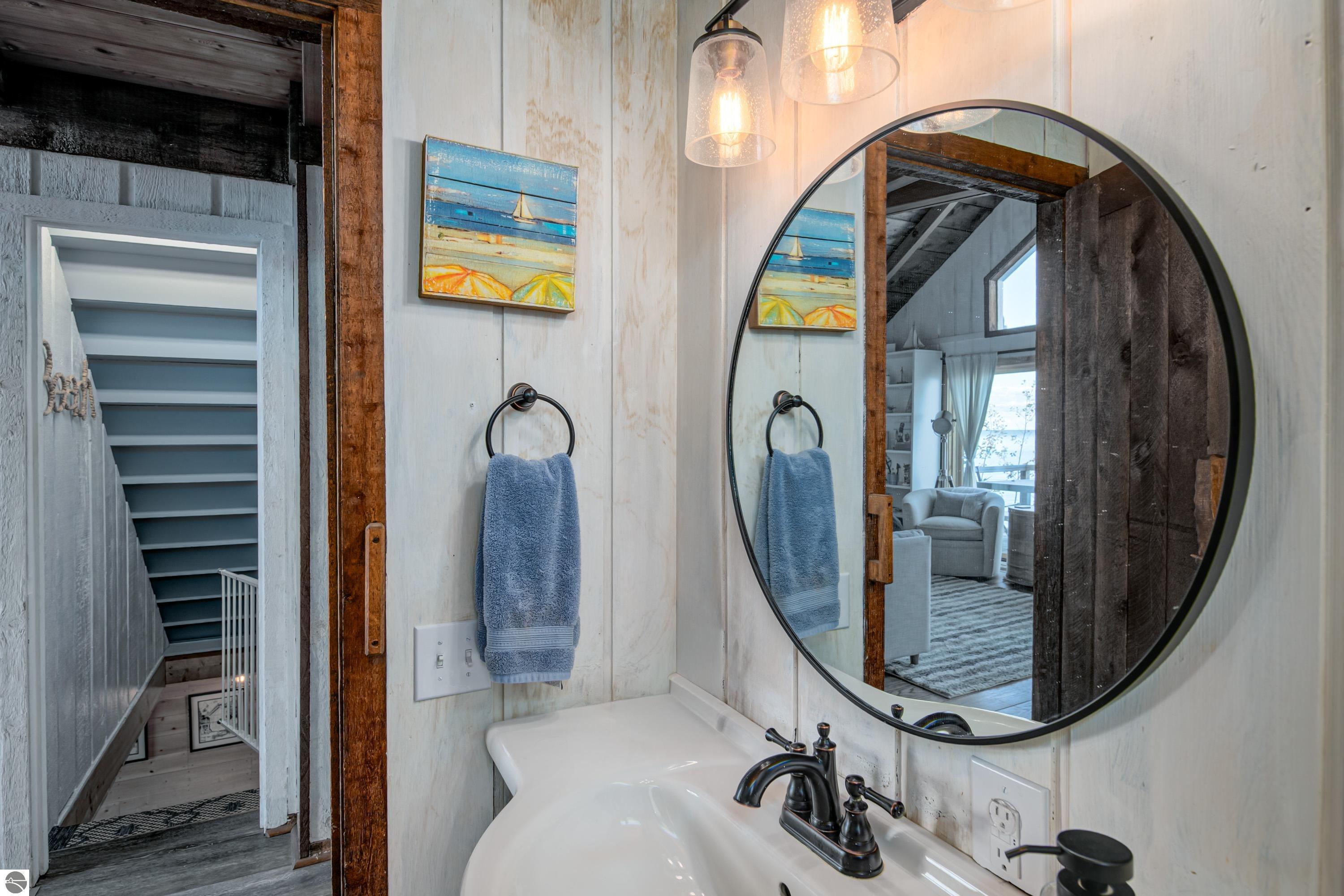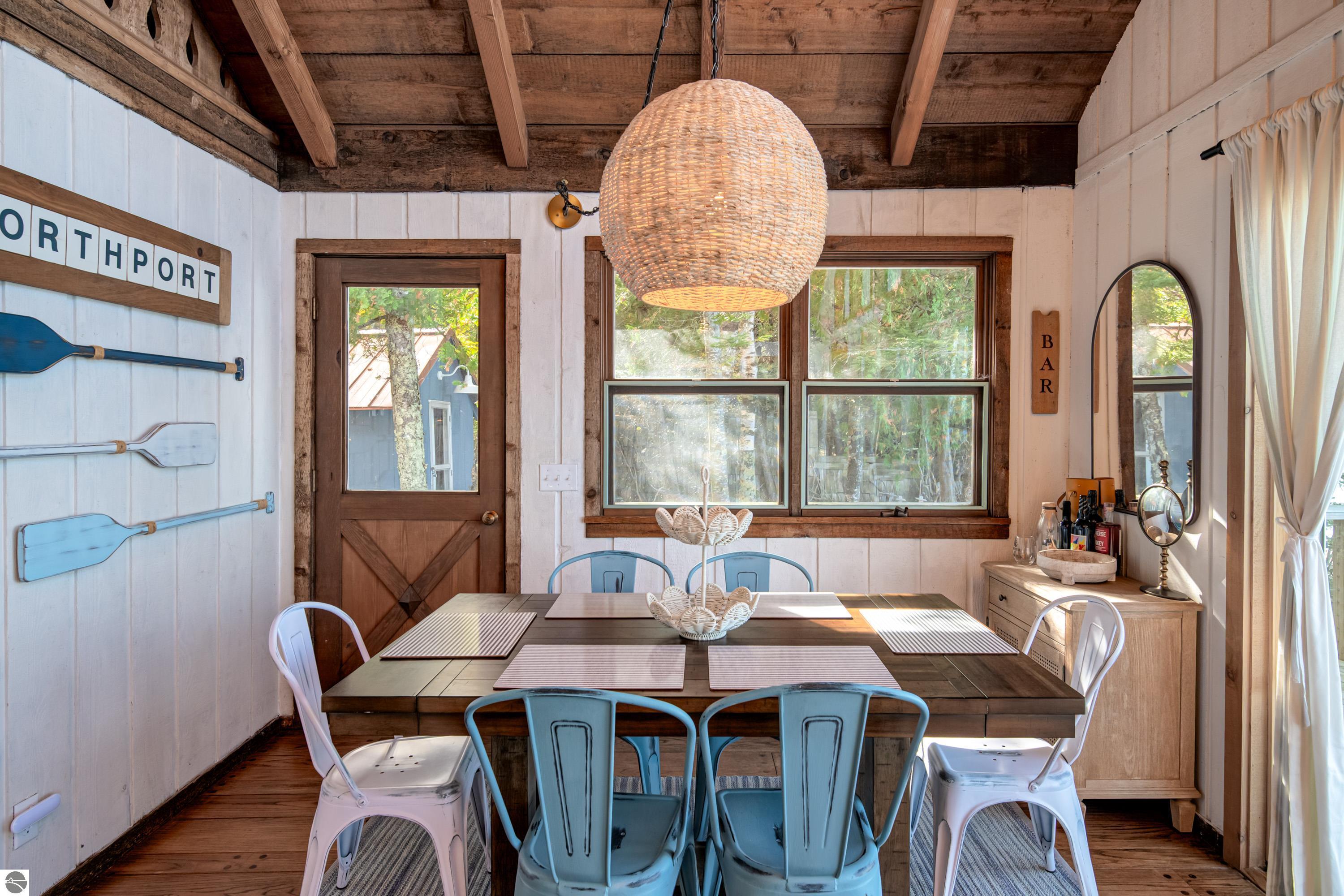 Unbelievable wooded setting on protected Lighthouse Cove with 100 ft of sandy Lake Michigan frontage. Traditional Leelanau chalet-style cottage with wall of windows and multi-level decking offering views of Cathead Point and the Fox Islands. Features include roughhewn cedar interior, beamed ceilings, peg wood floors, and two wood-burning fireplaces. Walkout lower level with family room, bedroom, bath, laundry, and hot tub. 4BR/2BA (4th bedroom is the bunk house), 1,667 sq ft on 0.5 acres. Over $90K invested over last 3 years. See disclosures for list of improvements made. Three bedrooms non-conforming since they don't have closets. Minutes from the Village of Northport. This is a MUST SEE.