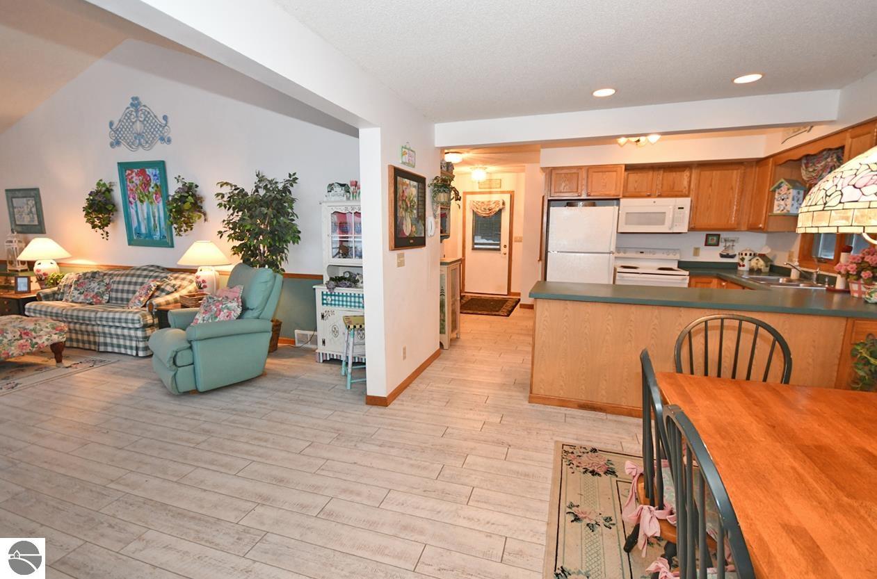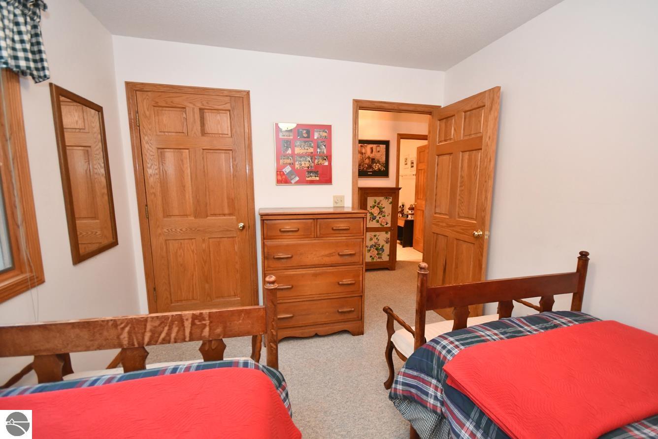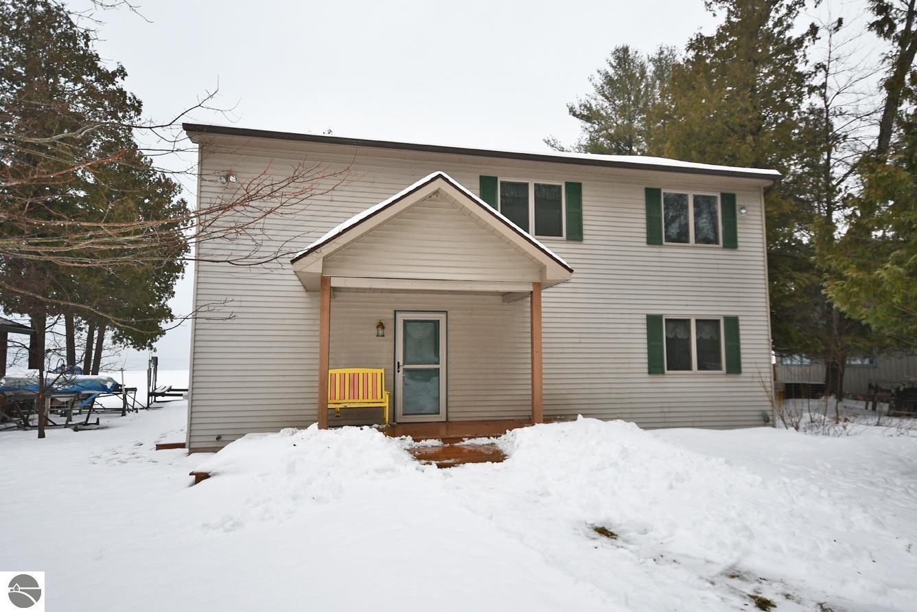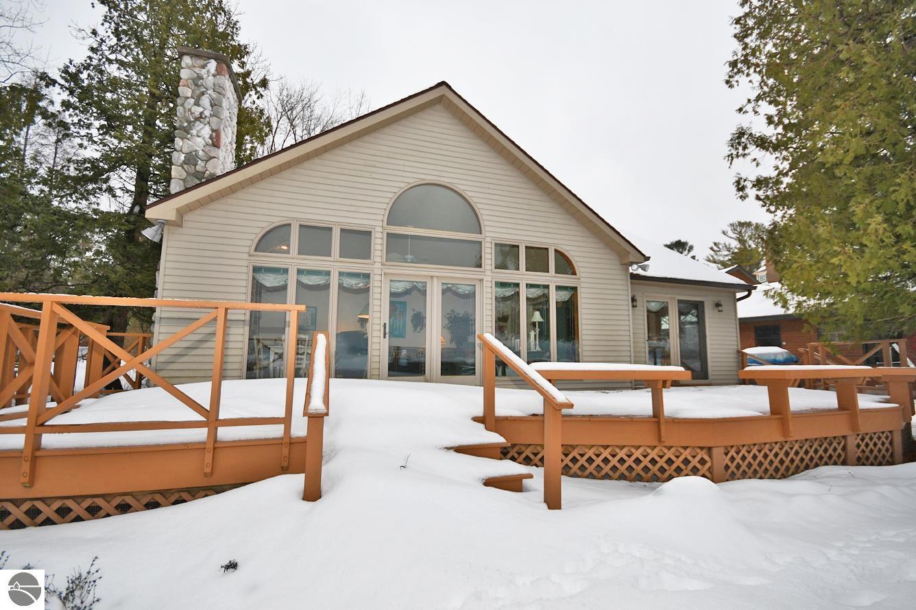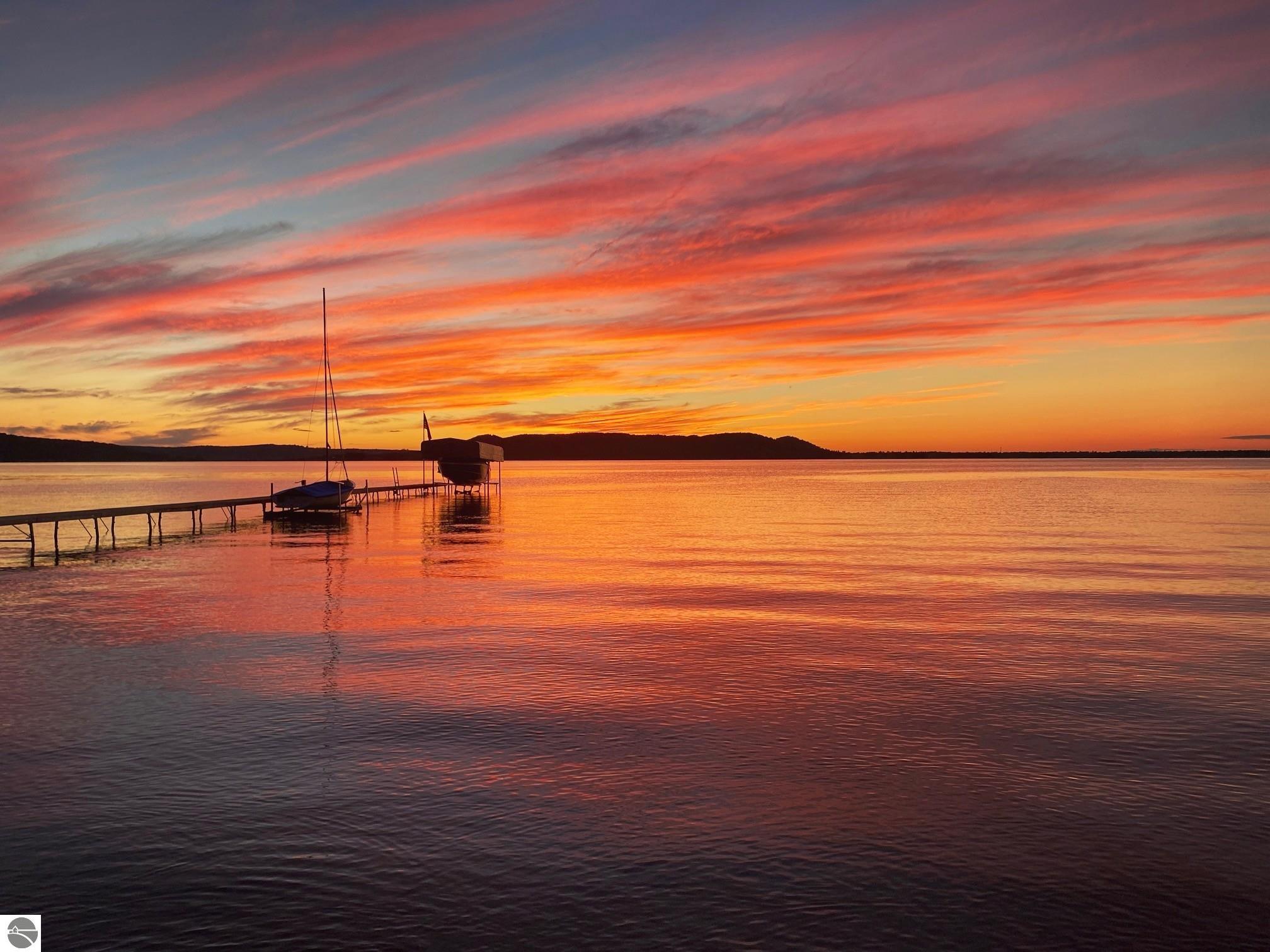 If you've been waiting for a beautiful waterfront location to come along on Big Glen Lake - here it is! 5450 W. MacFarlane Rd. With a very level lot, perfect views of Alligator Hill and west facing sunset vistas, on over half an acre of land and with a well-kept home to customize and make your own - this property is calling your name! While the original footprint of the cottage is from the 1940's, it was rebuilt from the ground up in the late 1990's, and boasts three bedrooms, an additional sleeping space, two full bathrooms, laundry, air conditioning, and the most beautiful fieldstone fireplace in its light and airy living room! Expansive views of the lake are welcomed in through the living room windows, and the adjacent, open kitchen and dining area also allow for the same. There's a main floor primary bedroom, bathroom and laundry, with an additional two bedrooms, bathroom, and sleeping space upstairs! Outside, the 61' of Glen Lake frontage also comes with a brand new dock that is being included in the sale of the home! A detached, two car garage is ideal not only for parking, but for off season storage of kayaks, bikes, patio furniture, and more. This is a competitive price point for Big Glen Lake. Being sold furnished with few exceptions!