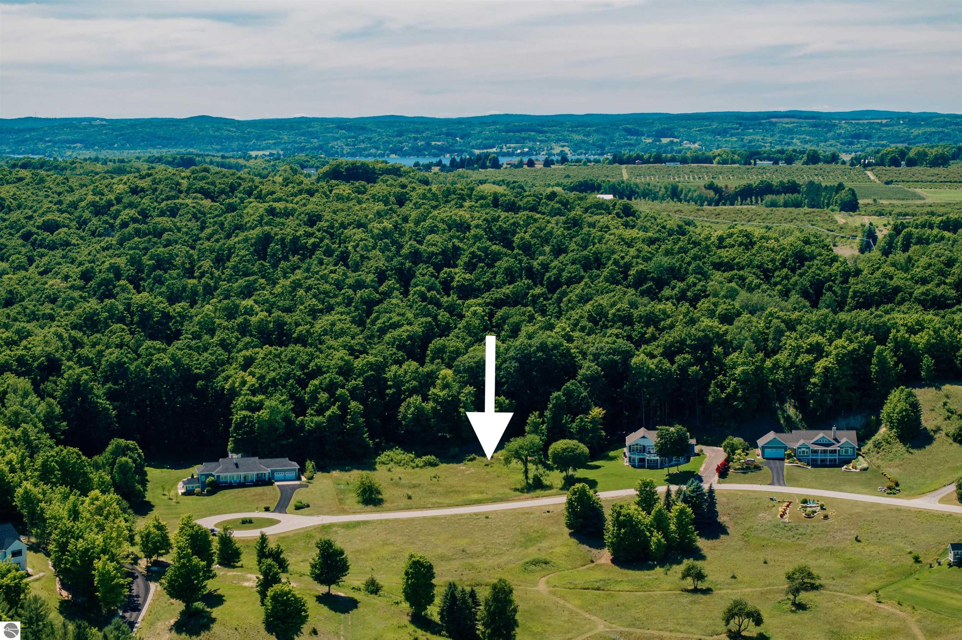 Truly amazing water views of West Grand Traverse Bay and the picturesque Leelanau countryside from this exceptional vacant land parcel in beautiful Rolling Hills Estates. Ideal for building your dream home in this 19 parcel community with beautiful residences and quality restrictions. Enjoy the convenience of natural gas, underground electric and cable services, and well-maintained paved roads. Building Restrictions consists of a minimum 1800 SF for ranch-style homes & a minimum of 2500 SF for 1 1/2 or 2-story homes. Prime location just 10-minutes to downtown Traverse City and the charming Village of Suttons Bay.