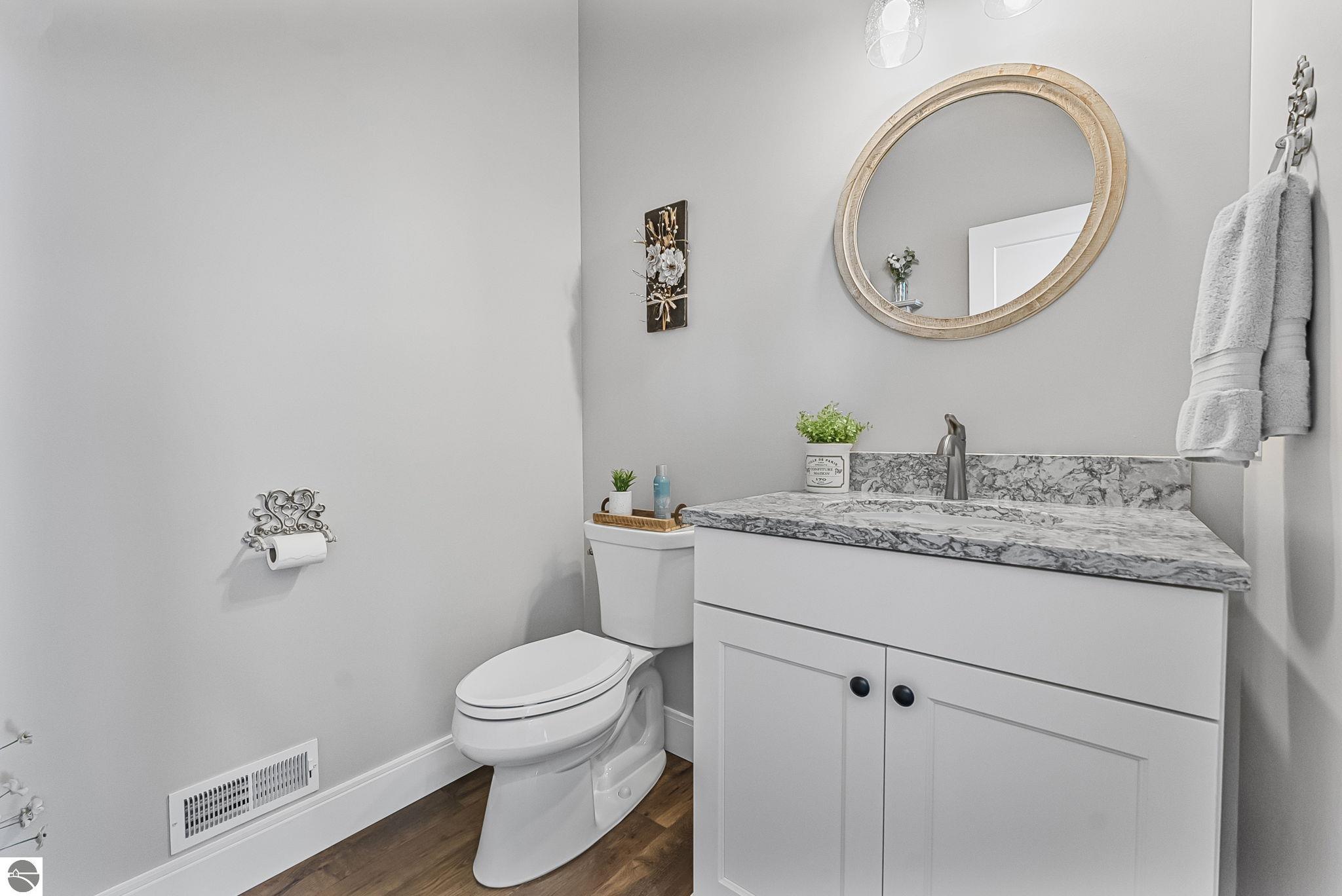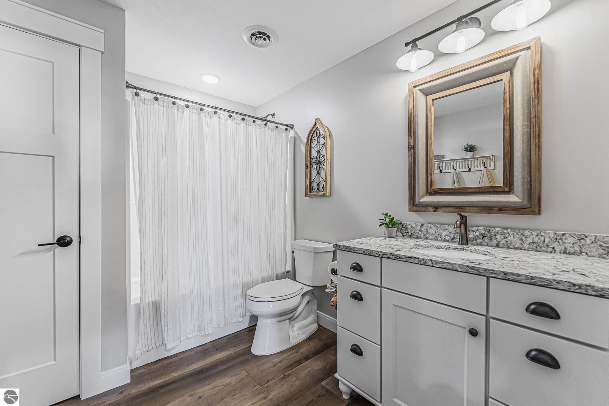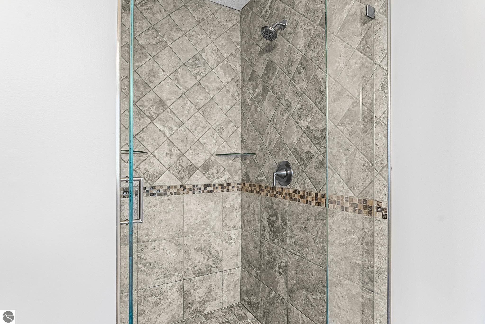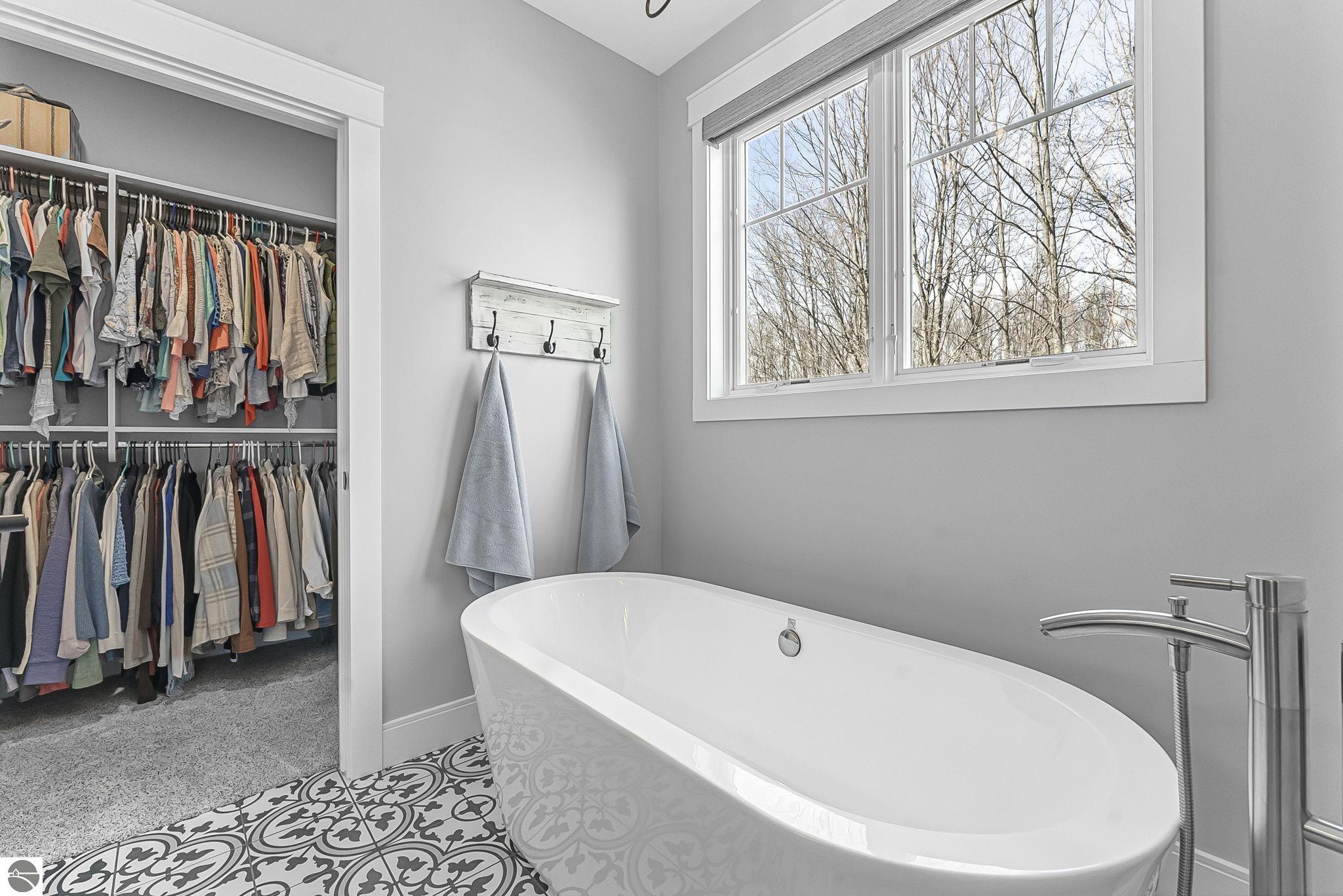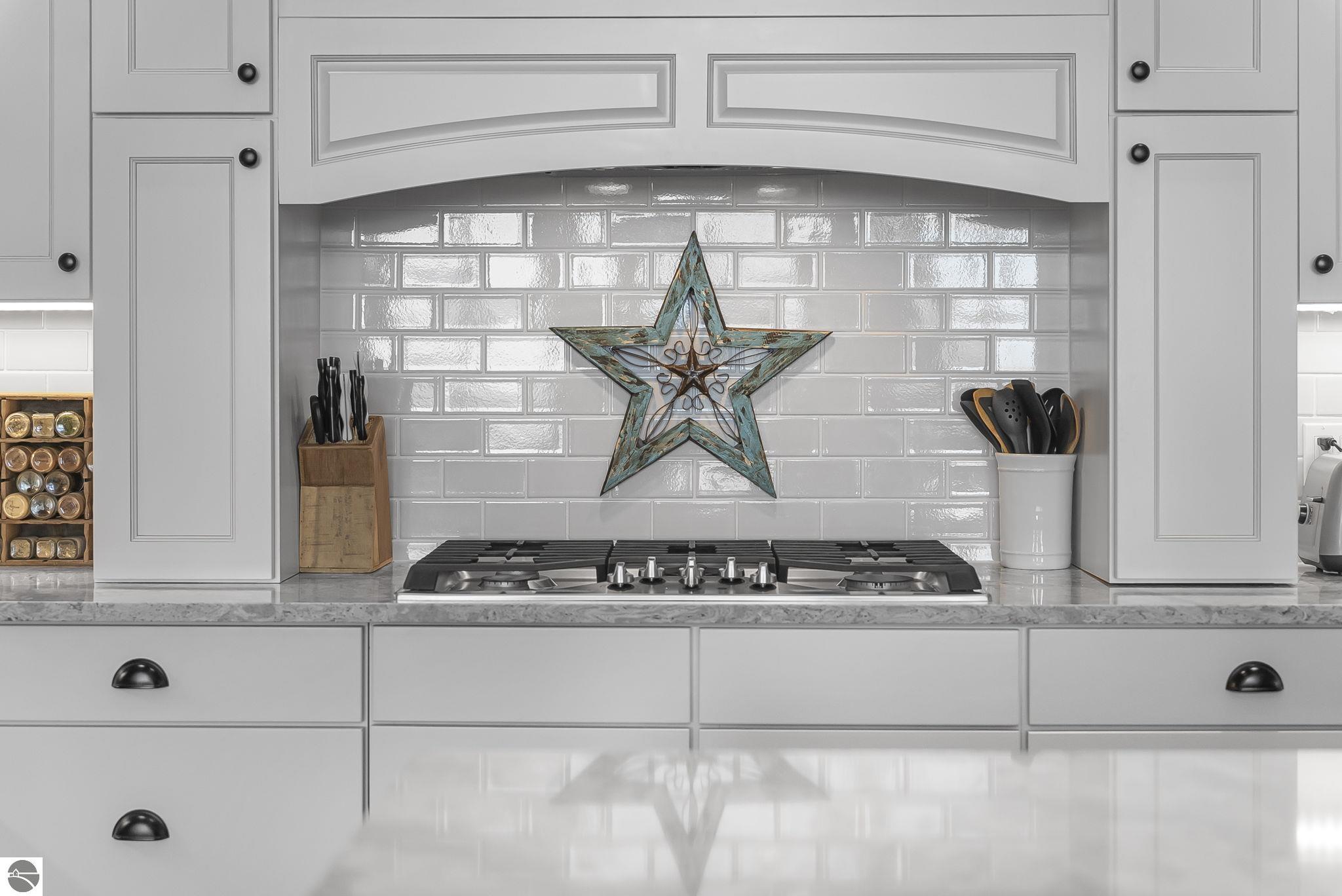 Breathtaking, unobstructed panoramic views of West Grand Traverse Bay and Power Island are showcased from the main living areas and all bedrooms in this custom Up North luxury home, ideally located just 10 minutes from Traverse City and Suttons Bay. Located in the sought-after Rolling Hills Estates subdivision, known for its collection of custom homes on spacious, well-appointed lots, the property offers convenient access to wineries, restaurants, breweries, and the Tart Trail. Situated on a 1.44-acre double parcel, the home features extensive professional landscaping representing a significant investment in thoughtfully designed outdoor living. Enjoy an immense wraparound Trex deck with privacy screen, a custom fire pit gathering area, and a beautiful paver patio off the walkout lower level, all positioned to take full advantage of the expansive bay views. The open-concept main level features vaulted shiplap ceilings with beams, expansive windows, hardwood flooring, and a chef’s kitchen with custom cabinetry, quartz countertops, and a walk-in pantry. Two gas fireplaces, located in the main living area and lower-level family room, provide warmth and ambiance. A fully integrated Control4 smart home system operates motorized blinds, lighting, sound, security system with cameras, thermostats, and garage doors. The walkout lower level includes a family room with surround sound, kitchenette, wine room, office, and three additional bedrooms, all designed to maximize comfort and flexibility. The home offers two en-suite bedrooms, including a main-level primary suite with a freestanding tub, walk-in shower, and heated floors, with heated floors also featured in the additional en-suite bath. The heated garage is fully finished with epoxy flooring, custom built-ins, and detailed trim work, plus hot and cold water. Additional features include Hardie Plank siding, Pella casement windows, dual-zone furnace, Generac, and a 12x14 custom shed. Measurements are estimated.