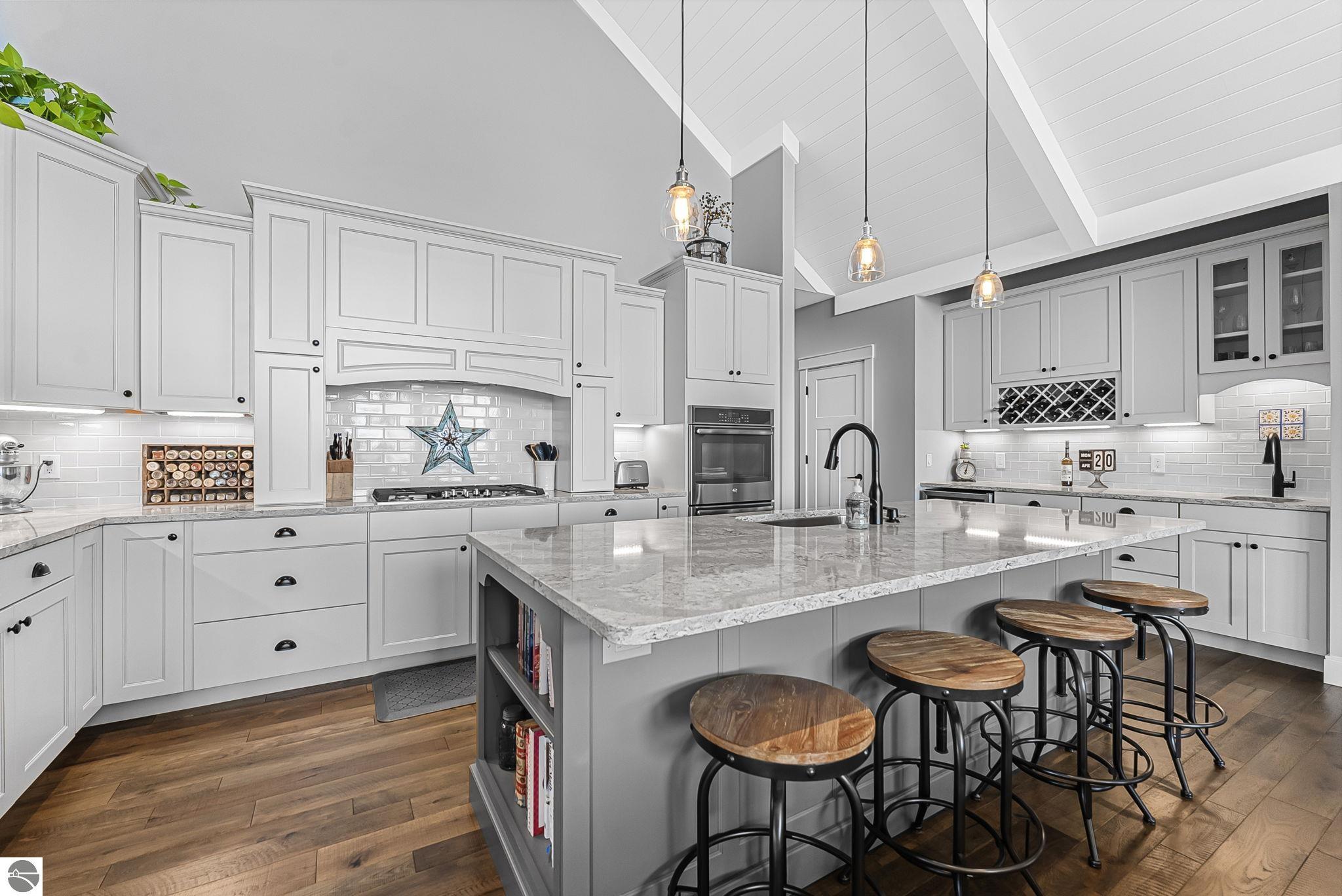 - Interior: Cathedral Ceiling(s), Bookcases, Entrance Foyer, Walk-In Closet(s), Wet Bar, Pantry, Solid Surface Counters, Kitchen Island, Mud Room, Den/Study, Beamed Ceilings, Ceiling Fan(s), Cable TV, High Speed Internet, WiFi