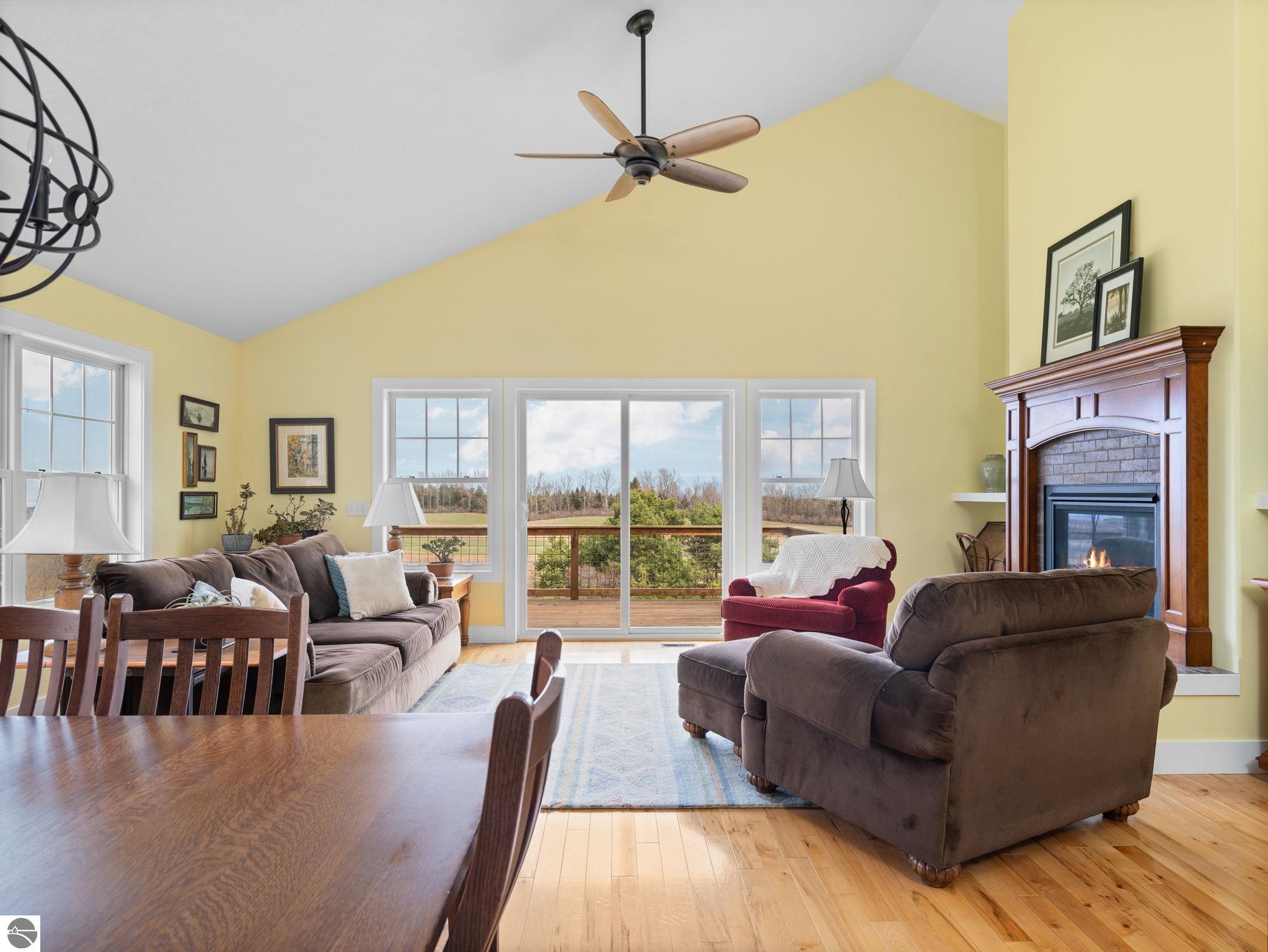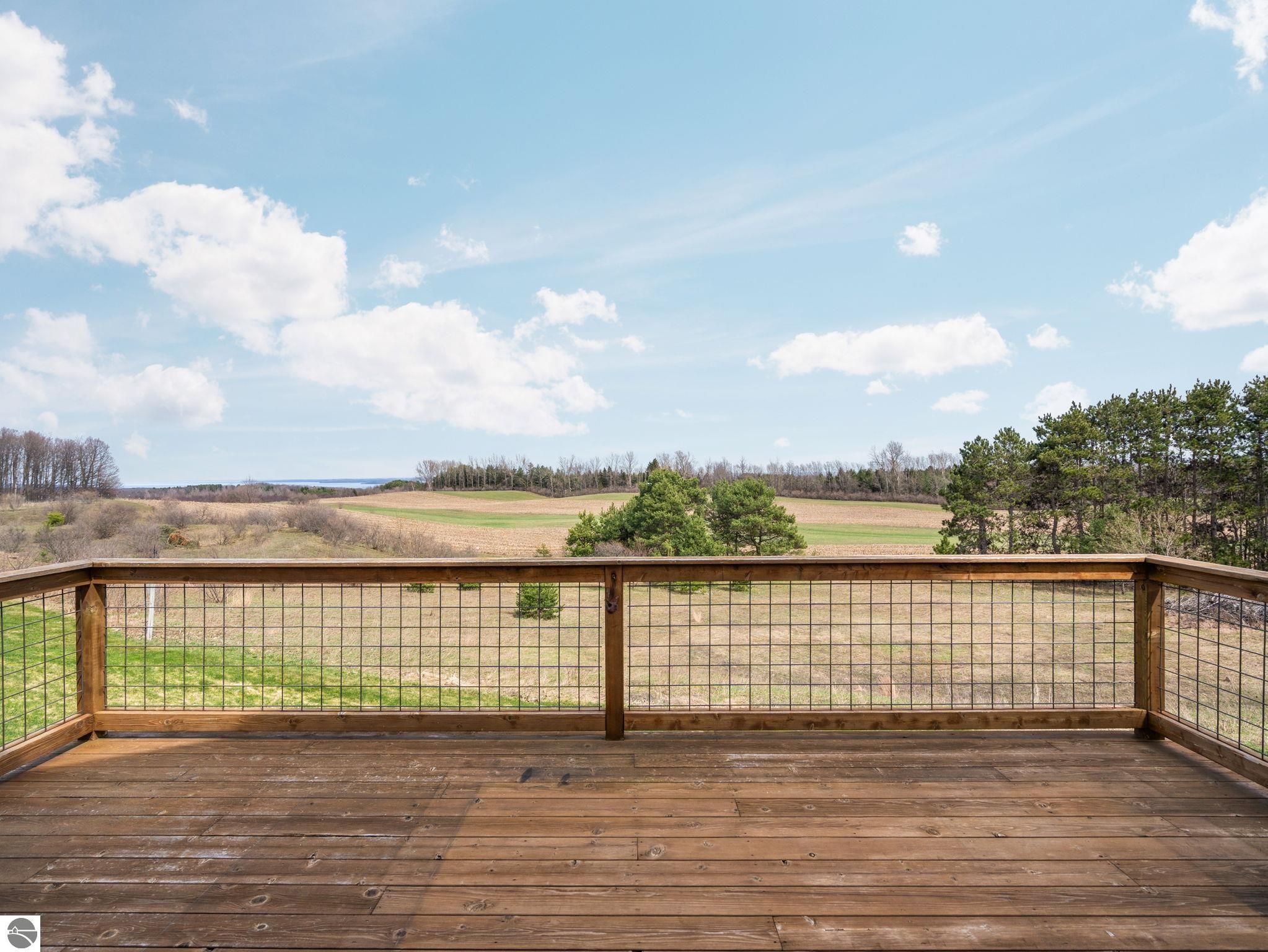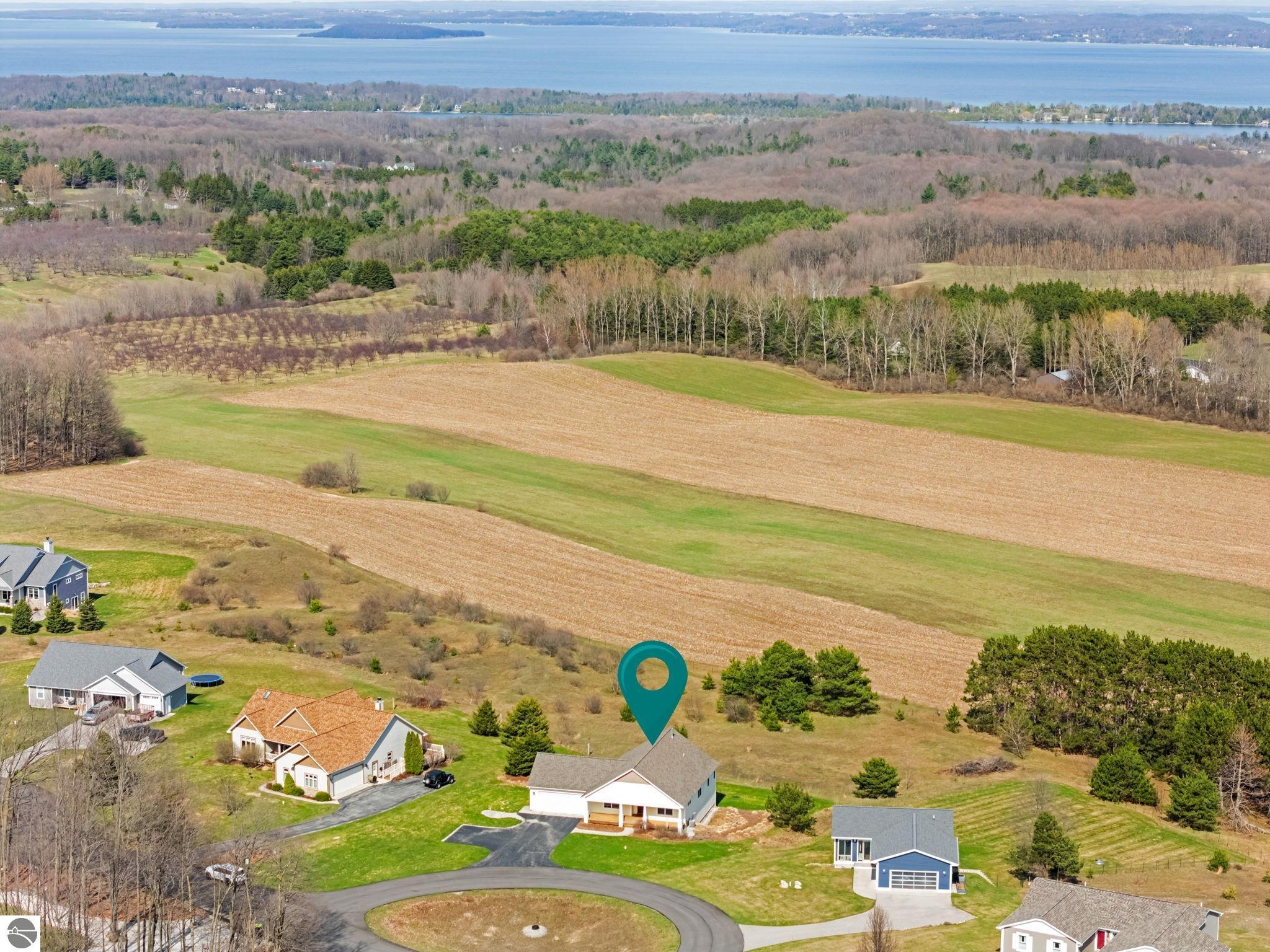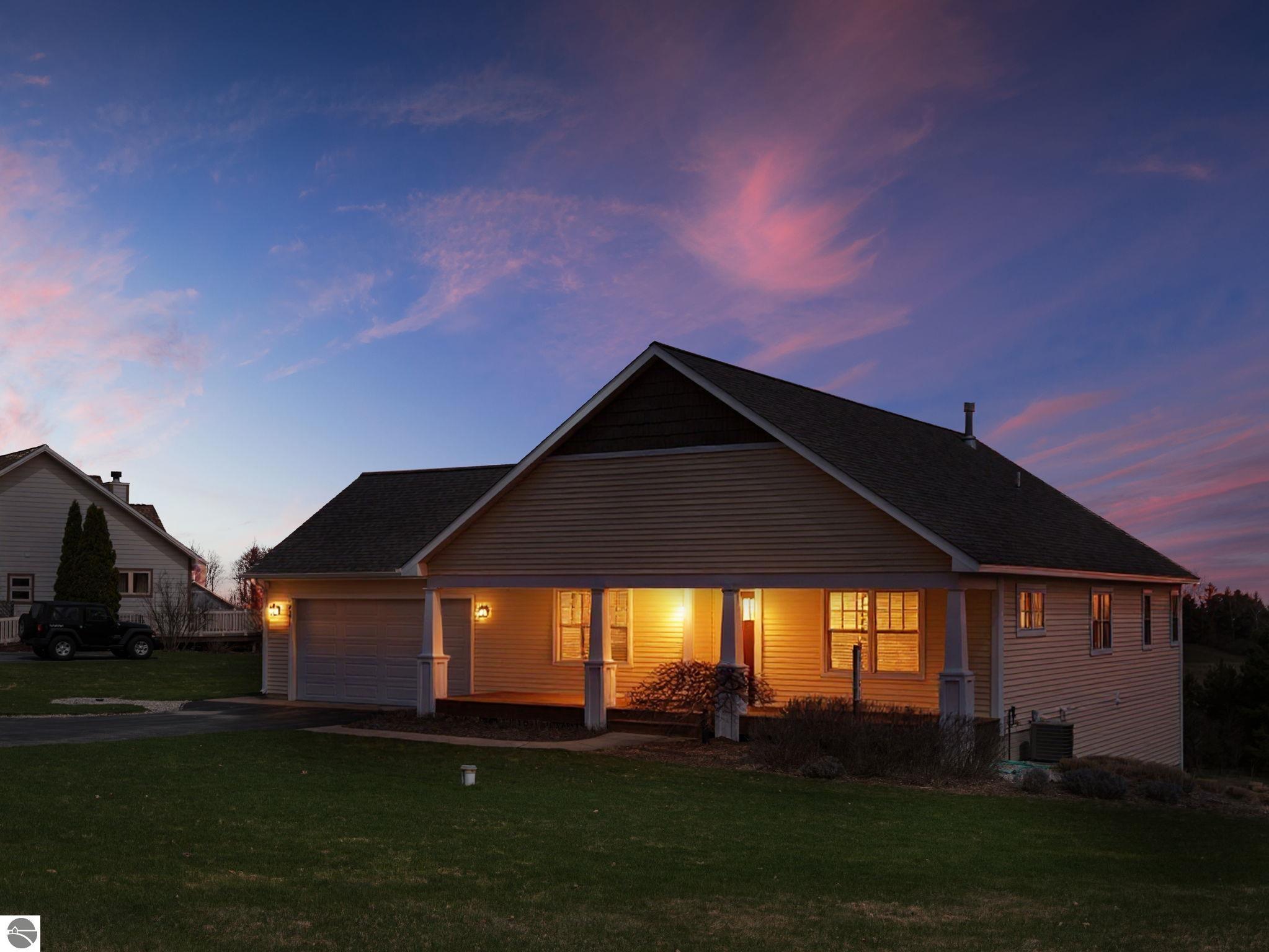 Set in the desirable Bahia Vista neighborhood, 8371 E Boca Vista Trail is an exceptionally well-built home with quality finishes throughout. You’ll appreciate the main-floor living layout, the quiet, upscale setting, and the convenience of being just minutes from Traverse City. Situated on nearly an acre of land and perched on an elevated homesite, this 3-bedroom, 3-bath residence captures sweeping views of West Grand Traverse Bay and the rolling Leelanau countryside - an ever-changing backdrop to enjoy in every season. Inside, the open-concept design is bright and inviting, with vaulted ceilings, hardwood floors, and a well-appointed kitchen featuring granite countertops, stainless steel appliances, and generous cabinetry. The great room, anchored by a fireplace, creates a warm and natural gathering space. The main level includes a spacious primary suite with a private bath and large walk-in closet, a guest bedroom and bath, along with laundry and a thoughtfully designed mudroom. The lower level offers added flexibility with a third bedroom, third bathroom, a large (partially finished) family room, and abundant storage - with the potential for a fourth bedroom. Enjoy both the expansive covered front porch and the back deck, surrounded by a professionally landscaped yard that reflects the natural beauty of Northern Michigan. Come home to the views, stay for the lifestyle - this is Northern Michigan living at its finest.